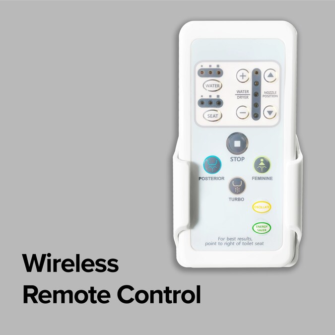 - Includes bidet seat, remote control and holder, T valve and packing, 3/8 in compression conversion nut, water supply hose for SmartBidet, water supply hose for toilet water tank, base plate, mounting bolts, cone packings, nuts, bolt cases, manual
