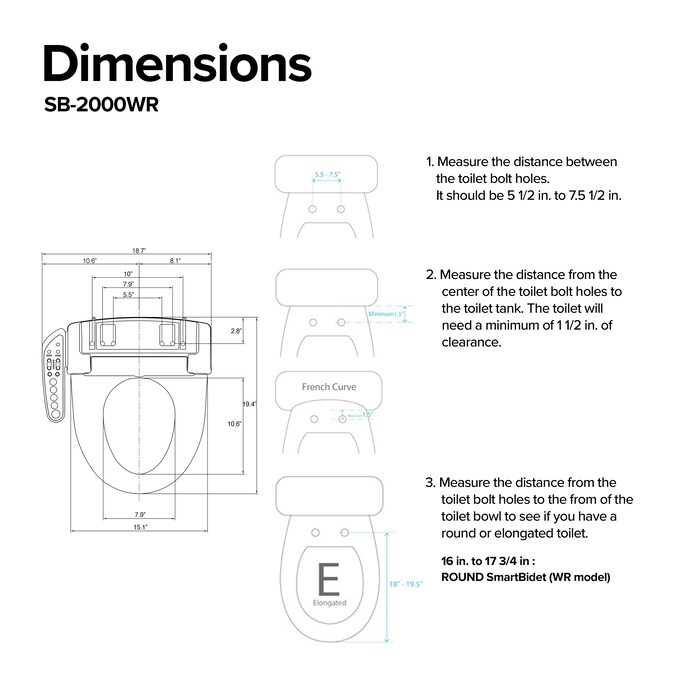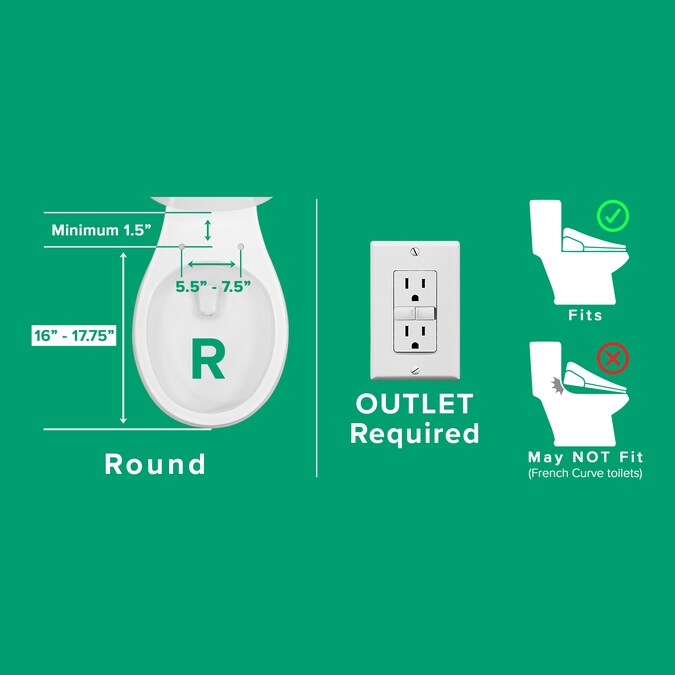- Additional specs: power rating: 120V/60Hz/660W, soft-closing lid and seat – refrain from sitting on lid, energy saving mode, 3’ 10” electrical cord length, bolt spread range: 5.5 In to 7.5 In, quick release for easy cleaning