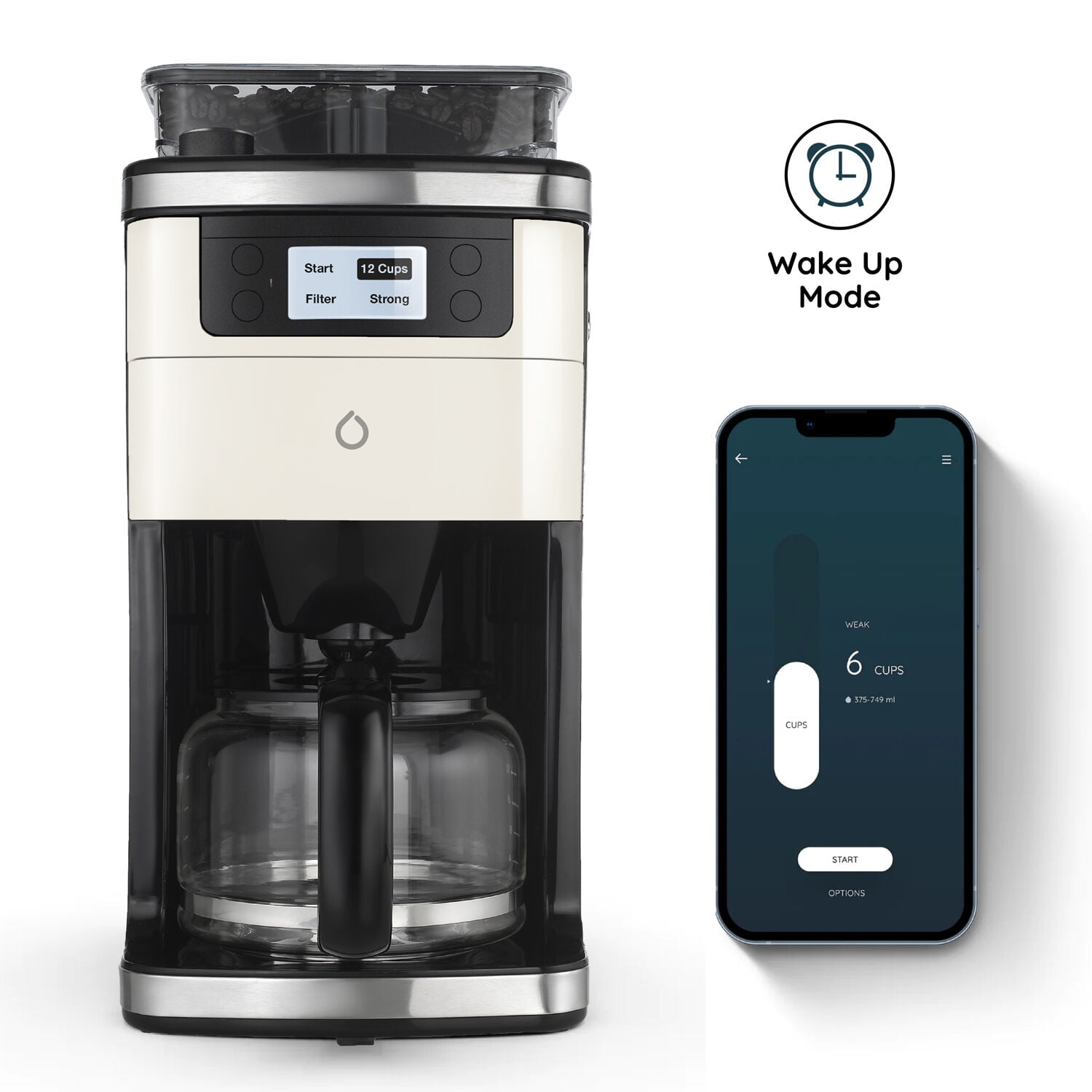 Smarter iCoffee Brew Smart Coffee Maker and Grinder with App, 3 Panels (Cream, Black, Red, New)