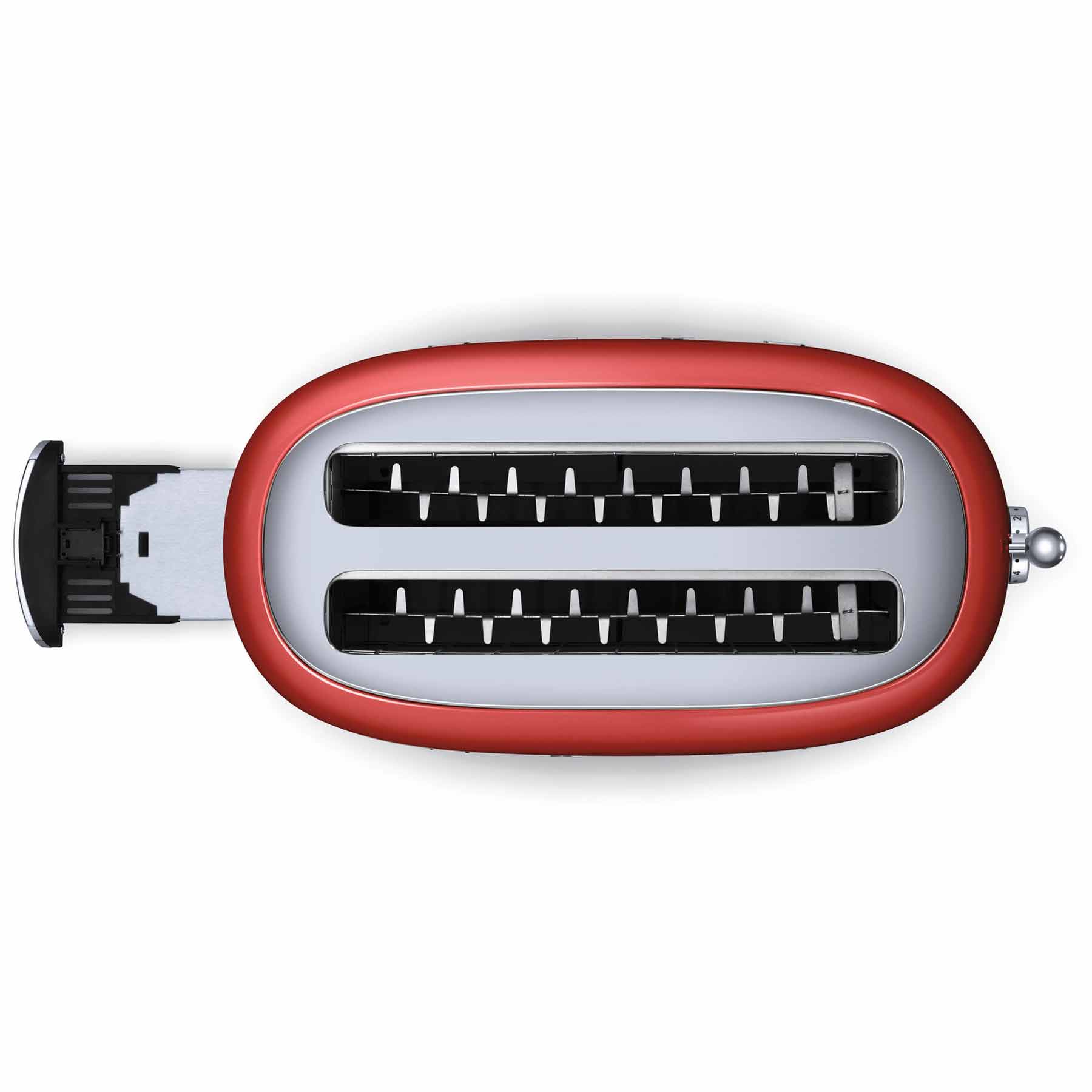 SMEG’s 4-slice toaster has two long bread slots (longer than the 2-slice toaster) with self-centering racks to ensure even toasting of bread, whatever size they may be.
