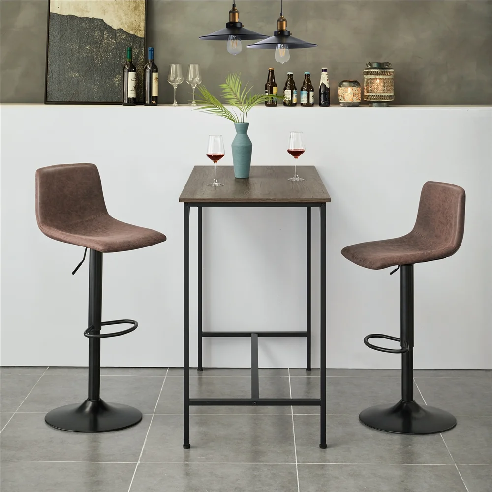 This 2pcs vintage adjustable PU leather bar stool set is exactly what you are looking for! Crafted out of selected PU leather and a heavy-duty iron frame coated with water and scratching-proof coating, this stool bar set is designed for long-time use. Its height is designed to be adjusted to adapt to different situations. The seat of this sturdy bar stool can rotate 360°, convenient for you to turn around without leaving your stool. An ergonomic backrest and a footrest are provided for extra cozy using experience, free you from fatigue brought by long-time sitting. Besides, with classic color and minimalists lines, this stool set is endowed with a vintage style that can easily integrate into various scenes, such as bar, café, open kitchen, the dining room, etc.