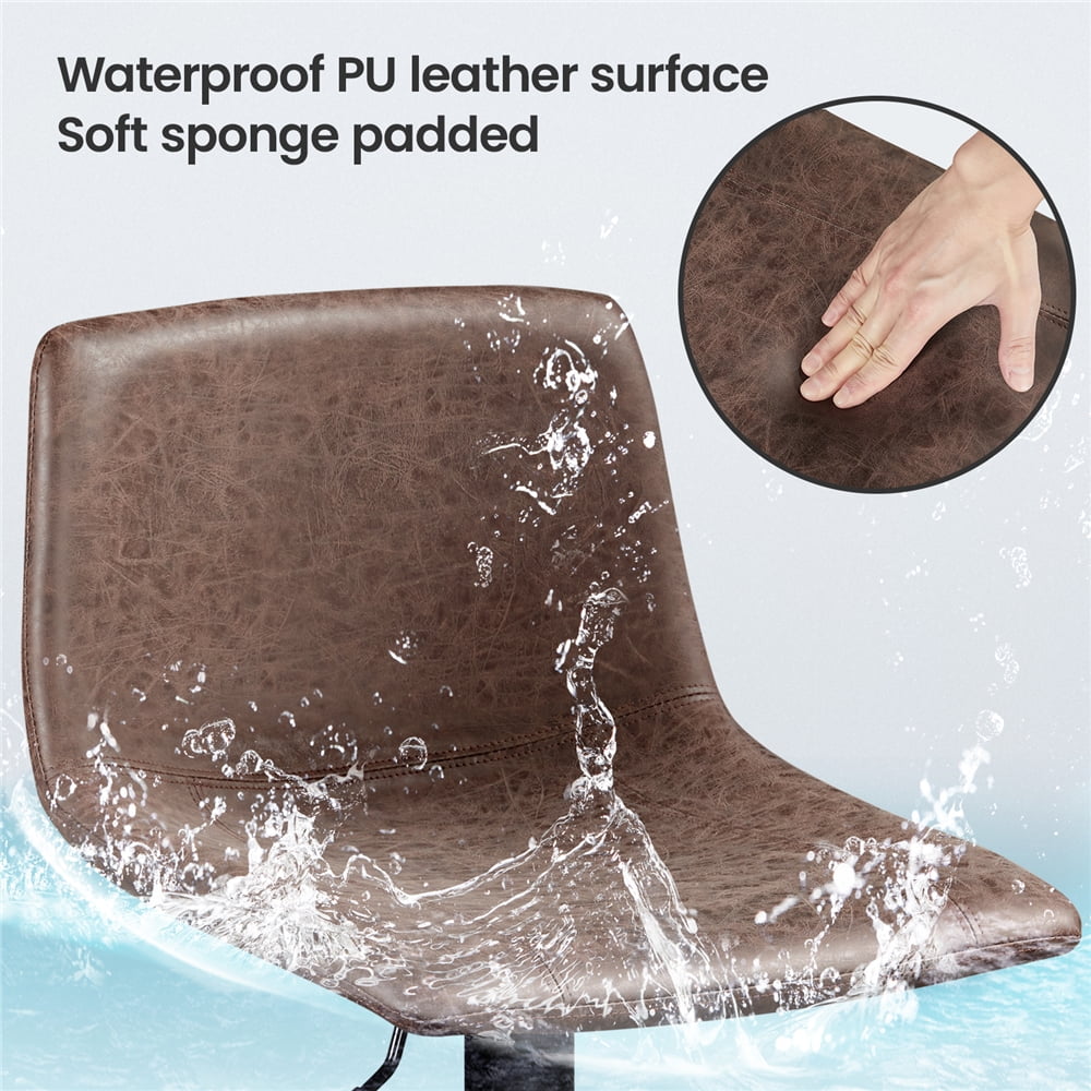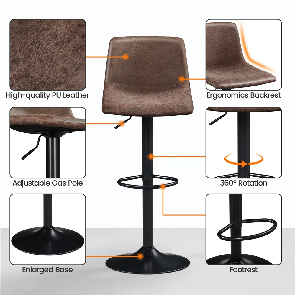 SMILE MART 2pcs Vintage Adjustable PU leather Bar Stools Mid-back for Kitchen, Brown