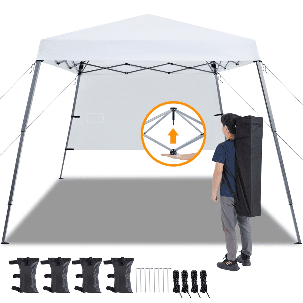 Alden design Lightweight Pop-Up Canopy with Sun Shade Wall Backpack Bag, White