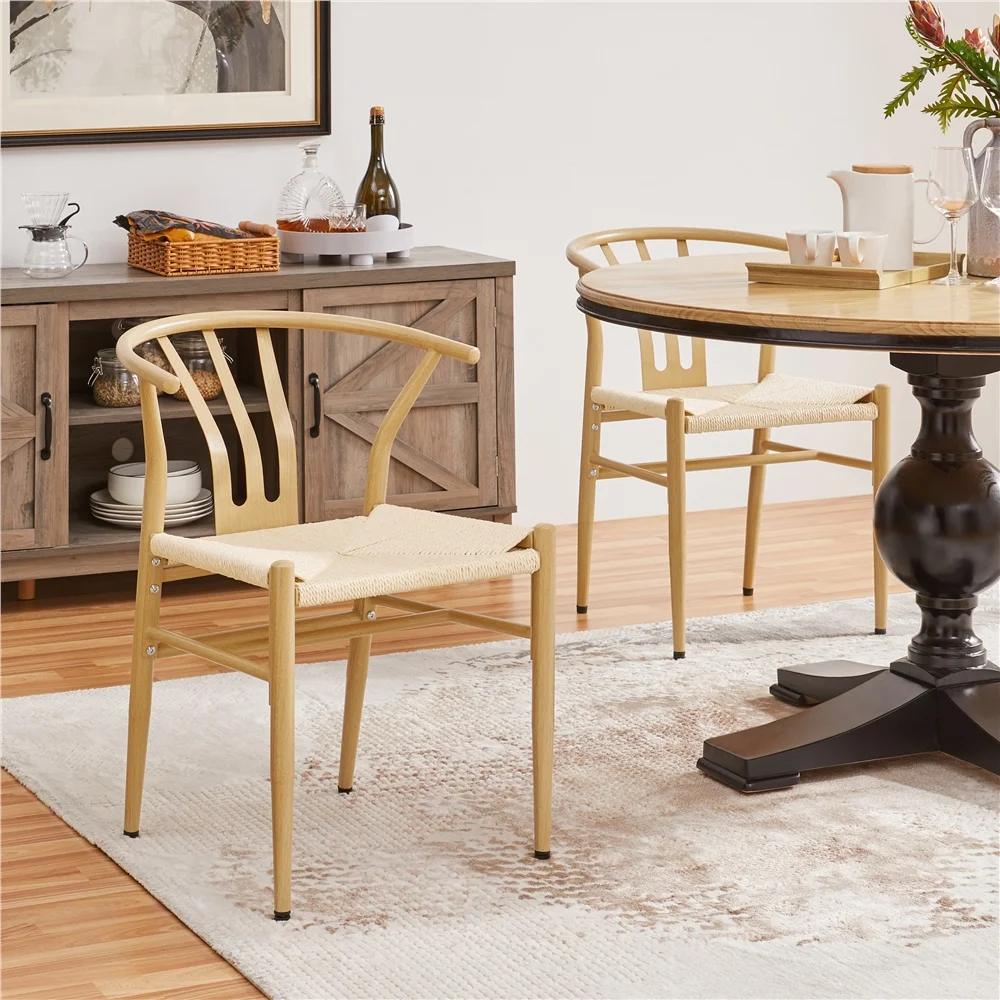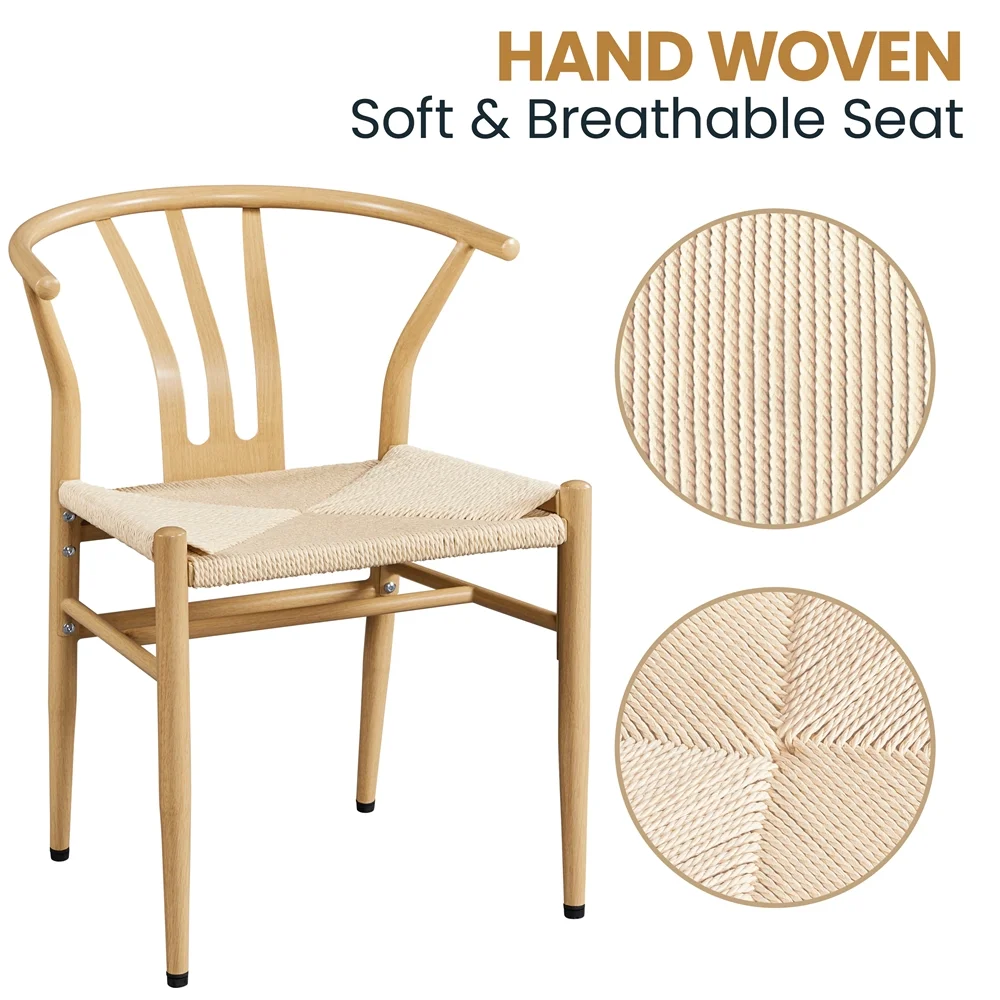 Alden Design Mid-Century Weave Dining Chairs with Solid Metal Frame, Wood
