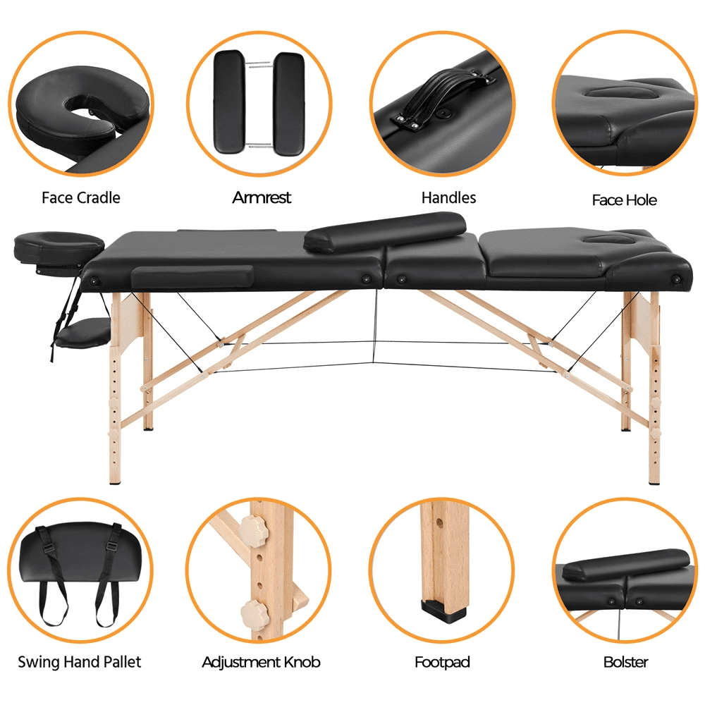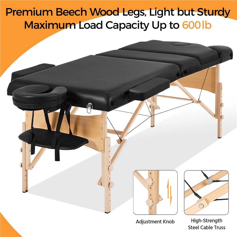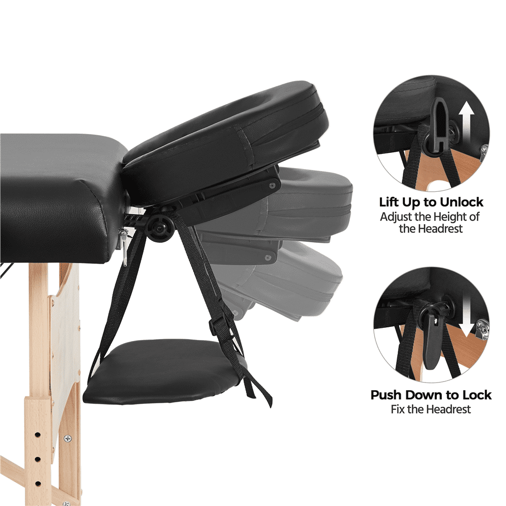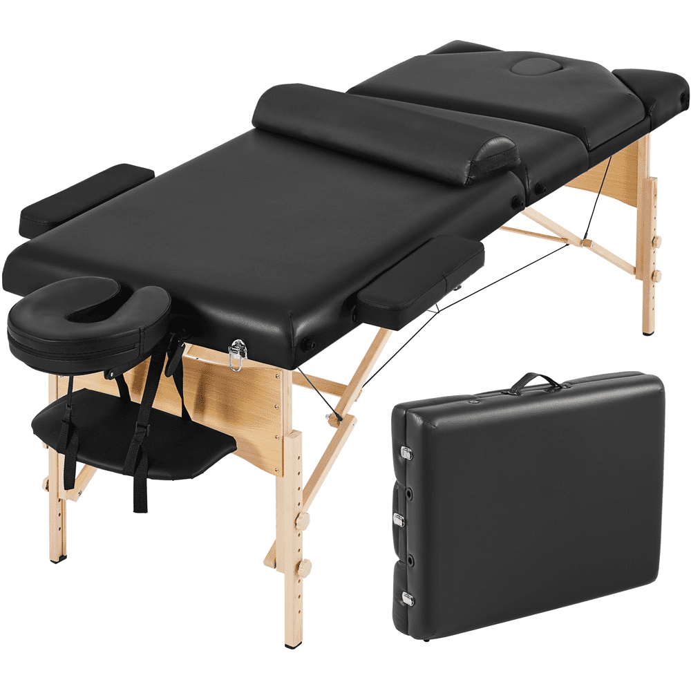 Smile Mart Portable 3 Folding Massage Table with Carrying Bag & Accessories, Black