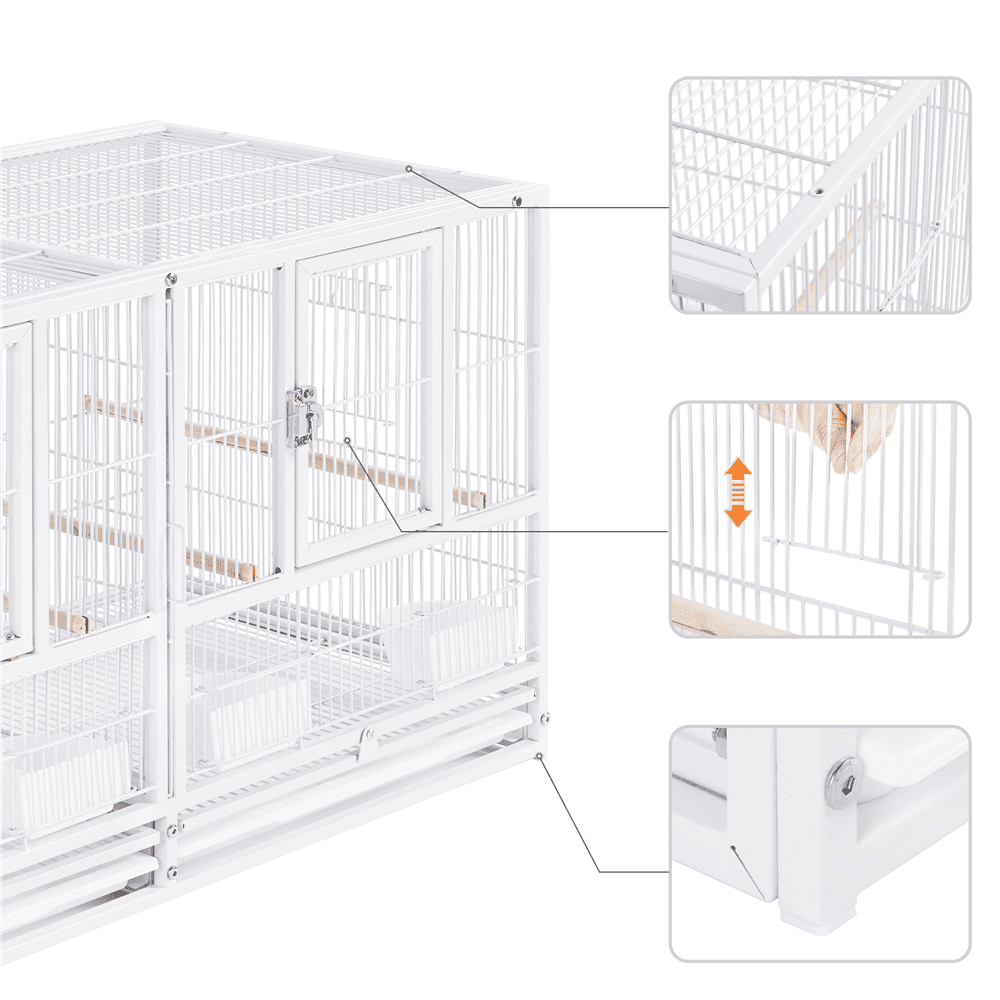 SmileMart 18-Inch Wide Metal Stackable Divided Breeder Bird Cage for Small Birds Lovebirds Finch Canaries Parakeets Cockatiels, White Color: hammered white Material: painted steel, polypropylene, wood Bar spacing: 1cm/0.4’’ Cage dimension: 95.5×45.5×52.5cm/38x18x21’’ (LxWxH) Door: 18.3x26cm/7.2×10.2’’ (WxH) G.W.: 14.2kg/31.2lb Package includes: 1 breeder cage, 4 cups, 4 perches Note: Please allow ±1cm/0.5’’ errors due to manual measurements.