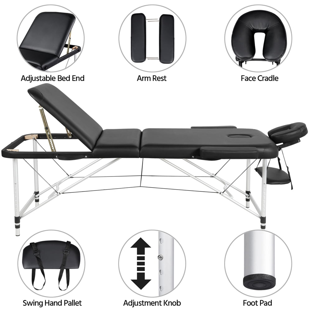 Alden design 3-Fold Adjustable Aluminum Massage Table for Spa Treatments & Tattoos, 84″, Black