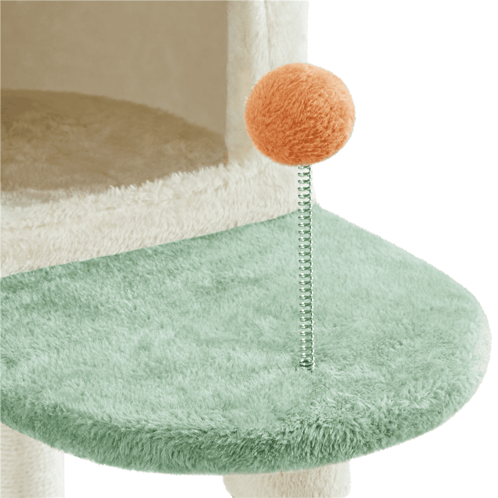 Materials: Particleboard, Plush, Sisal Color: Beige & Green & Orange Assembled Dimensions: 23.5″ L × 22″ W × 58″ H Baseboard: 23.4″ L × 22″ W Condo: 12.2″ L × 12.2″ W × 11.2″ H; 7.3″ W × 8″ H Heart-Shaped Platform: 22.6″ L × 22″ W Top Cat-Ear-Shaped Perch: 15″ Dia. × 5.5″ H Cat Paw Shaped Platform:12.6″ L × 12.2″ W Maximum Weight Capacity: Condo: 22 lb Platform: 11 lb Item Weight: 30.3 lb Shipping Weight: 32.5 lb Note: 1. Please allow a 1/2″ measurement tolerance. 2. Keep the cat tree dry and away from fire. 3. Please ensure the product’s size and maximum load capacity fit your pet before purchasing. Cute Cat Paw Design Stable Design, Double Security