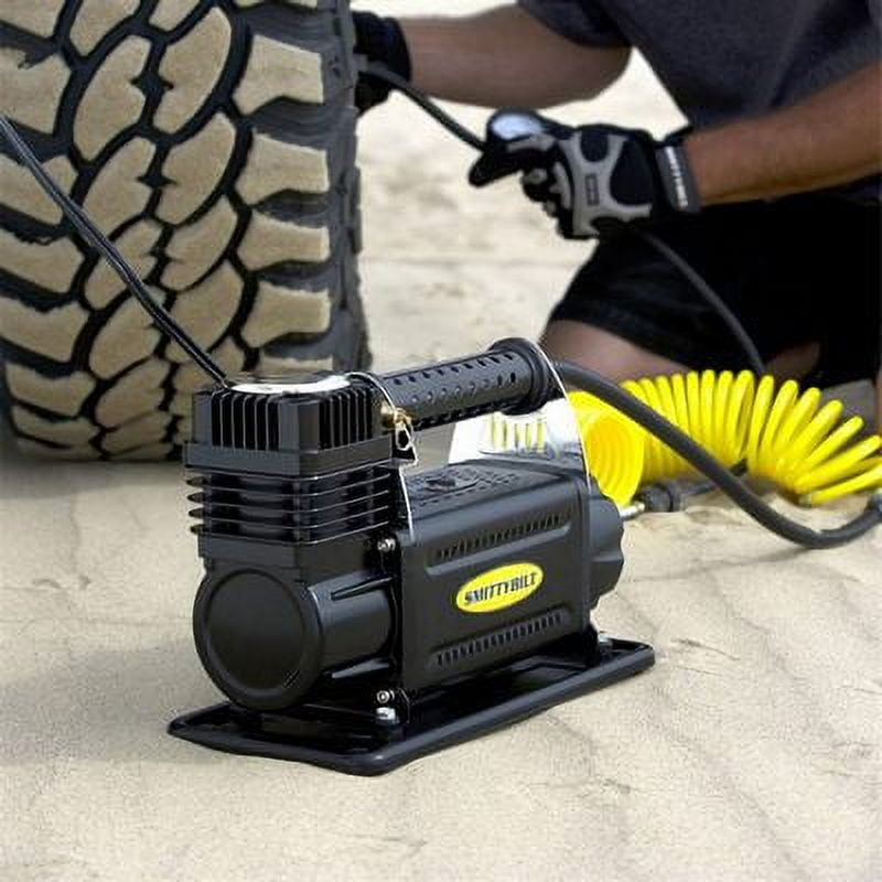 For the added convenience of being able to air-up or air-down your tires to accommodate various types of terrain, a Smittybilt Air Compressor is the most powerful compression unit in its class with a 1/3 horsepower oil-less direct drive motor and a 30 amp inline fuse.Climbing over rocks, tearing down a rugged slope, blazing a trail through mud and undergrowth—all of these are bound to challenge your tires and eventually lead to one slipping off the rim or blowing out. The last thing you need is to be stranded while off-roading, so a good air compressor is a must-have for jeepers. When it’s time to shop air compressors, 4 Wheel Parts is the place to go. Pick up a powerful Smittybilt compressor and stay prepared when you’re off the beaten path. The Value of an Air Compressor Out in the wilderness, you know that help is far away if your rig gives out on you. Carrying or mounting the right equipment can be vital in helping you get back home. Portable air compressors, spare tires and tire patch kits are part of the essentials for off-road maintenance. Not only does having an air compressor on hand let you repair or replace tires when needed, it also lets you adjust tire pressure to best meet what lies ahead. With some types of terrain—for instance, sand, snow, mud or sharp rocks—partially deflating your tires is actually the right idea, improving traction and reducing the risk of punctures. A brand like Smittybilt will give you the highest CFM 12V air compressor you need, meaning adjustments and repairs are quick even for heavy-duty tires, putting you back on track sooner. The 4WheelParts.com Difference When gearing up your Jeep for your next off-road expedition, you want the best quality equipment you can get for your money. Skimping out can pu”