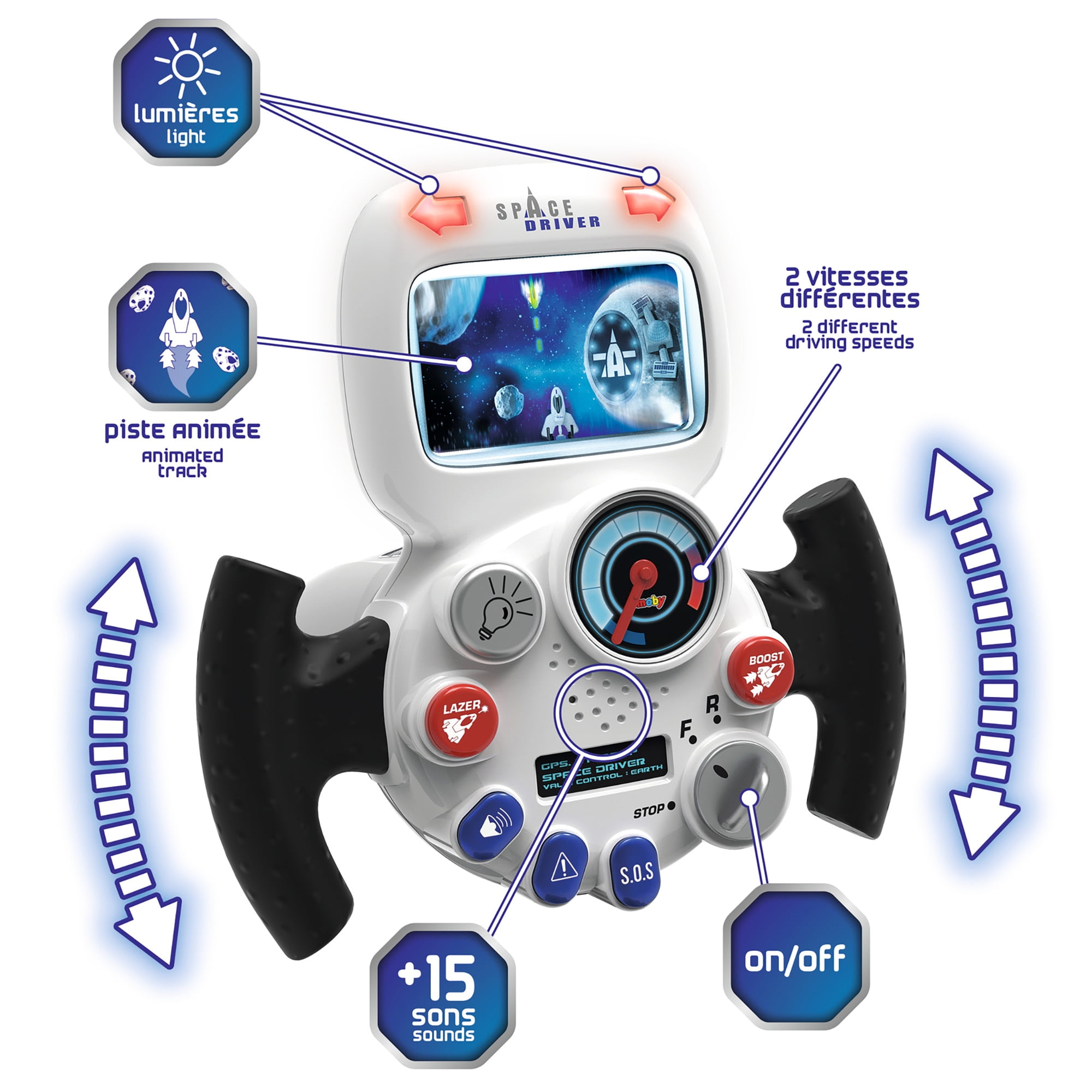 Smoby Space Drive- Children’s Space Ship Simulator in Black W/ Electronic Steering Wheel & Backlit Screen, Ages 3+