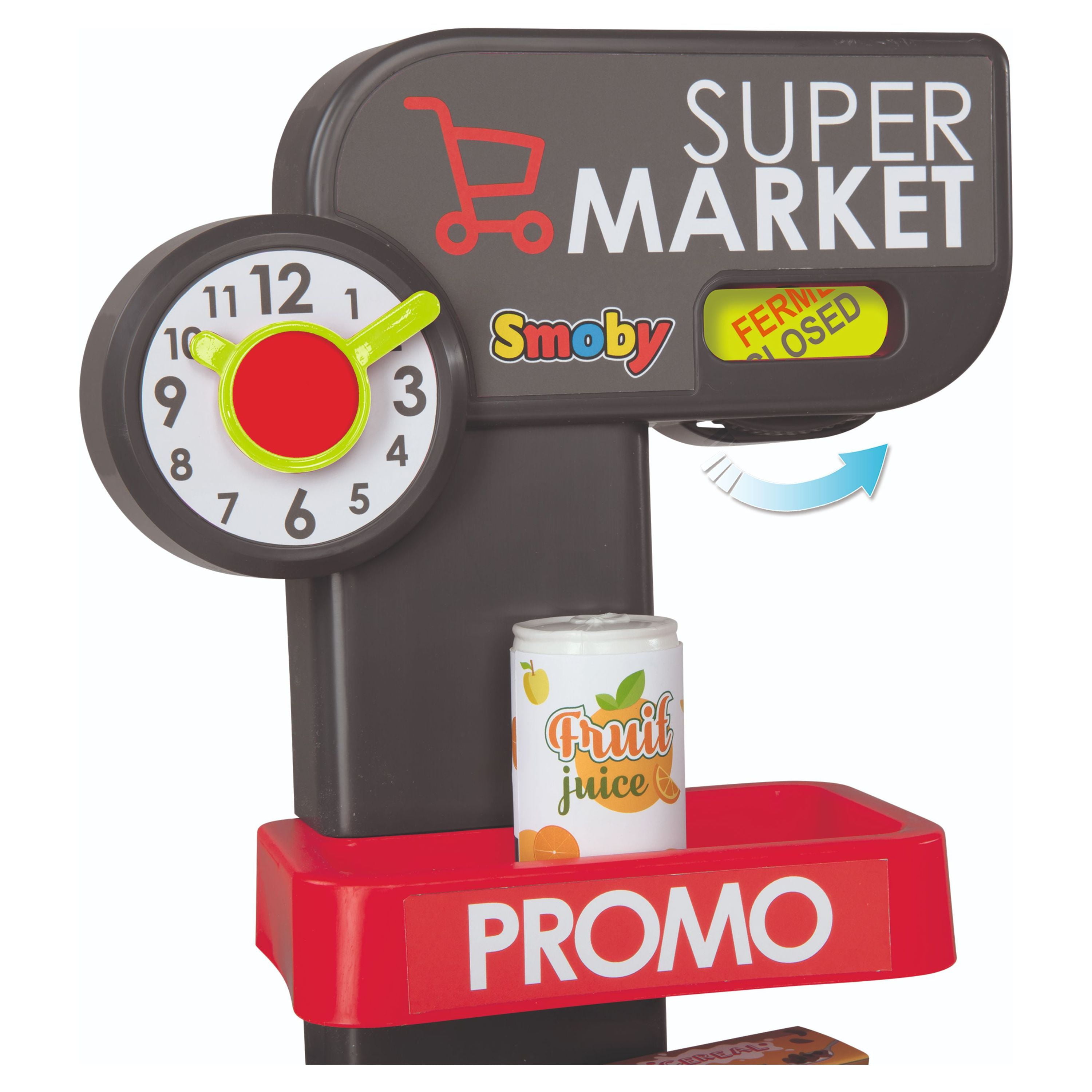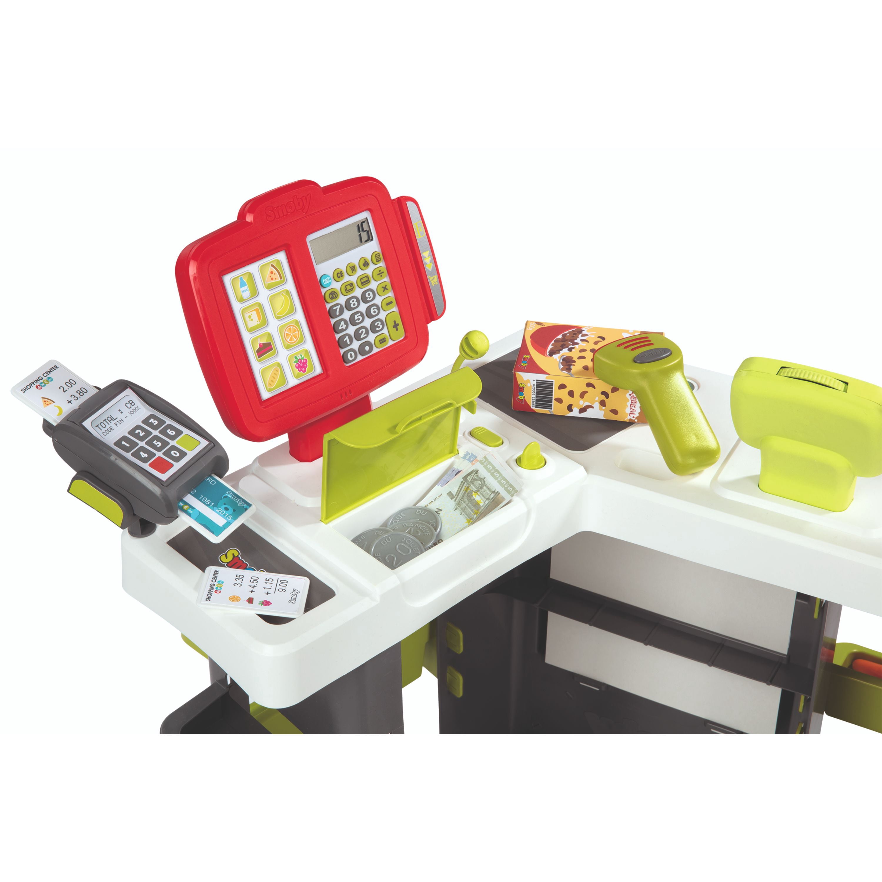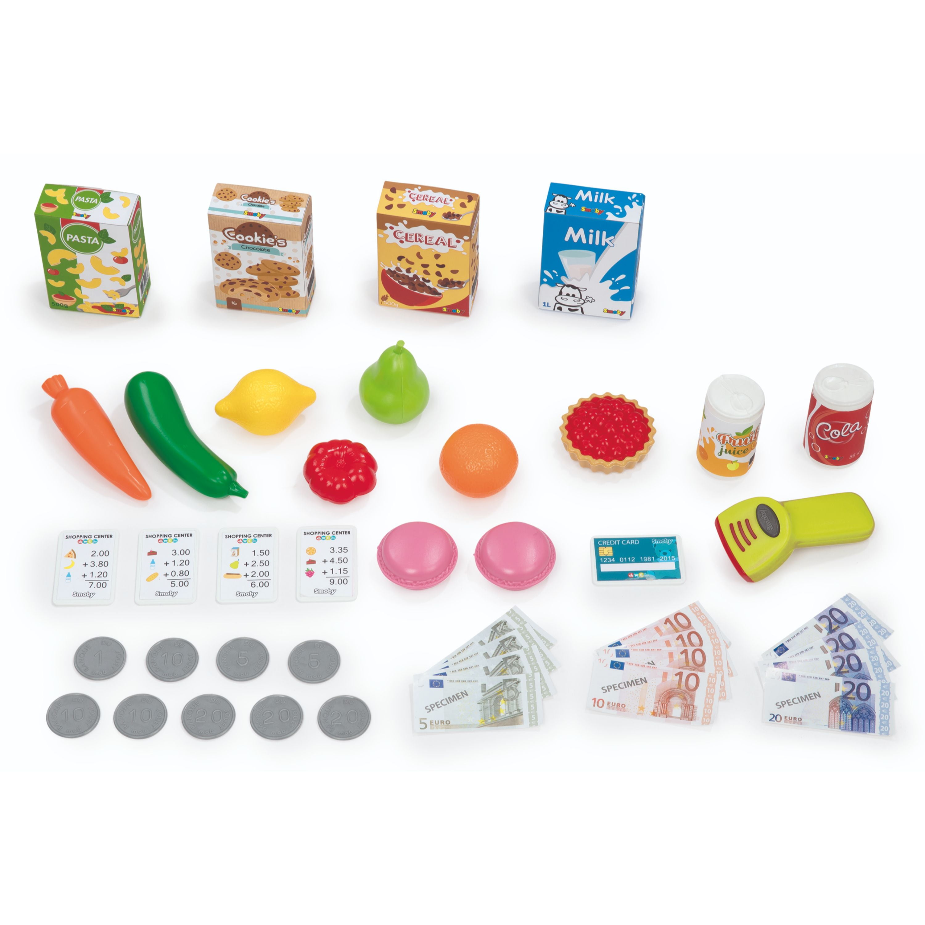 • Market with shelves and many different functions • Real mechanical scale for weighing • The child can set the clock and the sign panel (open/closed) • Barcode scanner makes sound and lights up, just like the real thing • Print a receipt after paying with the pretend credit card • Ages 3 and up