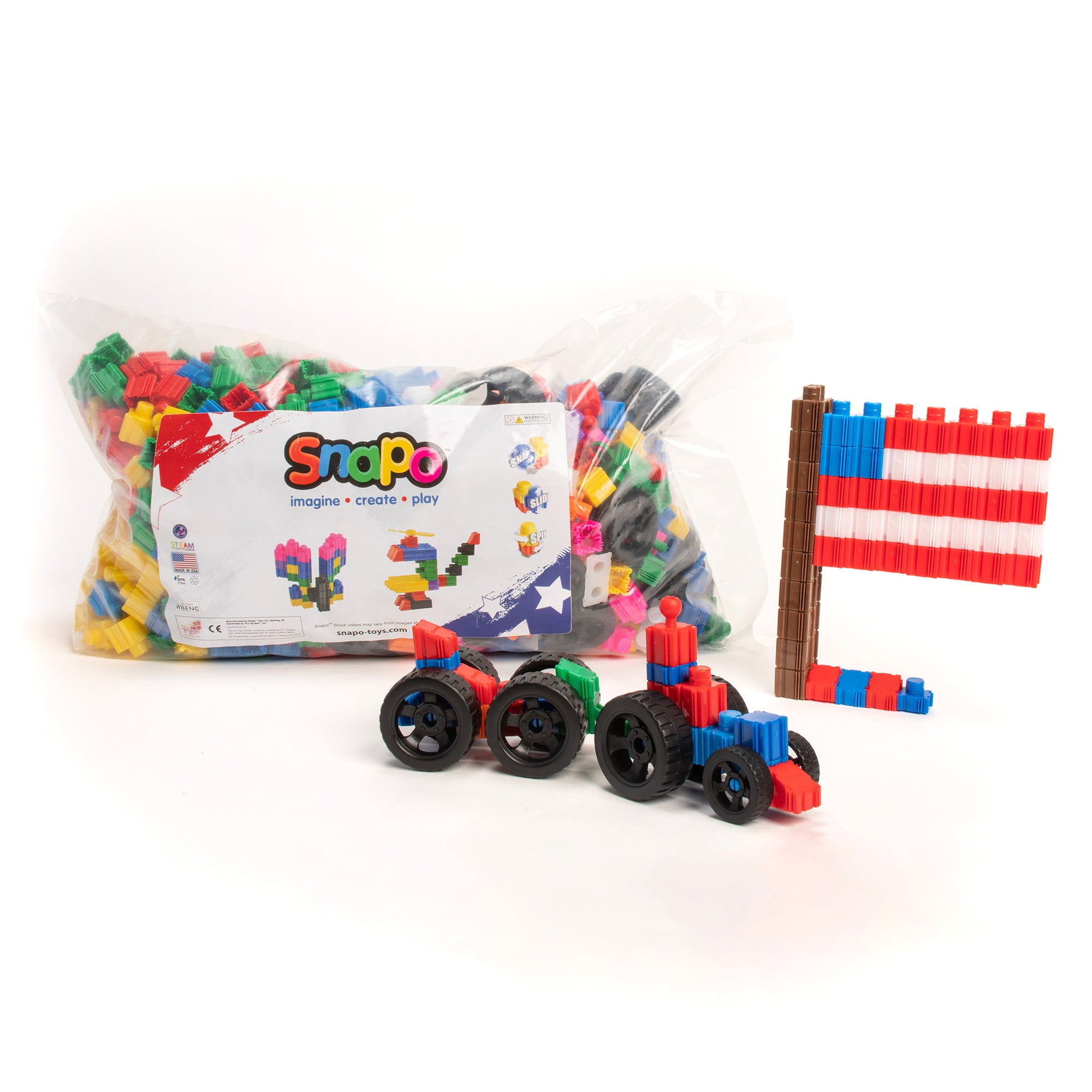 3D CONNECT IN ALL DIRECTIONS: Snapo Blocks feature our patented Snap Technology. They connect on All 6 Sides, slide vertically & can rotate! Creating endless creations & possibilities. 3D connective features enable infinite creative possibilities. AUDITORY & PHYSICAL ENGAGEMENT: Provide Both Physical and Auditory feedback when connected – which confirms that a connection has been made. This pleasing sound is part of the building experience that helps keep children’s interest and focus. IMAGINE – CREATE – PLAY: SNAPO takes building blocks to the next level in creativity, open-ended building & free play. Provides kids a platform to create whatever their evolving minds imagine, without the connective limitations of traditional blocks. STEAM PLAY & LEARNING: An excellent STEAM product (Science, Technology, Engineering, Art, and Math). Open play – Good for your child’s brain development, stimulates creative thinking, expands spatial and fine motor skills, and eye hand coordination. ALL SNAPO BLOCKS are BPA-free, non-magnetic, washable & safety tested. 100% A in our Reading, PA manufacturing facility. A woman owned business, 100% recyclable, produced in a near zero waste facility & contain approx 20% recycled material.