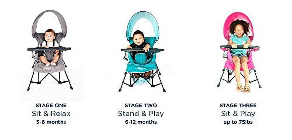 Travel with ease using the Baby Delight Go With Me Chair in the Horizon Sky style. The 5 point removable harness makes your stable baby’secure and comfortable as they sit upright in the seat. As baby grows the seat can unvelcro to reveal two leg holes perfect for letting baby’stand with support. The chair can then be used through toddler and big-kid ages, either with or without the snack tray. Indoor/outdoor polyester along with the included sun canopy makes this the perfect chair to carry with you for use outdoors, or anywhere indoors.