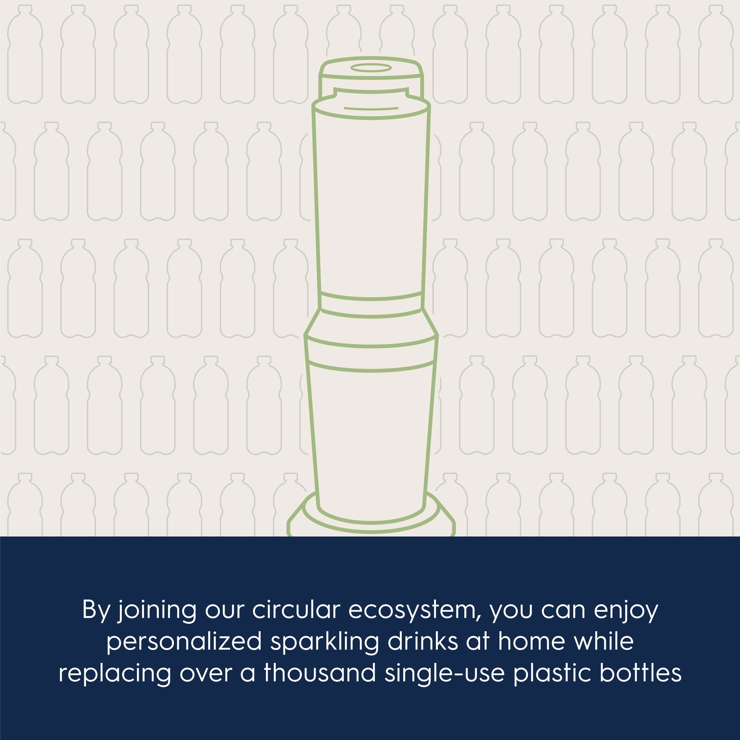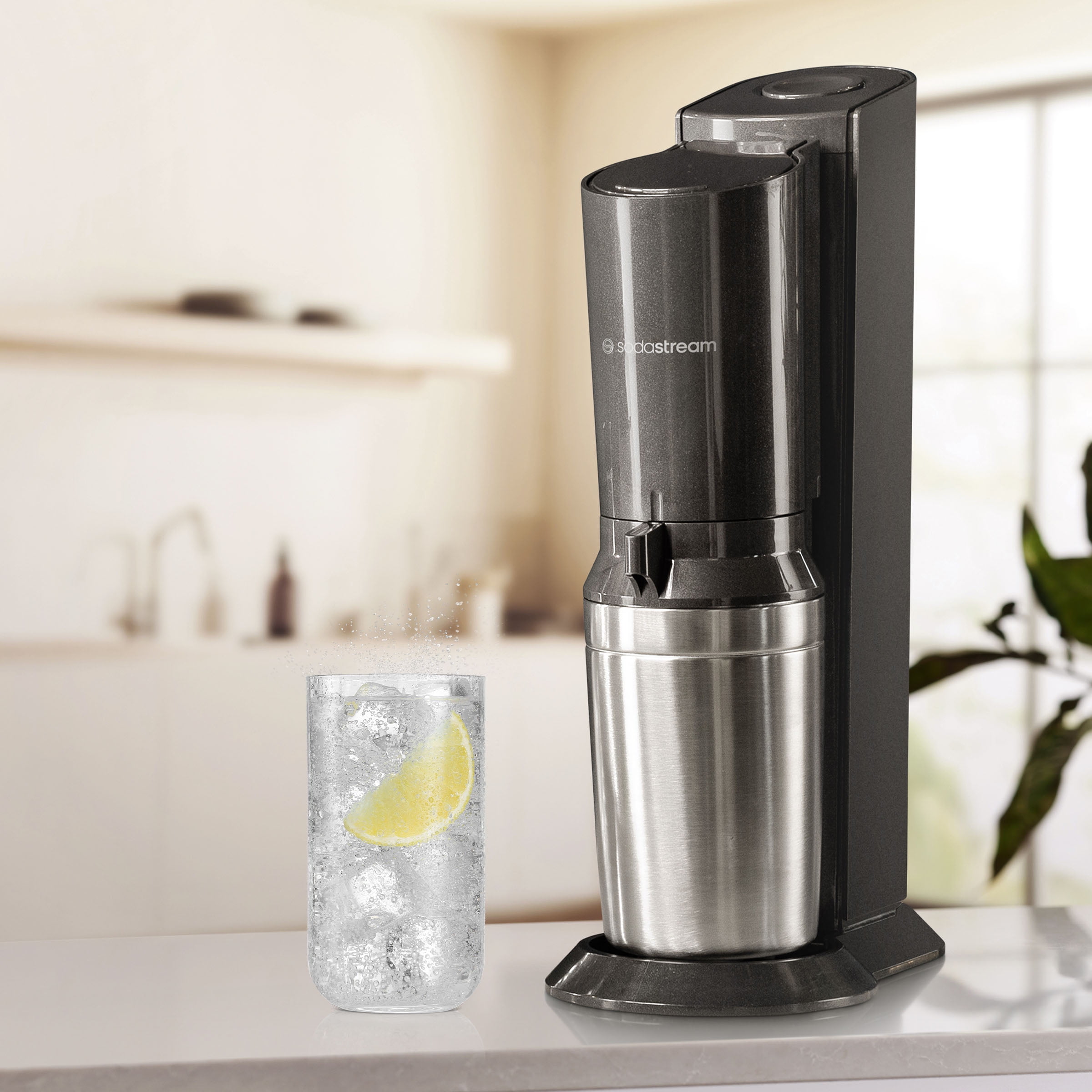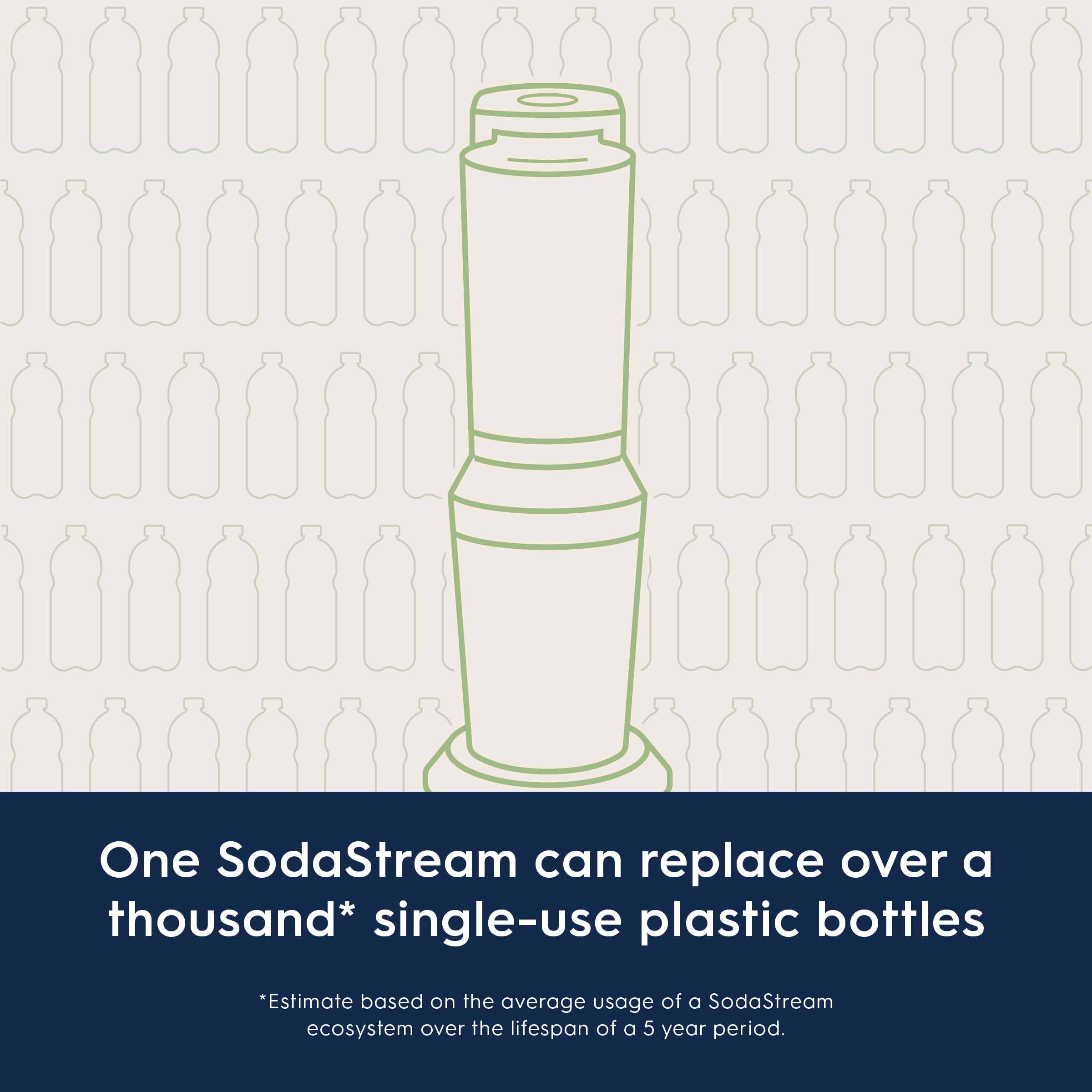 Benefits: Simply choose how many bubbles you’d like and add some fun to your fizz with our better-for-you flavors. Not only will your taste buds thank you for the bubs, but you’ll also be doing your part to reduce single-use plastic bottles Environmentally Friendly: SodaStream has helped reduce millions of single-use plastic bottles using tons of flavorful, good-for-you fizz, and a whole lotta bubble love Carbonation Button: Fizz that’s made just for you! Personalize each bottle of bubs by how many times you press the carbonation button Other Features: Serve your sparkling water from the unique glass carafe. This machine includes a sealing lid for clean, quiet carbonation SodaStream Authorized Dealer: Includes USA Manufacturer Warranty
