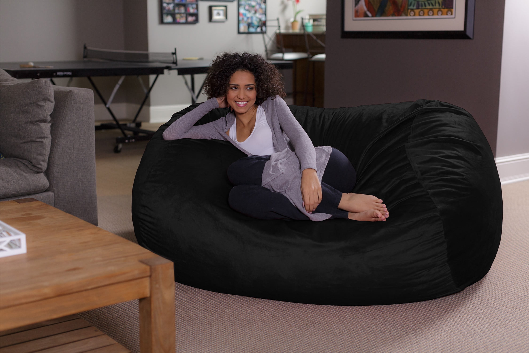 Sofa Sack Bean Bag Chair, Memory Foam Lounger with Microsuede Cover, Kids, Adults, 6 ft, Black