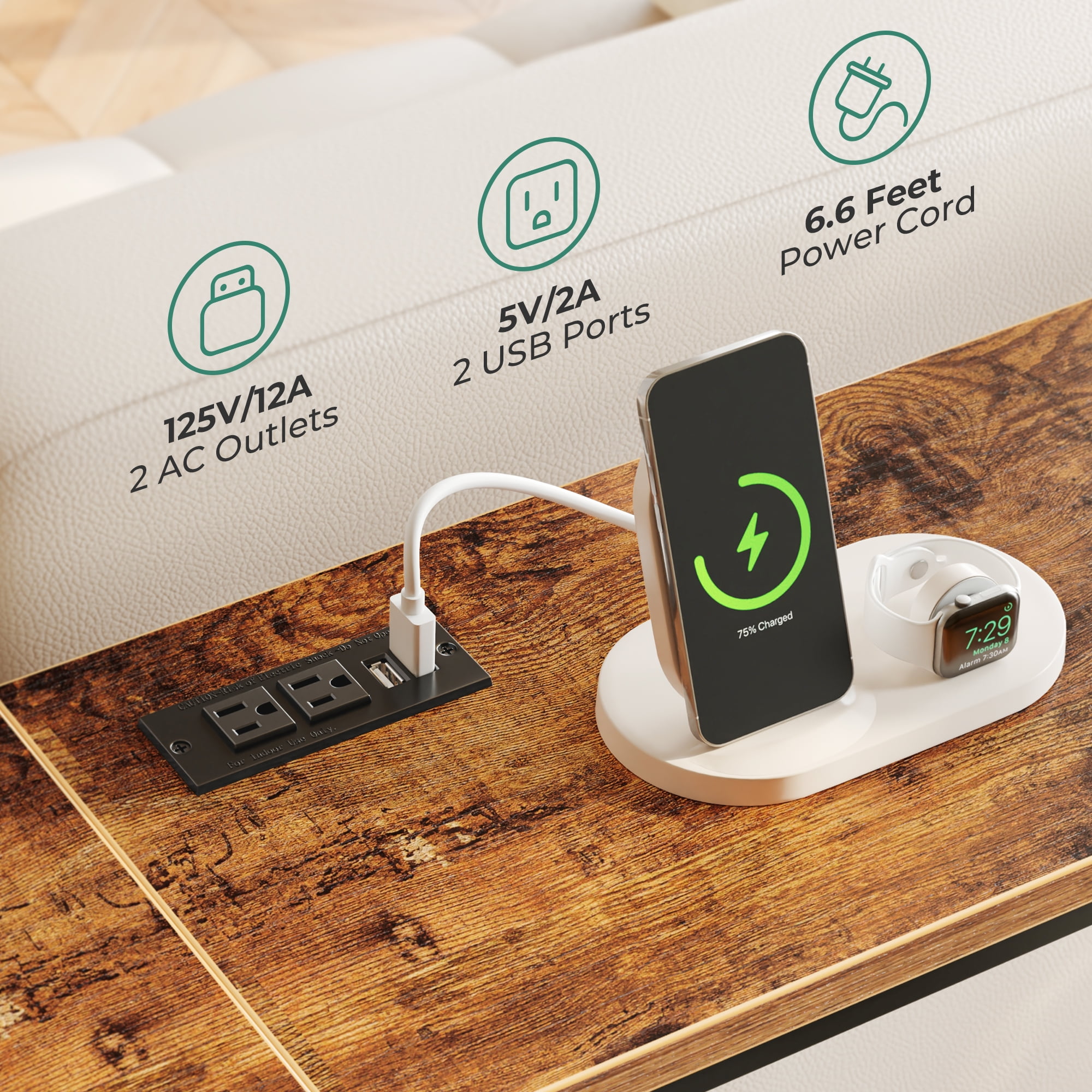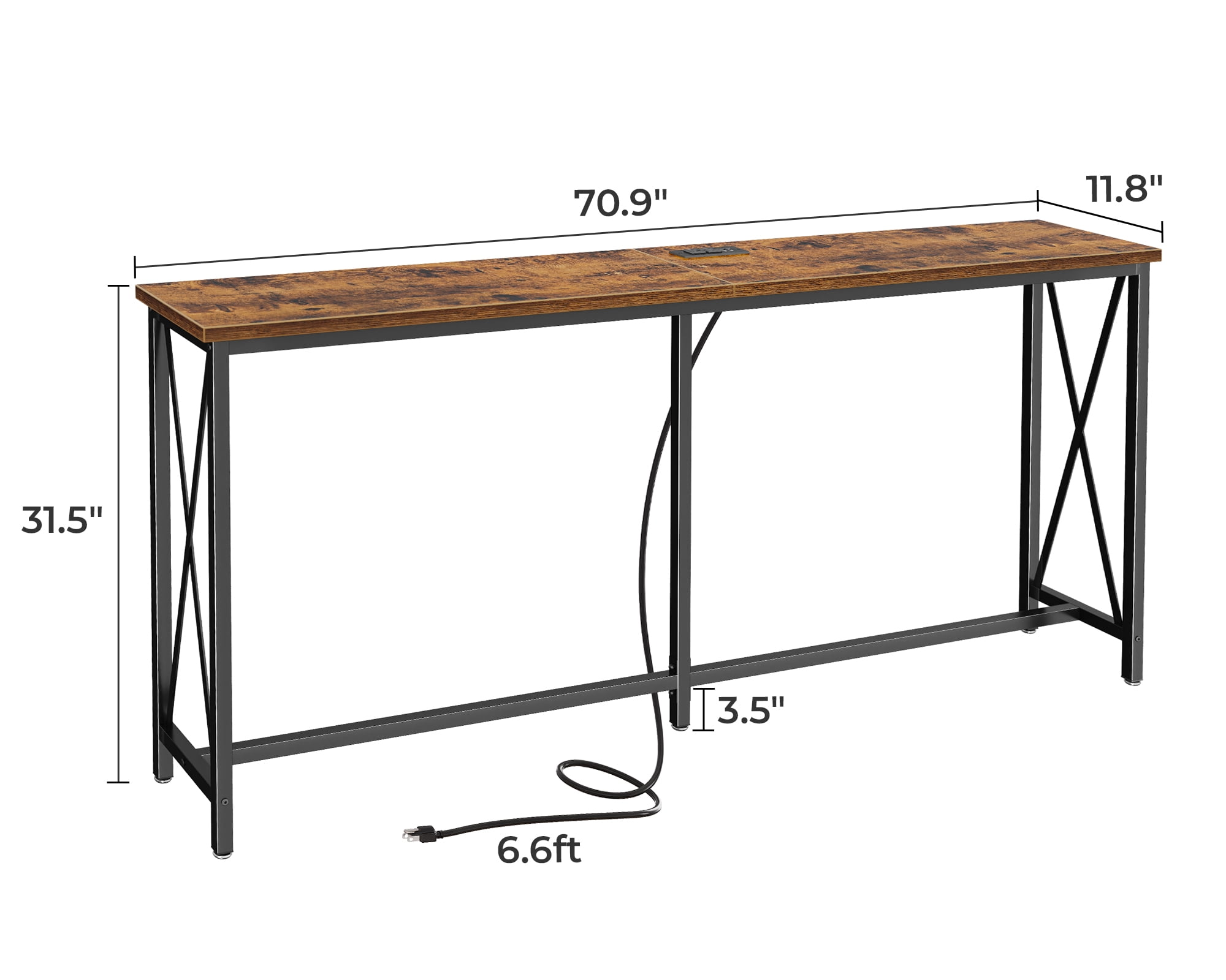 2 AC Outlets & 2 USB Ports: Easy charging behind the sofa Extra Long Size: 70.9 “L x 11.8″W x 31.5″H Multiple Use Occasions: A sofa table, an entryway table… Quality Matters: Sturdy particleboard & metal frame Install Is Easy: Numbered parts, clear instructions, and needed tools