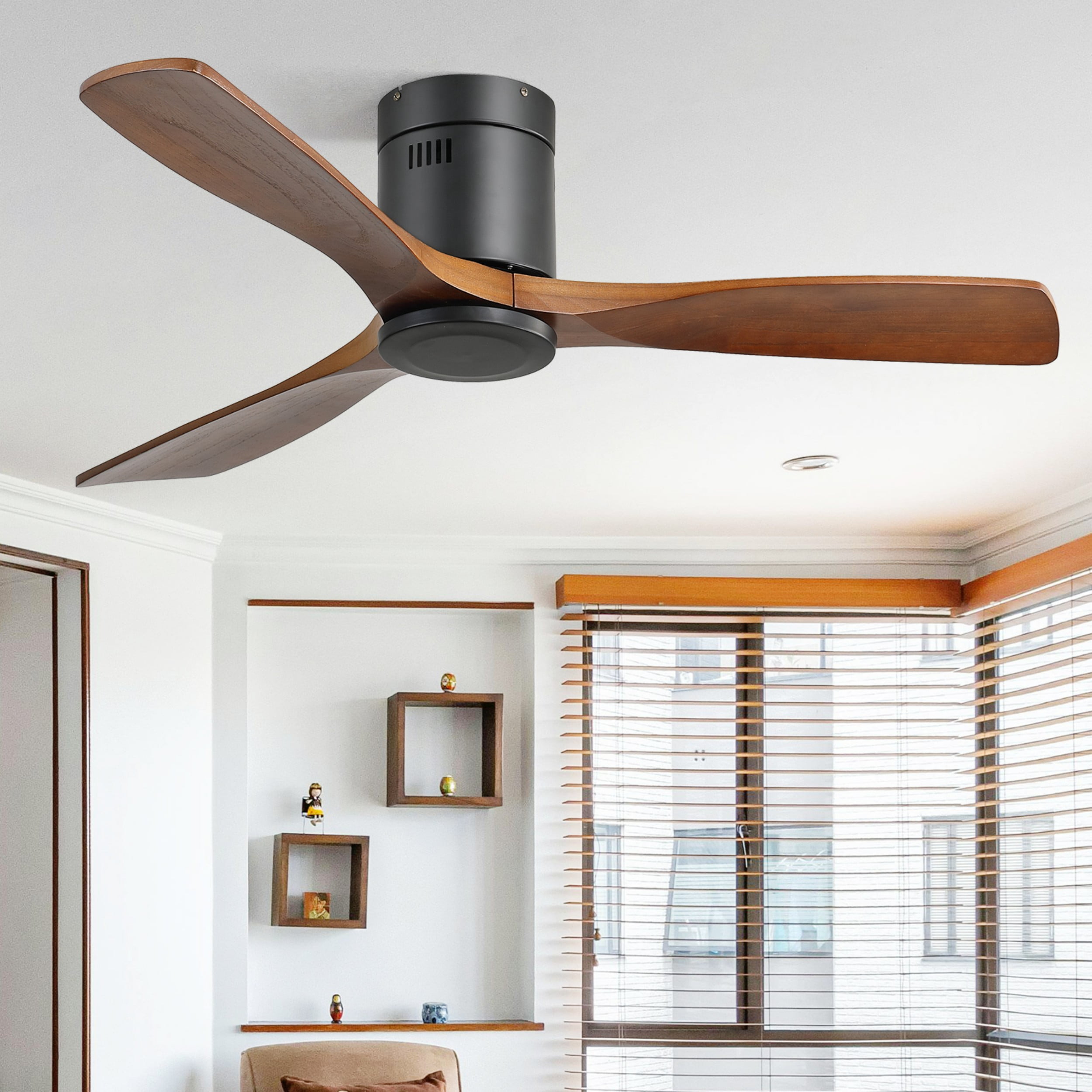 Sofucor 52-Inch Ceiling Fan, Flush Mount, Remote Control, Wood Blades, Modern Indoor/Outdoor Fan for Bedroom, Patio