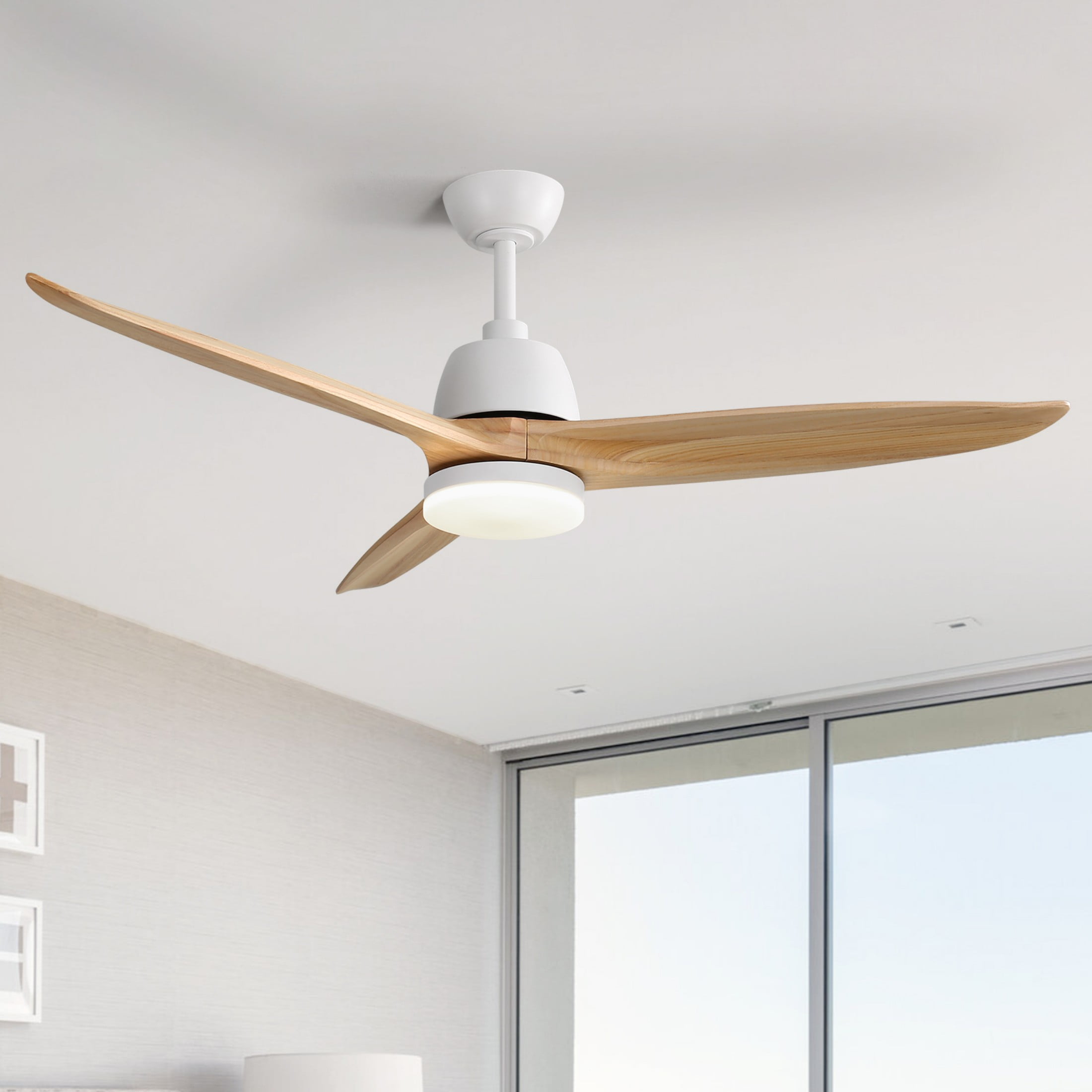 56 Inch Ceiling Fan with Lights: Sofucor 56 inch wood ceiling fan suits for medium or larger size room from 100sq.ft up to 400sq.ft, such as a kitchen, bedroom, living room, dining room,patio or common areas. Modern Ceiling Fan: Copper DC motor provides strong air flow and quiet operation. The reversible function can cool down your room during summer, and help rotate warm air and cutting down on energy costs in winter by holding down the reversible button. Dimmable LED Light: Extreme LED lamps can save energy and changes the visual appearance and mood of your space. It capable to dimming from 100% to 10% via remote controling. The long-lasting bulbs have longer lifespan than traditional bulbs. Ceiling Fan with Remote: The led lights ceiling fan has setting the timer function, 1/4/8 timing function. 6 speed let you choose your wanted air flow. You can choose anti-theft function when leaving home. Easy to install: Diameter 56 inch in diameter, 2 down-rods: 5 inch and 10 inch, for low ceilings or high ceilings. And the wood ceiling fan can be installed on a ceiling with maximum slope of 15 degree . We offer 30 days unsatisfied replacement free or return 100% redund service. Lifetime motor warranty.