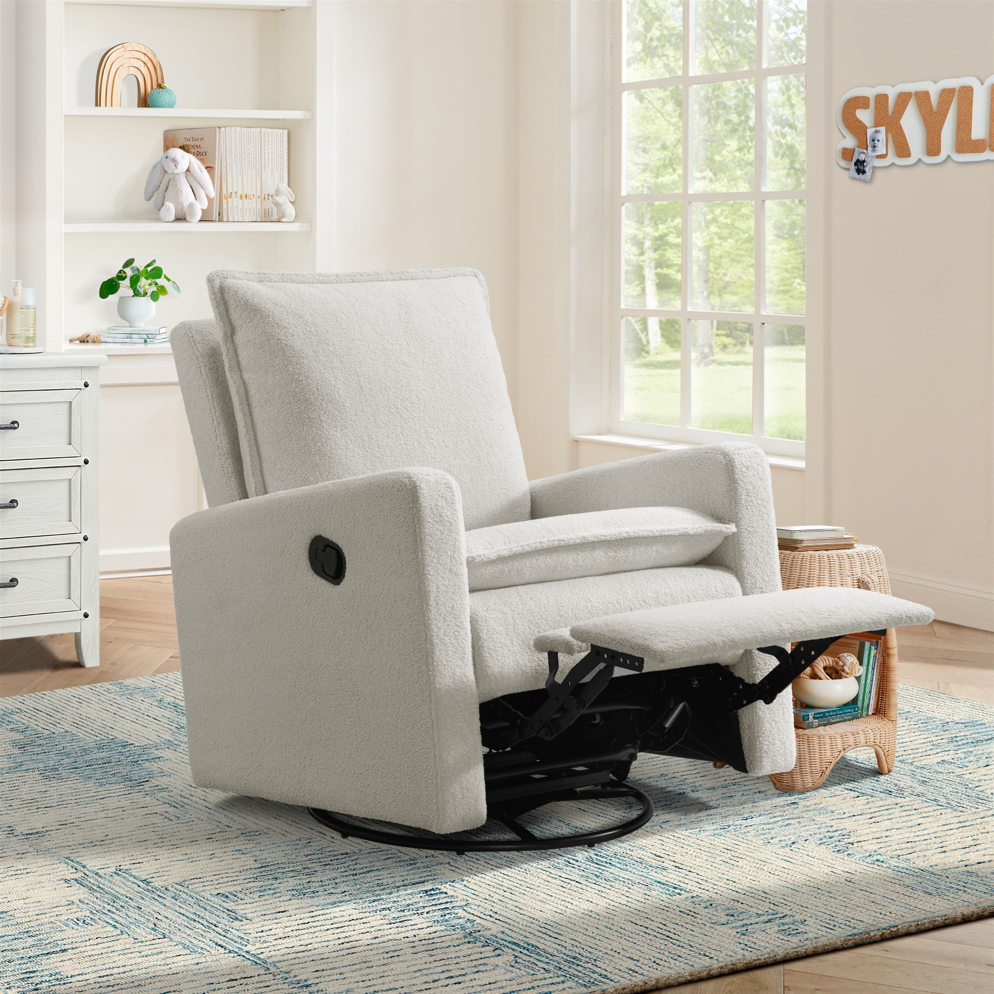 Soho Baby Coventry Manual Upholstered Glider Recliner Rocking Chair 360° Swivel for Nursery and Living Room – Boucle White