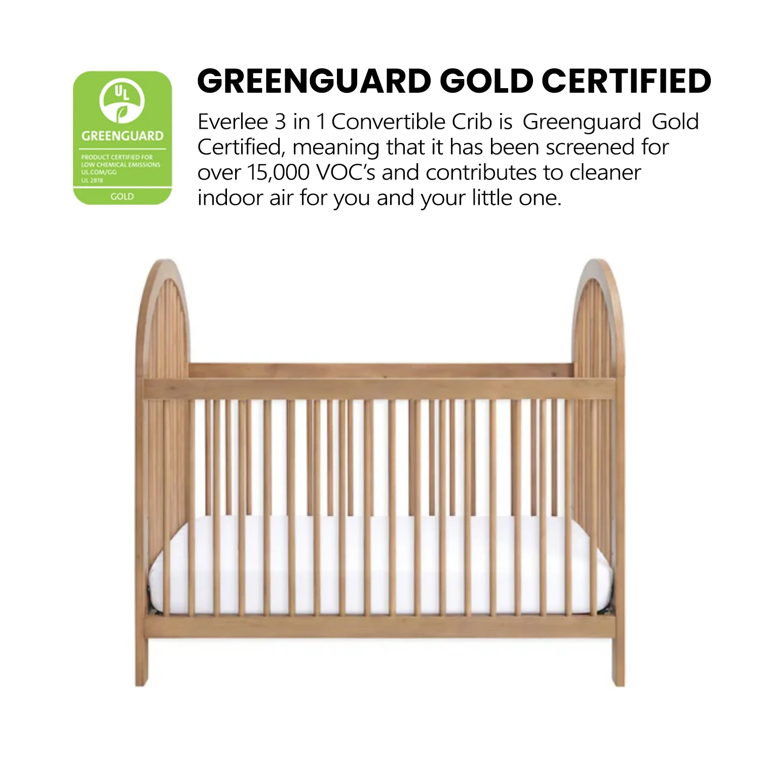 SAFETY FIRST: Soho Baby Nursery Furniture is made to the highest safety standards that meet those set by the Consumer Product Safety Commission (CPSC) and American Society for Testing and Materials (ASTM); Our furniture endures rigorous testing by third-party labs to guarantee compliance with U.S. and Canada market so you can rest assure that your child is sleeping in a safe sleep environment GREENGUARD GOLD CERTIFIED: The Soho Baby Crib has achieved GREENGUARD GOLD Certification; GREENGUARD GOLD Certified products have undergone rigorous testing for over 10,000 chemical emissions, ensuring that this product is certified for low chemical emissions into indoor air during product usage SOPHISTICATED STYLING: The Everlee Crib conveys a simple and sturdy look with a contemporary style, while adding a luxurious touch to your nursery. THOUGHTFULLY DESIGNED: Designed to fit a standard-sized crib mattress, this Soho Baby 4-in-1 Crib offers a convenient convertible design that will grow as your child grows by converting from a crib to toddler bed, daybed, and full-size bed with 3-levels of mattress height adjustments for your growing child GROWS WITH YOUR BABY: To guarantee your child’s crib can be converted as they grow, we highly recommend purchasing the compatible crib conversion accessories such as toddler guard rail and full bed conversion kit within a year of your initial crib purchase. This helps avoid any potential issues with stock availability or product discontinuation. Secure your conversion accessories early to ensure your little one enjoys a smooth transition from crib to toddler bed and beyond.