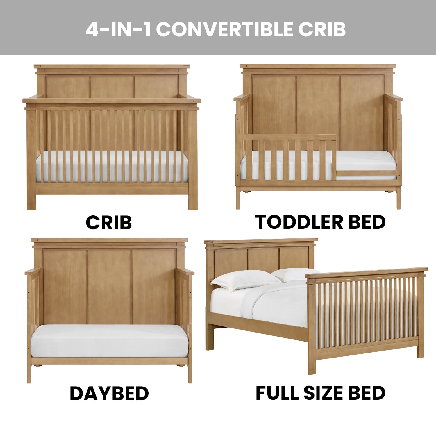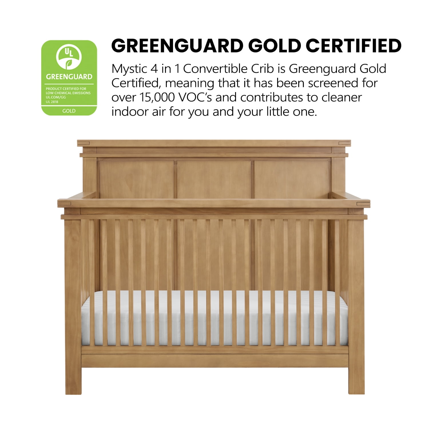 SAFETY FIRST: Soho Baby Nursery Furniture is made to the highest safety standards that meet those set by the Consumer Product Safety Commission (CPSC) and American Society for Testing and Materials (ASTM); Our furniture endures rigorous testing by third-party labs to guarantee compliance with U.S. and Canada market so you can rest assure that your child is sleeping in a safe sleep environment. EXQUISITE STYLING: With its sleek design, the Mystic 4-in-1 Convertible Crib adds a charming, modern aesthetic to your nursery. PREMIUM QUALITY & CRAFTSMANSHIP: Made from solid woods and wood veneers and backed by a 1 Year Limited Manufacturer’s Warranty, this crib is expertly crafted from solid and sustainably sourced wood providing quality construction creating a safer, sturdier sleep environment for your baby THOUGHTFULLY DESIGNED: Designed to fit a standard-sized crib mattress, this Soho Baby 4-in-1 Crib offers a convenient convertible design that will grow as your child grows by converting from a crib to toddler bed , daybed and a full size bed. Mystic crib features 3 levels of mattress height adjustments for your growing child. COMPLETE NURSERY COLLECTION: The Mystic Collection by Soho Baby in Honey Wood features a 4-in-1 Convertible Crib (13211810), 6-Drawer Dresser (13236810), Chifferobe (13245810), Changing Topper (13265810), Nightstand (13222810), Toddler Bed Guard Rail (13295810), Full-Size Bed Conversion Kit (13288810), and Soho Baby Crib Mattress, sold separately; The Mystic Collection is available in Honey Wood. ASSEMBLED DIMENSIONS: Measuring 58 in. W x 31.5 in. D x 47.5 in. H (88.2 lbs.), this full-size Soho Baby Crib arrives ready to assemble and includes hardware and tool for assembly WEIGHT CAPACITY: 50 pound weight capacity when used as a crib, toddler bed, or day bed; 400 pound weight capacity when converted to a full-size bed