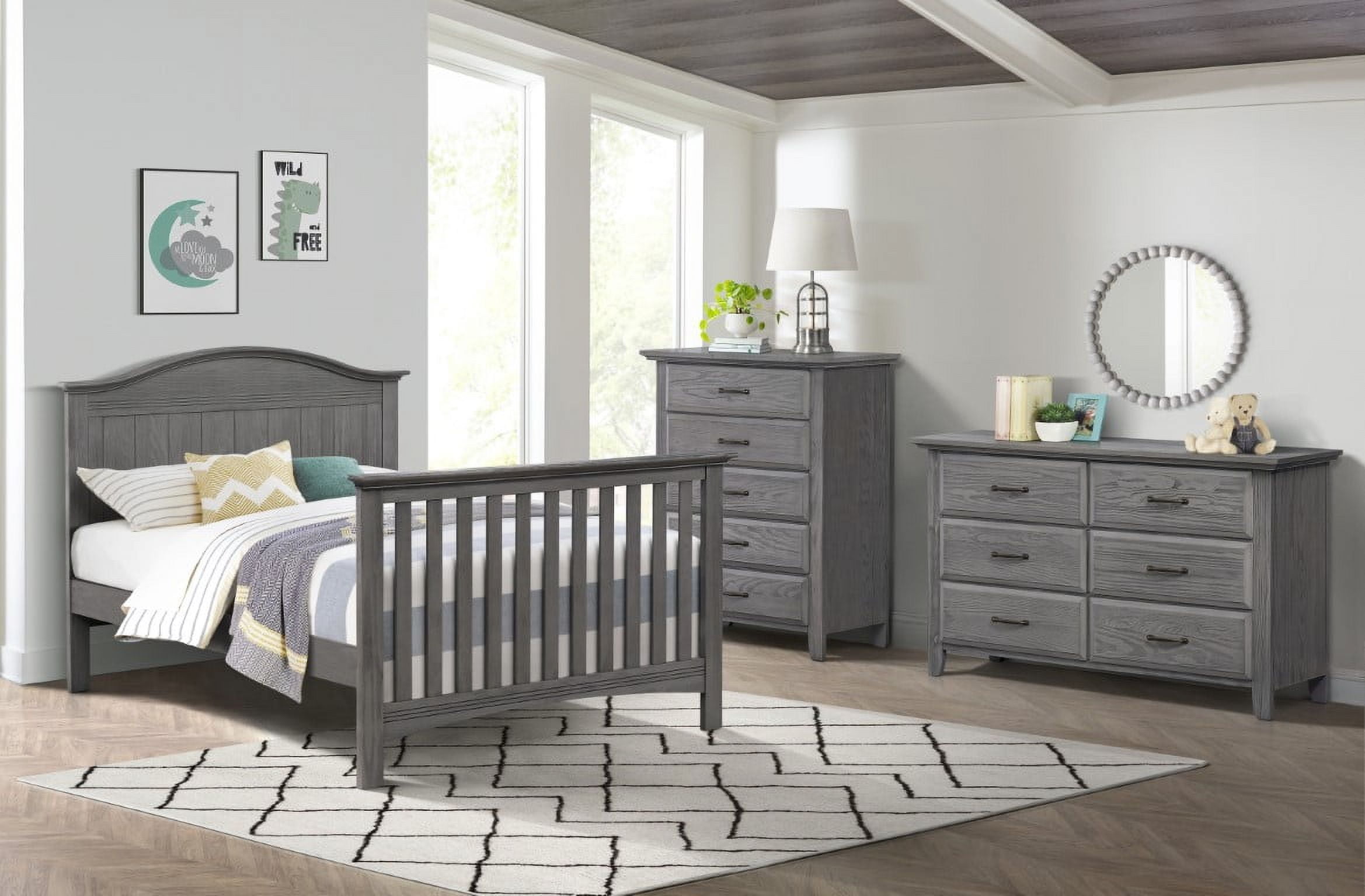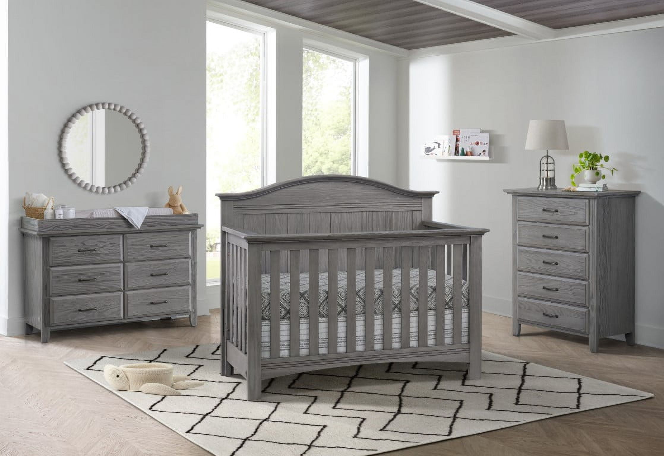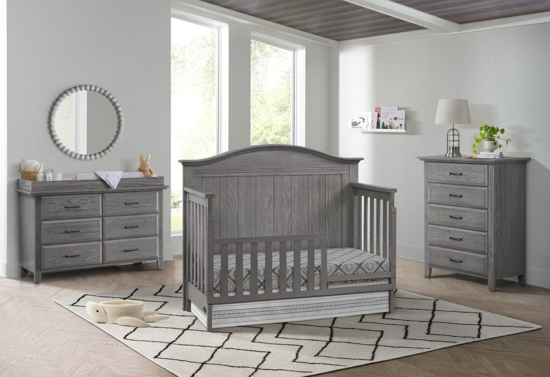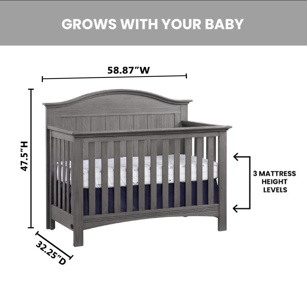 SAFETY FIRST: Soho Baby Nursery Furniture is made to the highest safety standards that meet those set by the Consumer Product Safety Commission (CPSC) and American Society for Testing and Materials (ASTM); Our furniture endures rigorous testing by third-party labs to guarantee compliance with U.S. and Canada market so you can rest assure that your child is sleeping in a safe sleep environment SOPHISTICATED STYLING: The Sheridan Crib boasts an intricate full panel gently curved headboard with beautifully refined vertical shiplap detail complemented by horizontal clean line accents, and a grainy wire brush finish PREMIUM QUALITY & CRAFTSMANSHIP: Made from solid woods and wood veneers and backed by a 1 Year Limited Manufacturer’s Warranty, this crib is expertly crafted from solid and sustainably sourced wood providing quality construction creating a safer, sturdier sleep environment for your baby THOUGHTFULLY DESIGNED: Designed to fit a standard-sized crib mattress, this Oxford Baby 4-in-1 Crib offers a convenient convertible design that will grow as your child grows by converting from a crib to toddler bed, daybed, and full-size bed with 3-levels of mattress height adjustments for your growing child GROWS WITH YOUR BABY: To guarantee your child’s crib can be converted as they grow, we highly recommend purchasing the compatible crib conversion accessories such as toddler guard rail and full bed conversion kit within a year of your initial crib purchase. This helps avoid any potential issues with stock availability or product discontinuation. Secure your conversion accessories early to ensure your little one enjoys a smooth transition from crib to toddler bed and beyond.