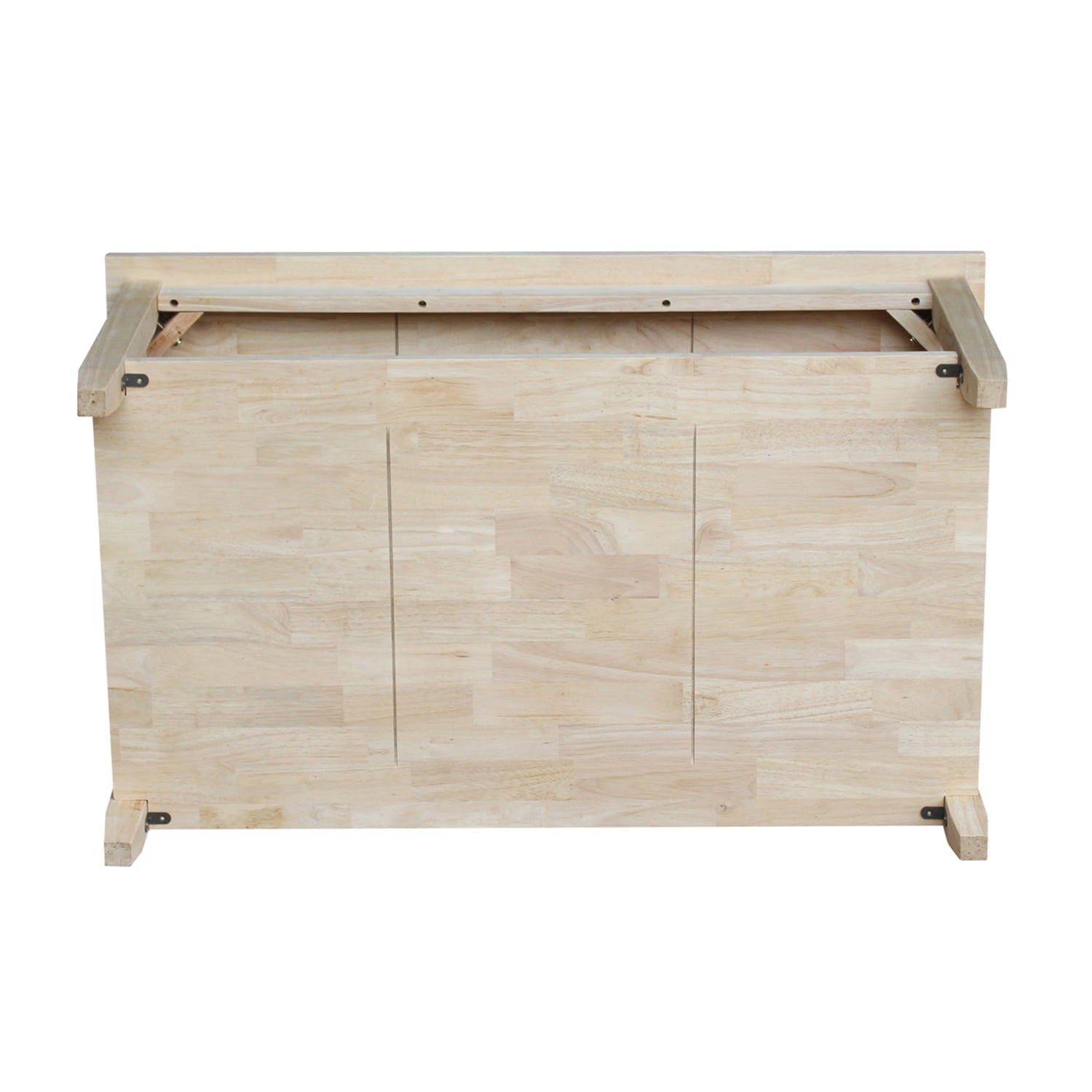 International Concepts home furniture is for those who appreciate high quality, wood furniture with a traditional and elegant look. This piece will beautifully complement any décor in your home. Features: Dimensions: 42″W x 25″D x 18″H Made from solid hardwood Includes a butcher block surface Ready to assemble Includes 1 shelf Distance from lower shelf to floor: 3.94″ Distance from lower shelf to bottom of apron: 11.1″