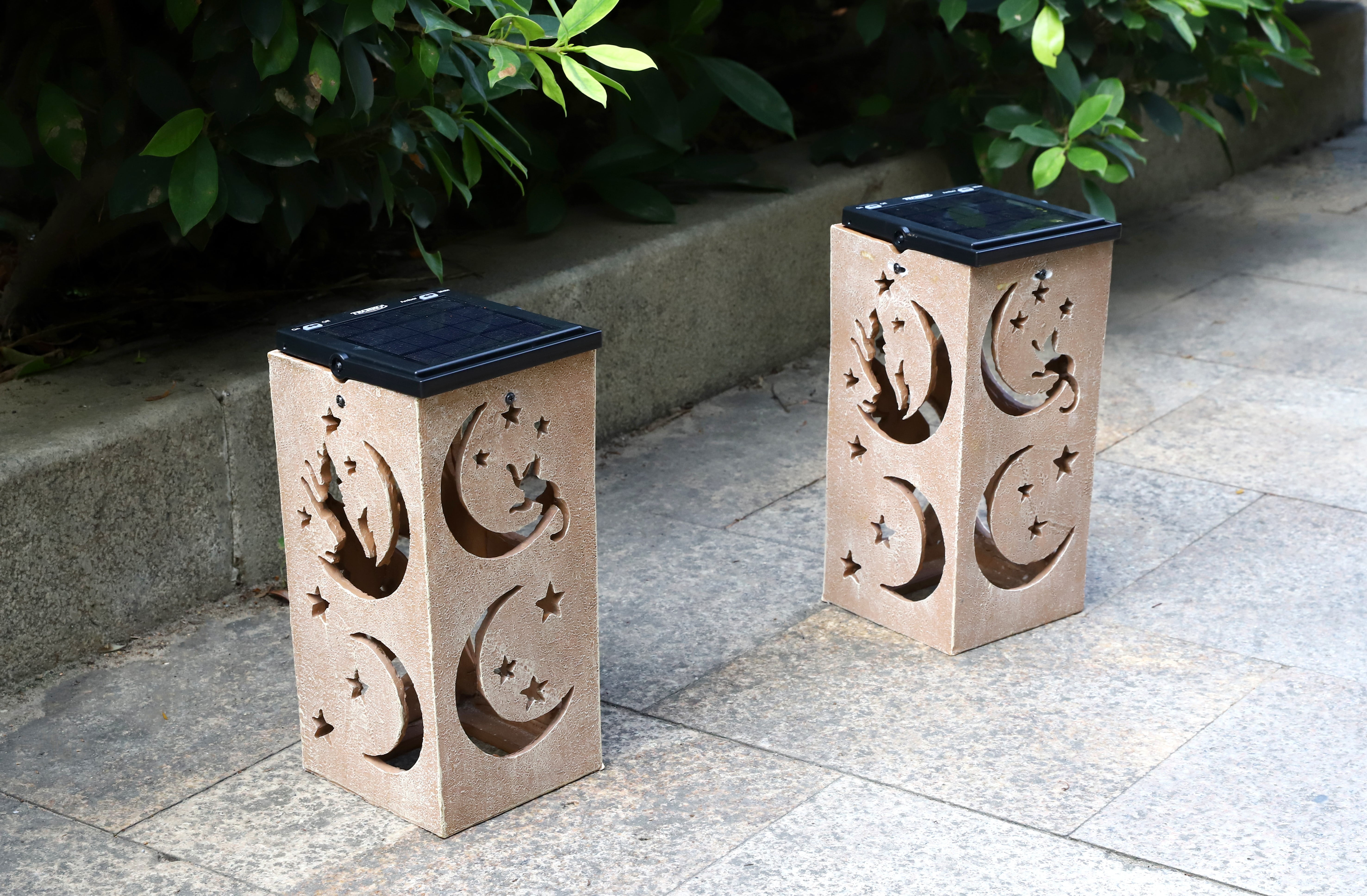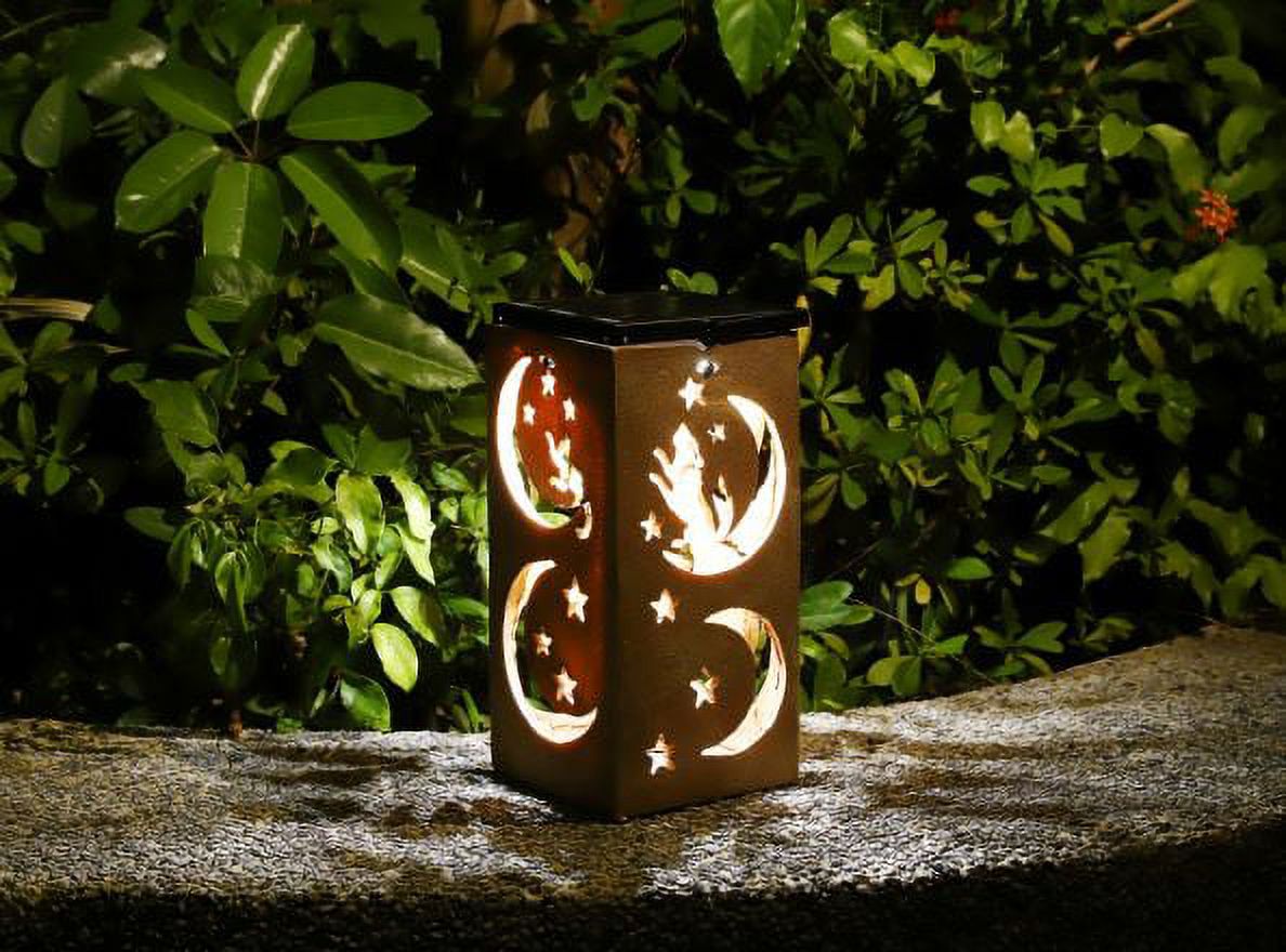 Techko Solar Portable Decorative Lanterns are a fun way to brighten areas with a beautiful silhouette and decorative patterns. Perfect lighting for special events, decks, patios and or areas with limited visibility. This solar portable decorative lantern will also make a great gift for any occasion or celebration. This unit comes with the option of two different lighting modes to choose from, either warm amber or bright white that make the lantern glow in all directions. Automatically turns on at night and automatically off during the day to charge. IP65 water and dust resistance rating making it suitable for most outdoor locations and environments. Contains one solar portable decorative lantern.