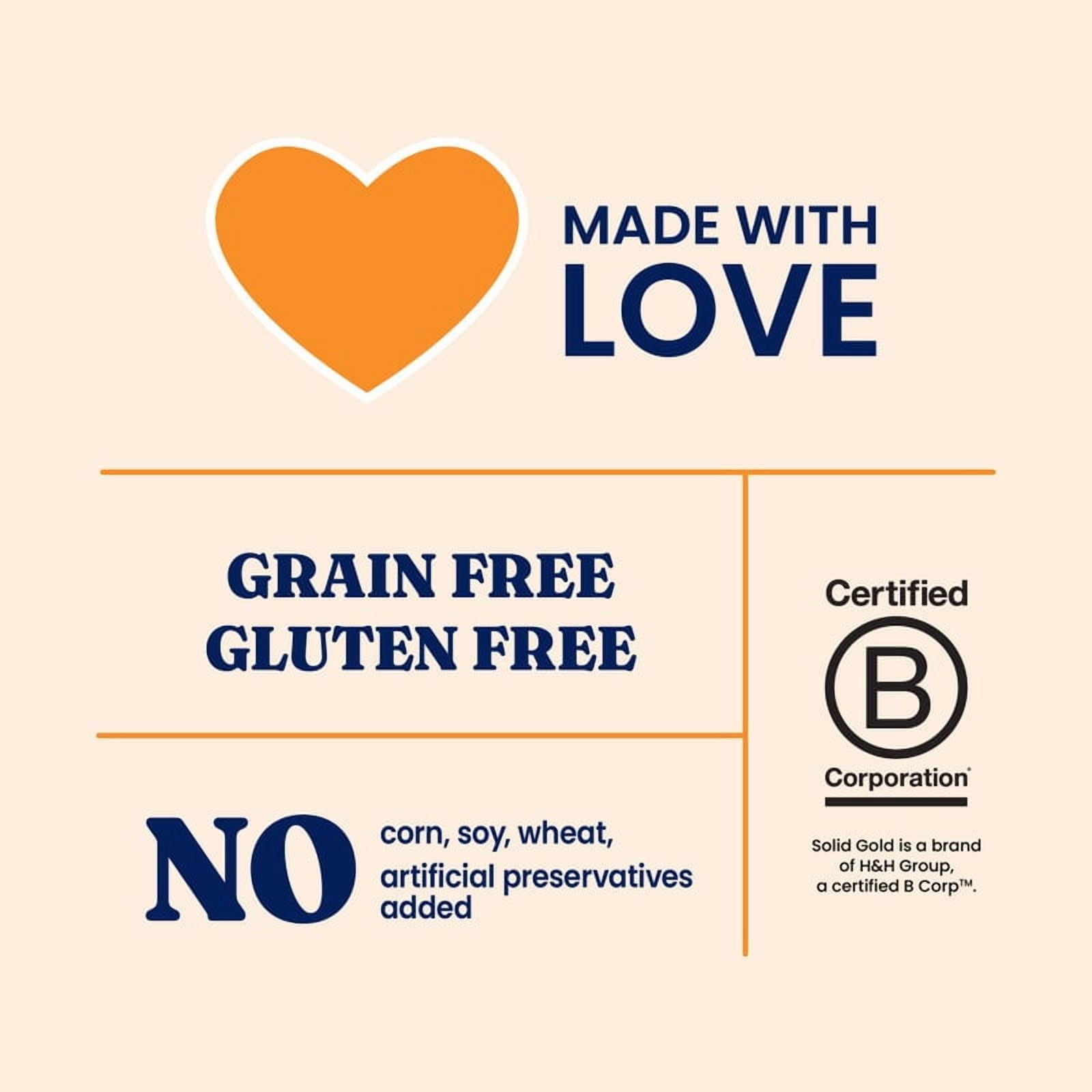 NATURAL RECIPE FOR KITTENS – Our grain free wet cat food is made with real chicken plus wholesome veggies like carrots, pumpkin and spinach for a high-fiber diet that is ideal for growing kittens. AMERICA’S FIRST HOLISTIC PET FOOD – Solid Gold has been delivering transformative nutrition for your pet since 1974, crafting recipes with functional superfoods, omega fatty acids, high quality proteins, and protected probiotics to support gut health and overall well being HOLISTIC INGREDIENTS FOR KITTENS – Our healthy cat food is grain free and gluten free and is enhanced with taurine, vitamins and minerals for whole hearted living HIGH PROTEIN, ZERO FILLER – This classic soft cat food in gravy is packed with vitamin rich spinach and fiber rich pumpkin to support healthy digestion and to help your kitten feel full so they’ll meow with delight. KEEP YOUR FELINE HYDRATED – Feed this soft pate to your kitten alone or mixed with dry food to add much needed hydration to your kitten’s core diet For over 45 years, Solid Gold® has been driven to develop new and transformative nutrition to support your pet’s health and well-being. Our premium range of products provide food for today, nourishment for tomorrow, and healthy growth for life to help pets thrive.