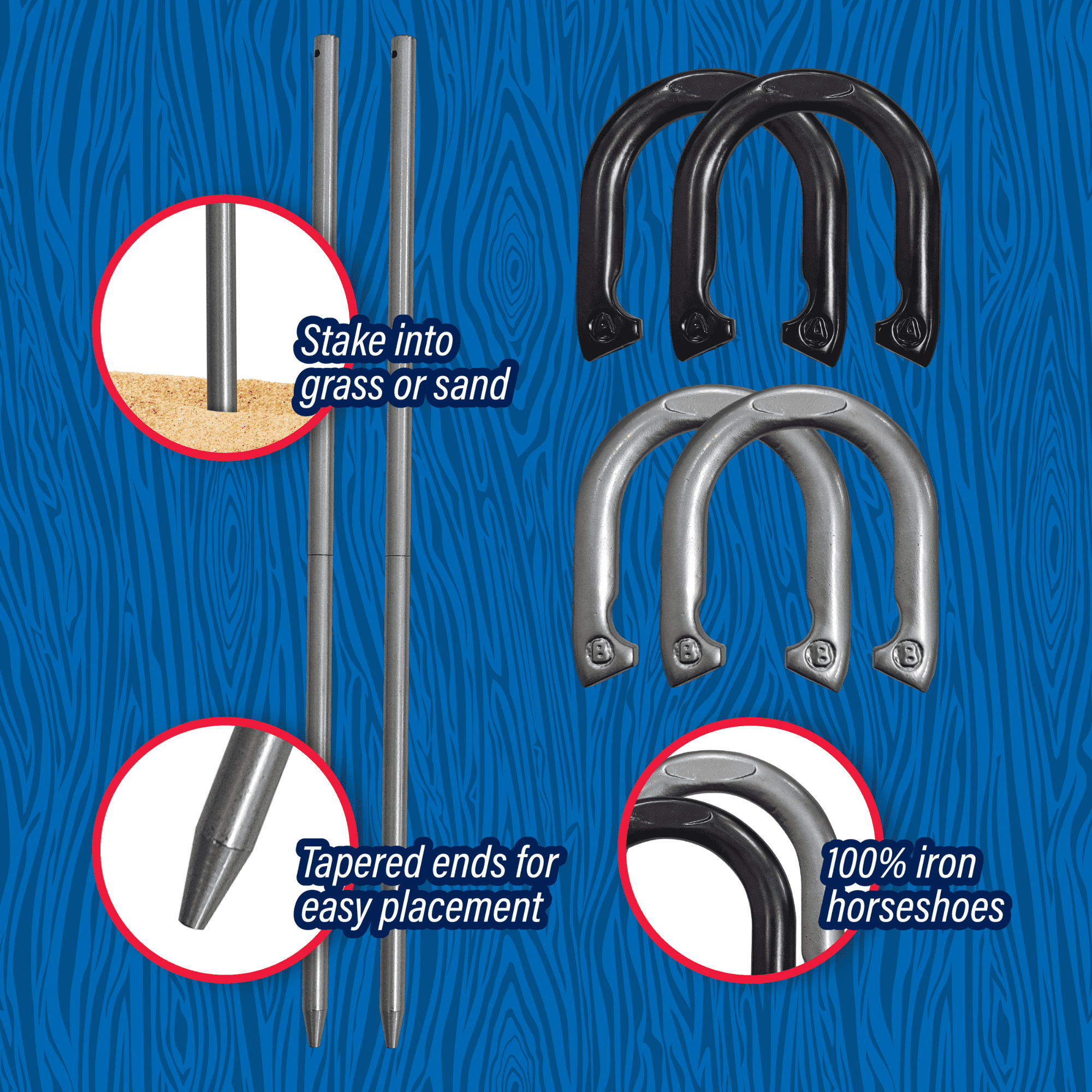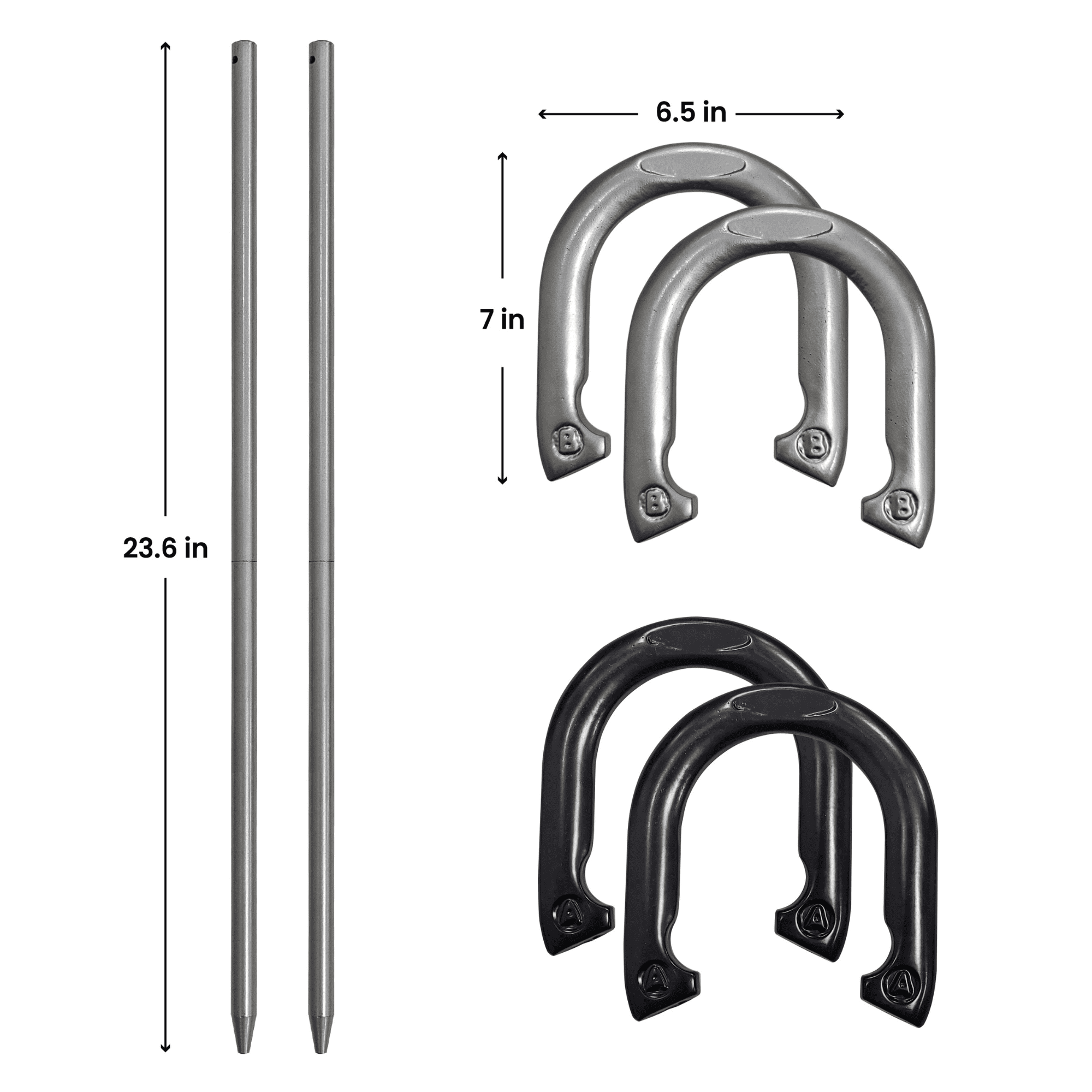 CLASSIC OUTDOOR GAME: Enjoy the timeless game of horseshoes with this MinnARK Sports set! SOLID IRON MATERIAL: Made from high-quality iron for durability and long-lasting use! COMPLETE SET: Includes four horseshoes and two sturdy stakes—everything needed to play! EASY SETUP: Simple to set up and take down, making it perfect for any outdoor occasion! FUN FOR ALL AGES: Great for family gatherings, parties, and casual play with friends, ages 3 and up! PLAY ANYWHERE: Take it to the backyard, beach, park, or any other outdoor spot!