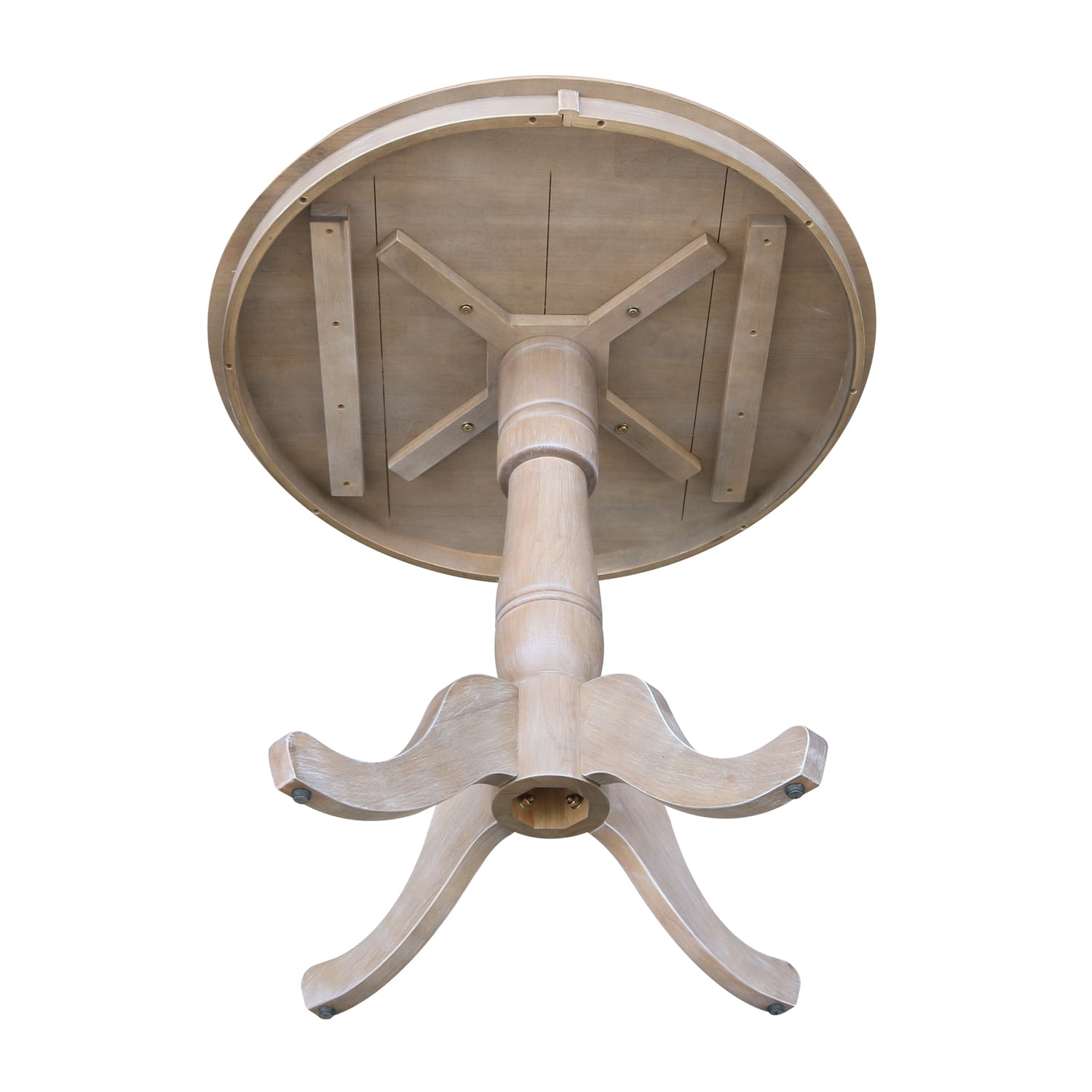 Solid Wood 36″ x 36″ Round Pedestal Dining Table in Washed Gray Taupe