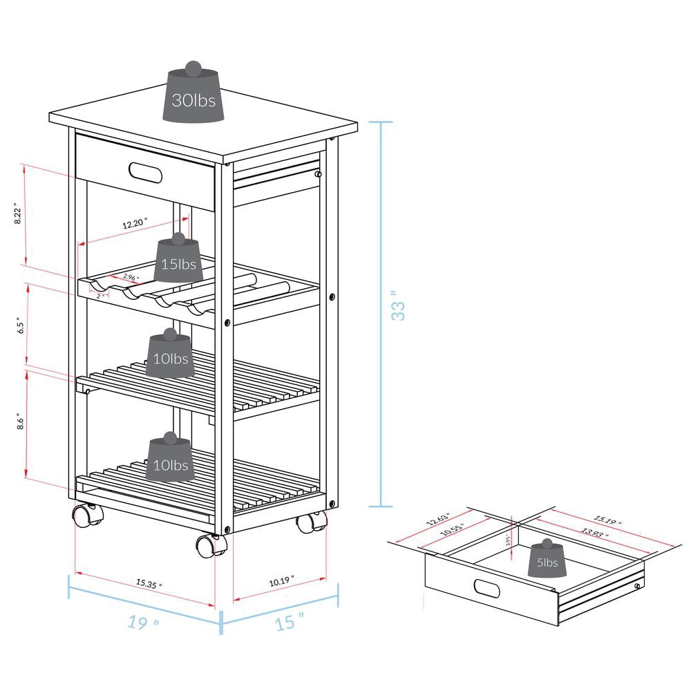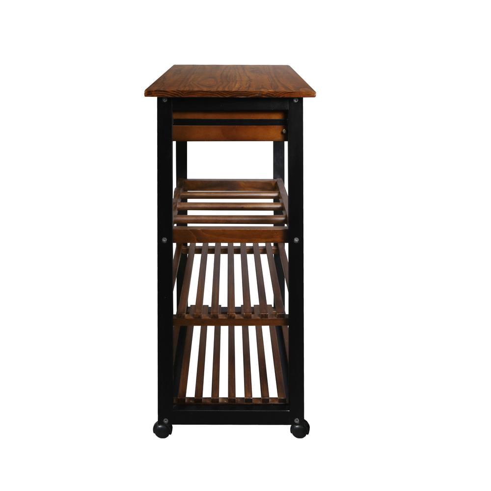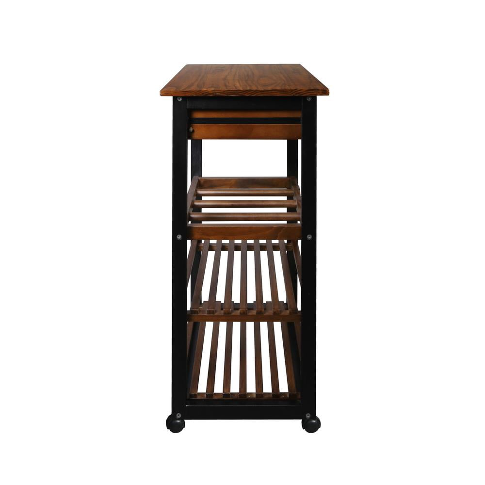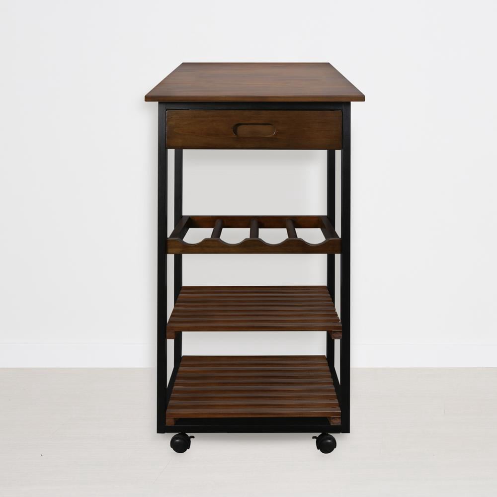 Casual Home Solid Wood Small 4-Tier Rolling Kitchen Cart with Wine Rack and Drawer