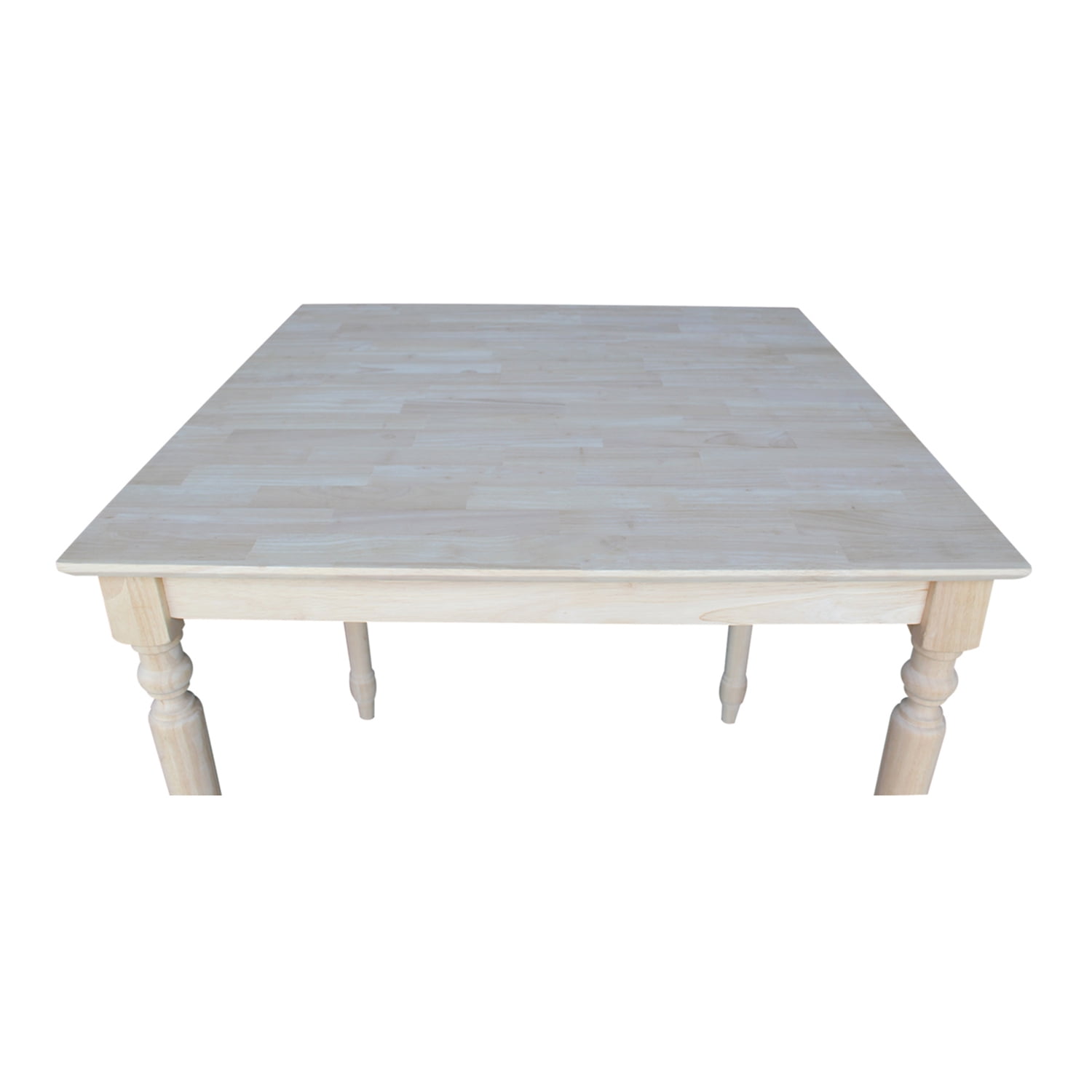 International Concepts home furniture is for those who appreciate high quality, wood furniture with a traditional and elegant look. This piece will beautifully complement your kitchen or dining room. Features: Made from solid hardwood Butcher block top Turned styled legs Ready to assemble For use with counter height stools Specifications: Table Dimensions: 36″W x 36″D x 36″H Top Dimensions: 36″W x 36″D