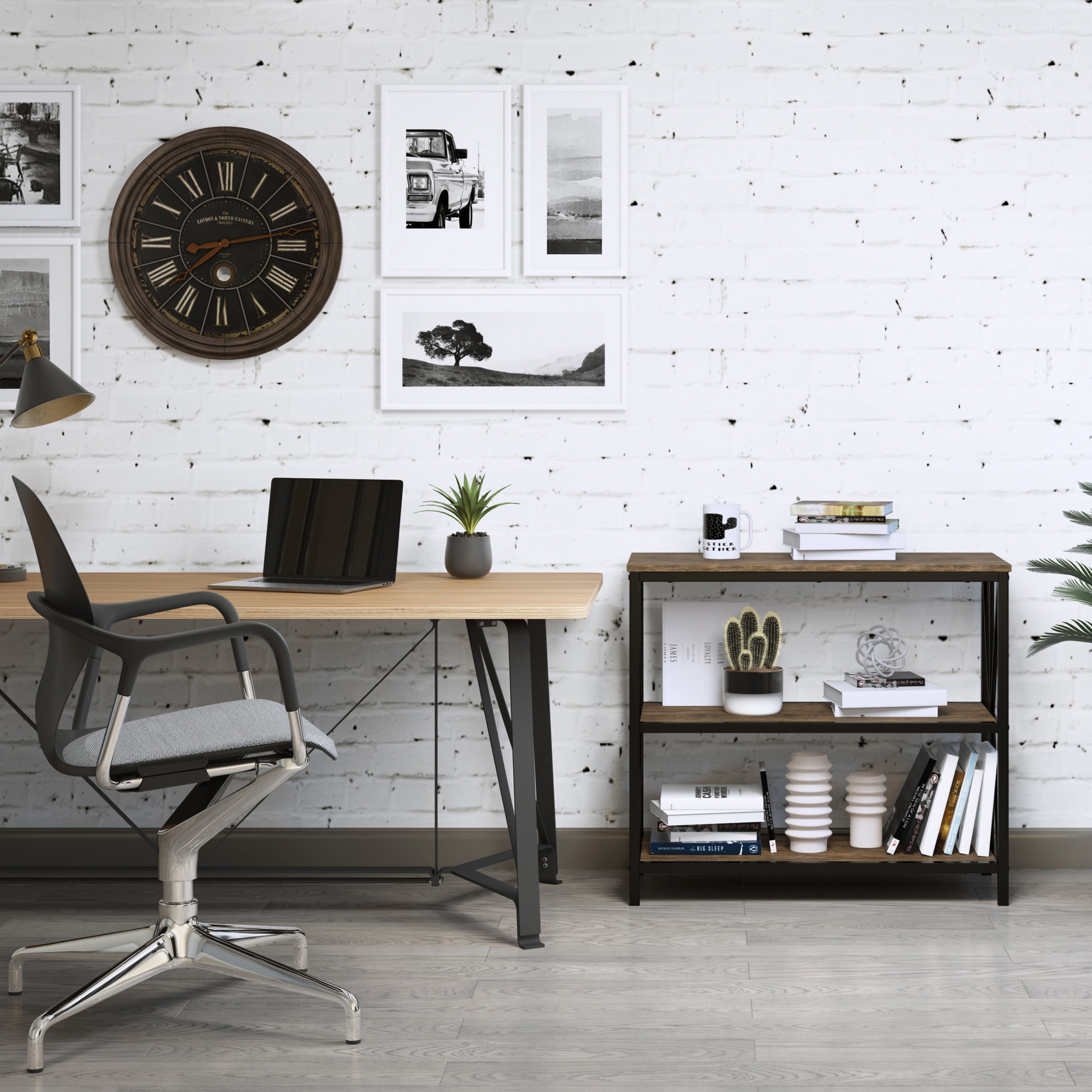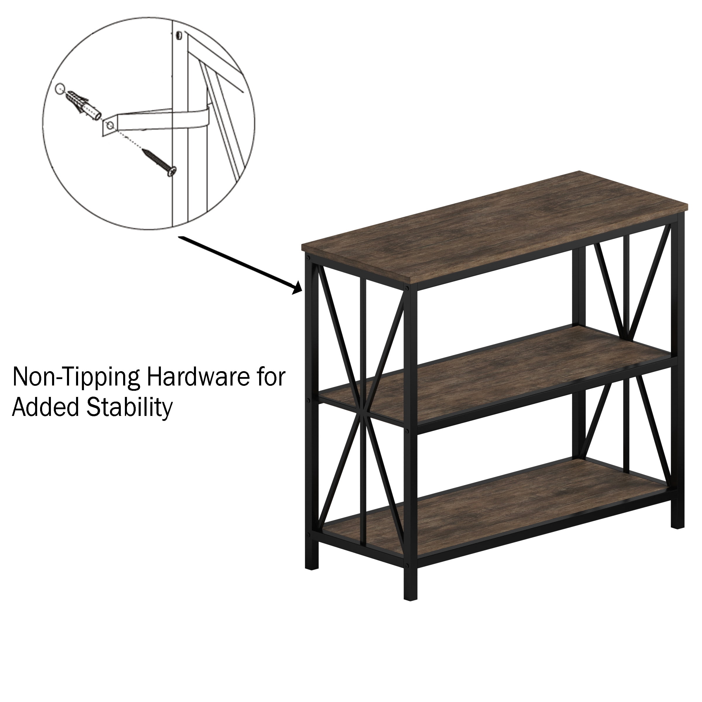 Lavish Home 3-Tier Industrial Bookshelf for Home and Office (Brown)