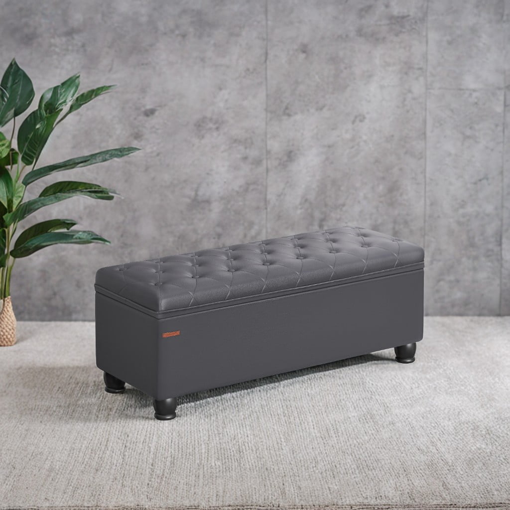 Upgrade your bedroom with this 46.5″ Storage Ottoman Bench, featuring a spacious hidden compartment to keep your space tidy. Crafted with durable synthetic leather, it supports up to 330 lbs and doubles as a stylish footrest or extra seating. Perfect for the end of your bed, this bench combines practicality and elegance in one compact design. Specification: Color: Gray Material:MDF (Medium Density Fiberboard), High-Density Foam, Synthetic Leather Product Size:17.7″D x 46.5″W x 17.7″H (45 x 118 x 45 cm) Product Weight:35 lb (15.9 kg) Max. Static Load Capacity:330 lb (150 kg) Volume:31 Gallons (118L) Package Contents: 1 x Storage Ottoman, 1 x Accessory Kit , 1 x Instructions