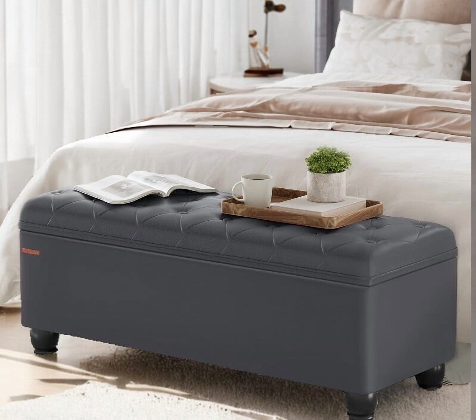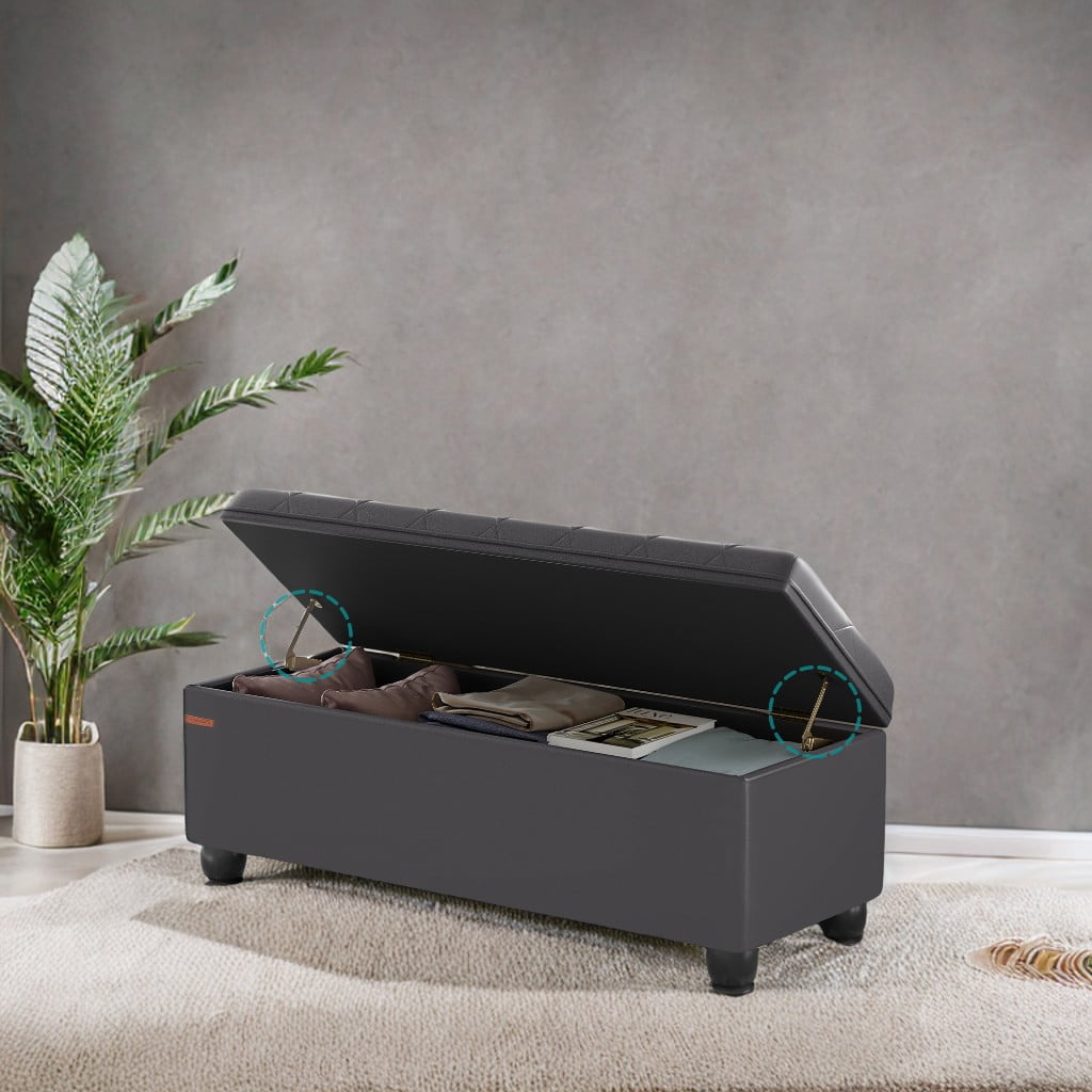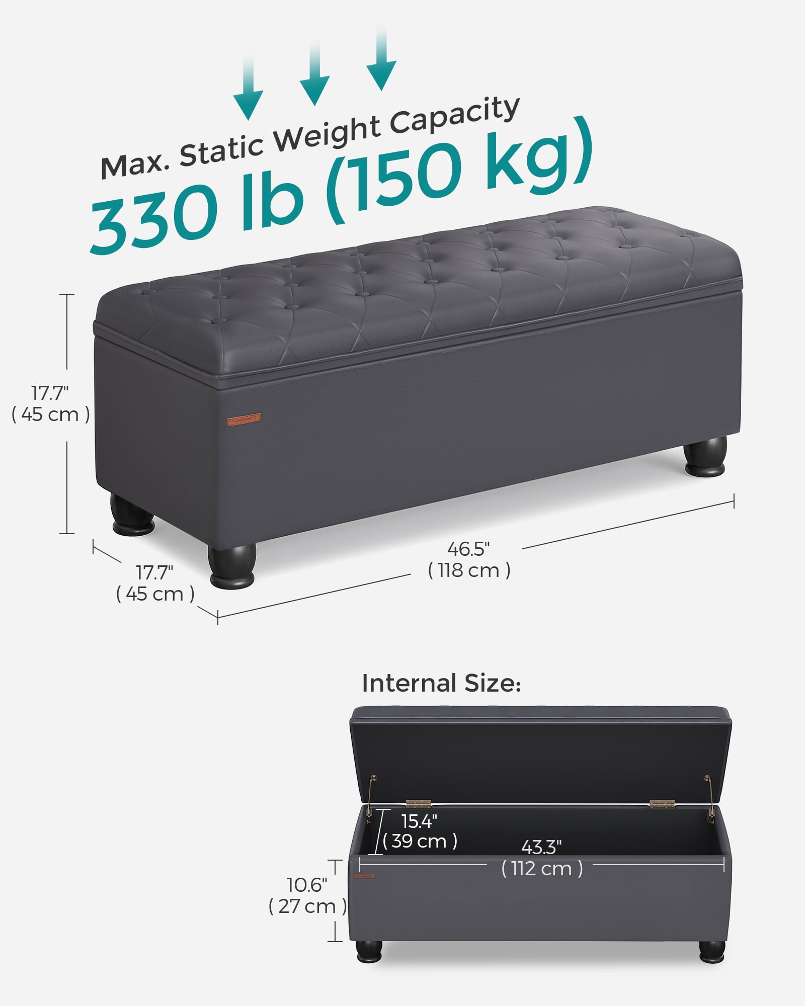 SONGMICS 46.5″ Storage Ottoman Bench Synthetic Leather End of Bed Bench Load 330lb Ottoman with Storage for Bedroom Gray