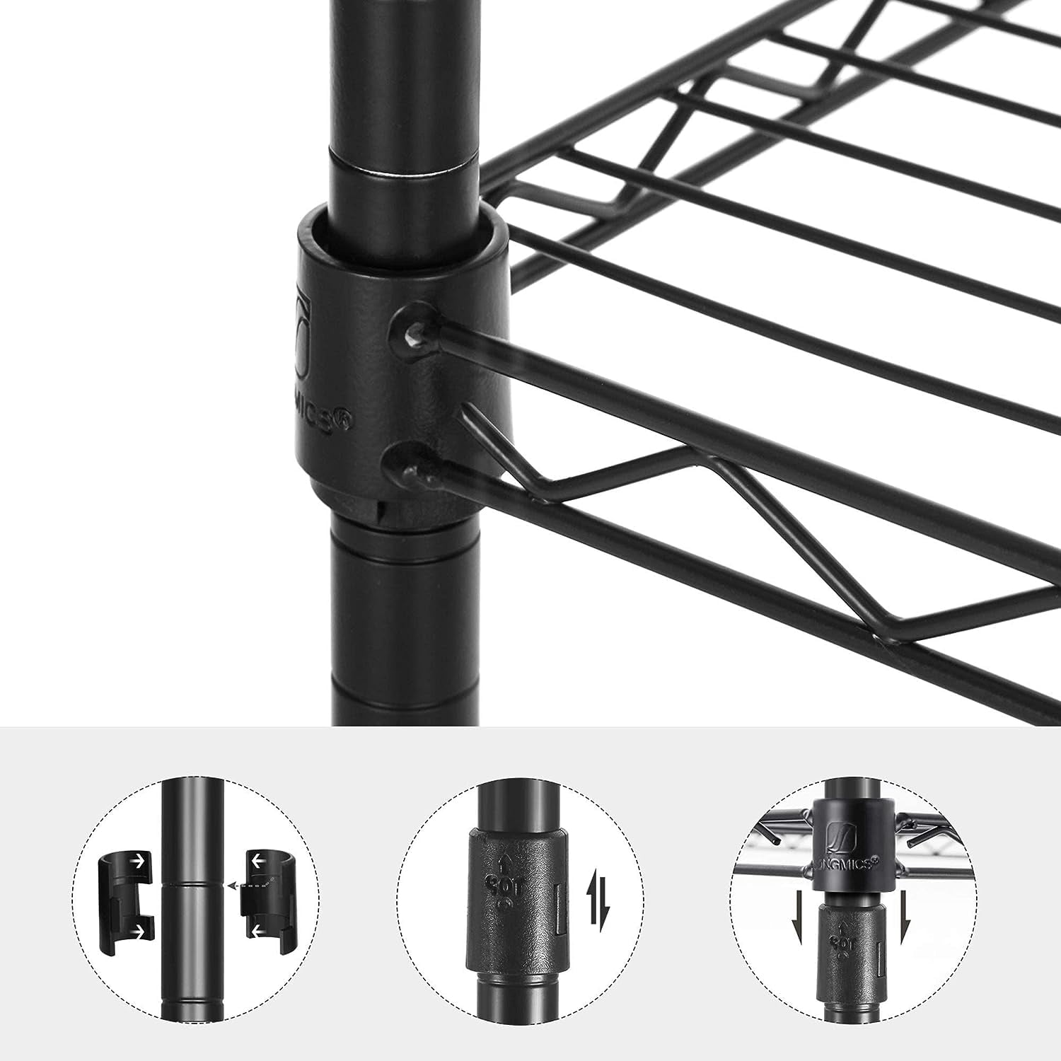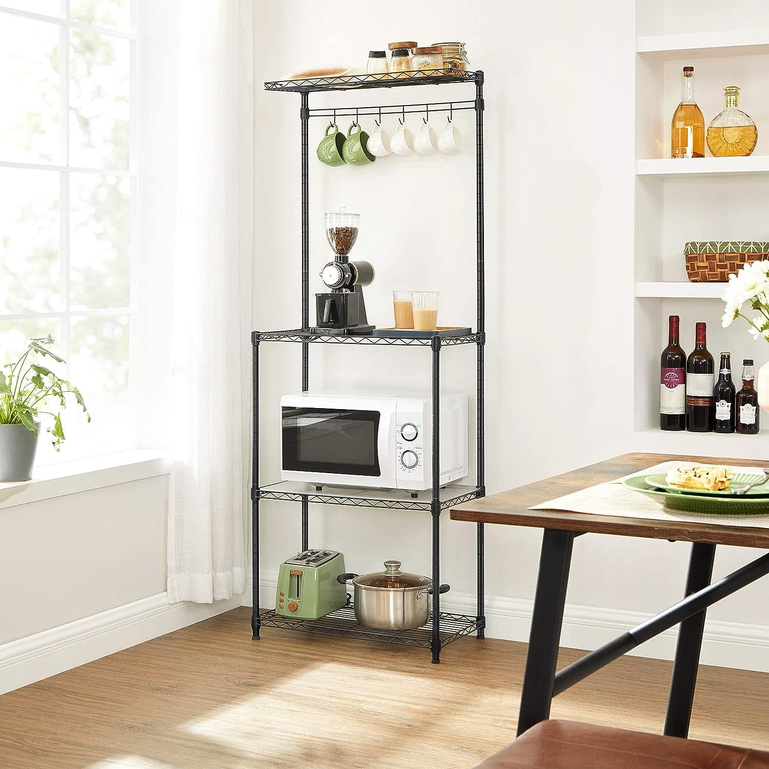 SONGMICS Baker’s Rack Adjustable Microwave Stand Kitchen Storage Rack with 4 Shelves 6 Hooks for Pots Pans Spice Bottles in The Kitchen Apartment Studio Black