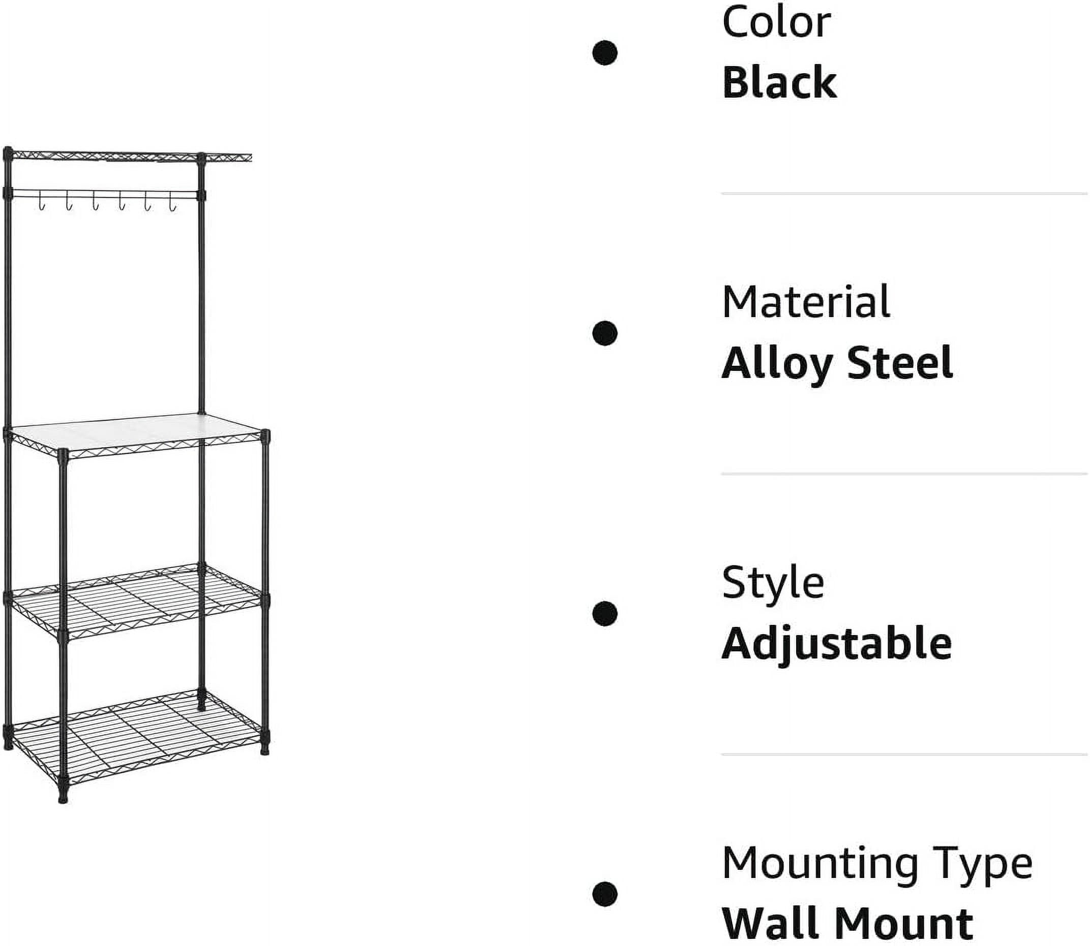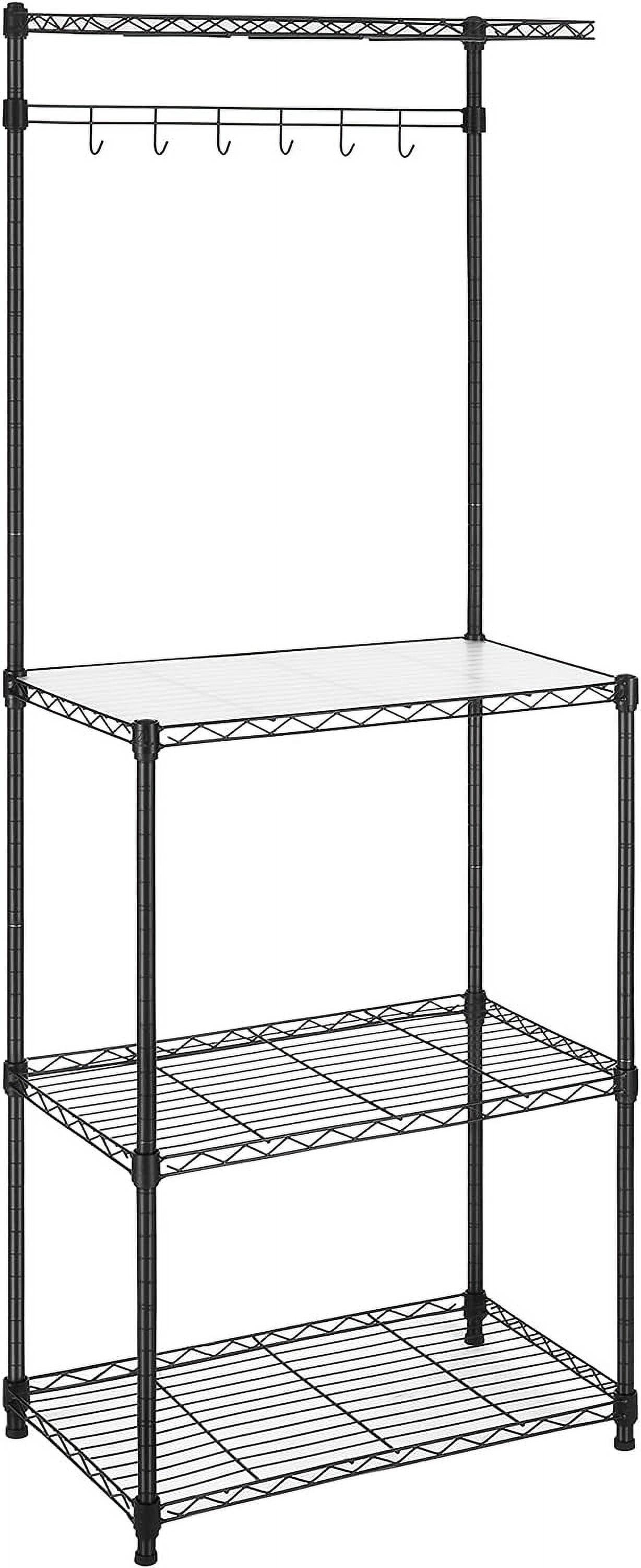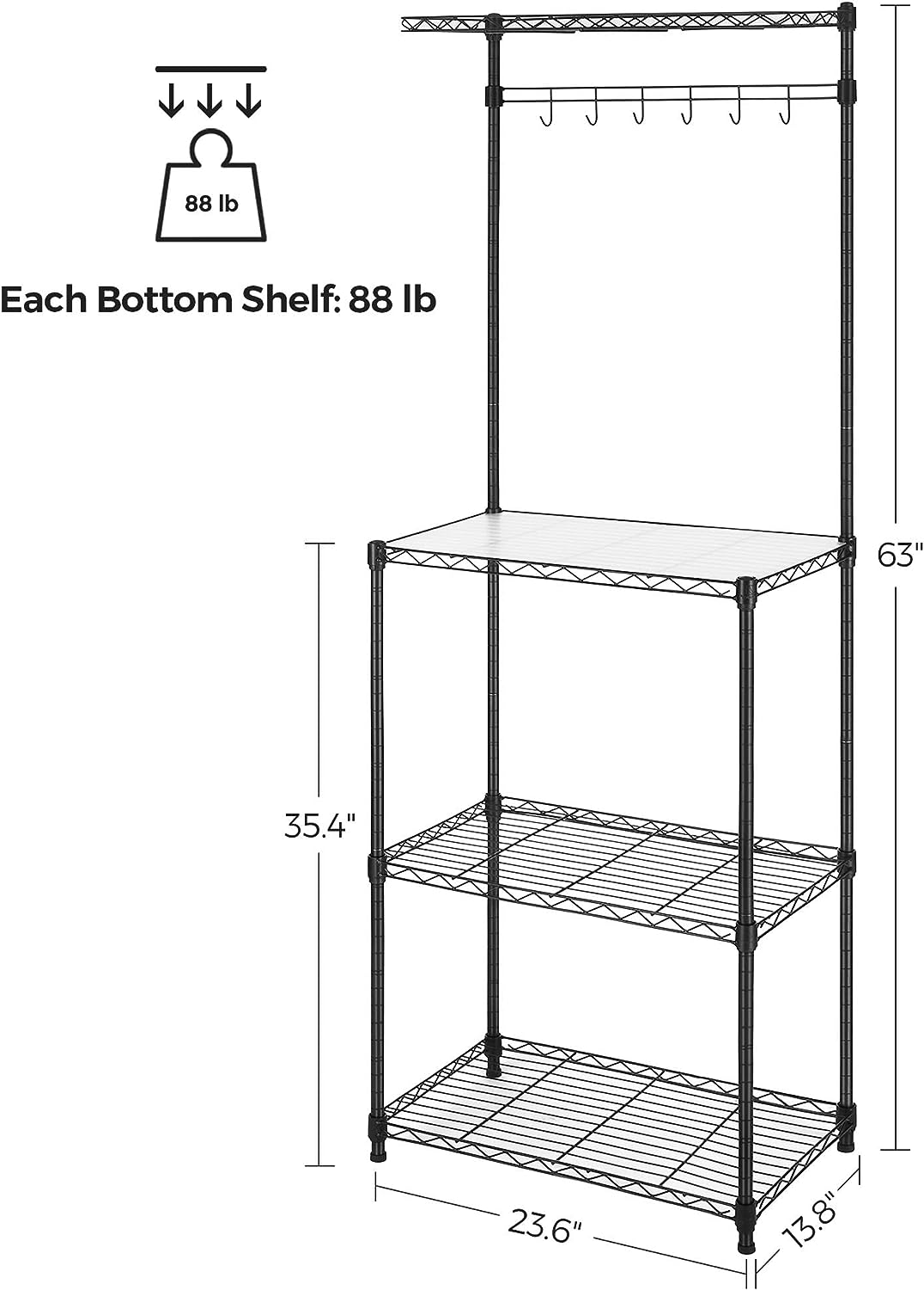 Features: A Blessing for Small Kitchens: Coffee pots, microwave, and spice bottles…if they take up every inch of your kitchen, it’s time to invite this baker’s rack in. It’ll house all of your cooking essentials while taking up only 23.6”L x 13.8”W of space Access Effortlessly, Access Comfortably: The 63”H narrow shelf for you to reach the spice bottles easily, the 35.4”H wide shelf for you to reach your microwave comfortably. How about the 27.6” distance between them? Well, it’s for you to hang the ladles A Little Higher, A Little Lower: Cooking utensils vary in height, so do the shelves of this microwave stand. The clasp connection allows you to adjust the height of shelves, so both taller coffee pots and shorter dishes can be well accommodated here Support Firmly, Support Reliably: Strength is crucial for a spacious kitchen rack. And that’s why we use 0.7” dia. steel tubes that allow 88 lb load for each wide shelf and 22 lb for the narrow shelf; so just put all your cooking items on, it can hold them Details Can’t be Overlooked: Details are never neglected when we go for spacious storage and high strength. A PP plastic panel is included to balance the microwave and adjustable feet are included to balance the whole rack Specifications: Color: Black Product Size: 23.6”L x 13.8”W x (35.4”/63”)H (60 x 35 x 90/160 cm) Max. Static Load of Top Narrow Shelf: 22 lb (10 kg) Max. Static Load of Each Bottom Shelf: 88 lb (40 kg) Package Contents: 1 x Microwave Stand 1 x PP Panel 2 x Anti-Tip Kit 1 x Instructions SONGMICS Notes: The maximum static load of each bottom shelf is 88 lb, and that of the very top shelf is 22 lb. Please secure the storage rack to the wall with the provided anti-tip kits for added safety.