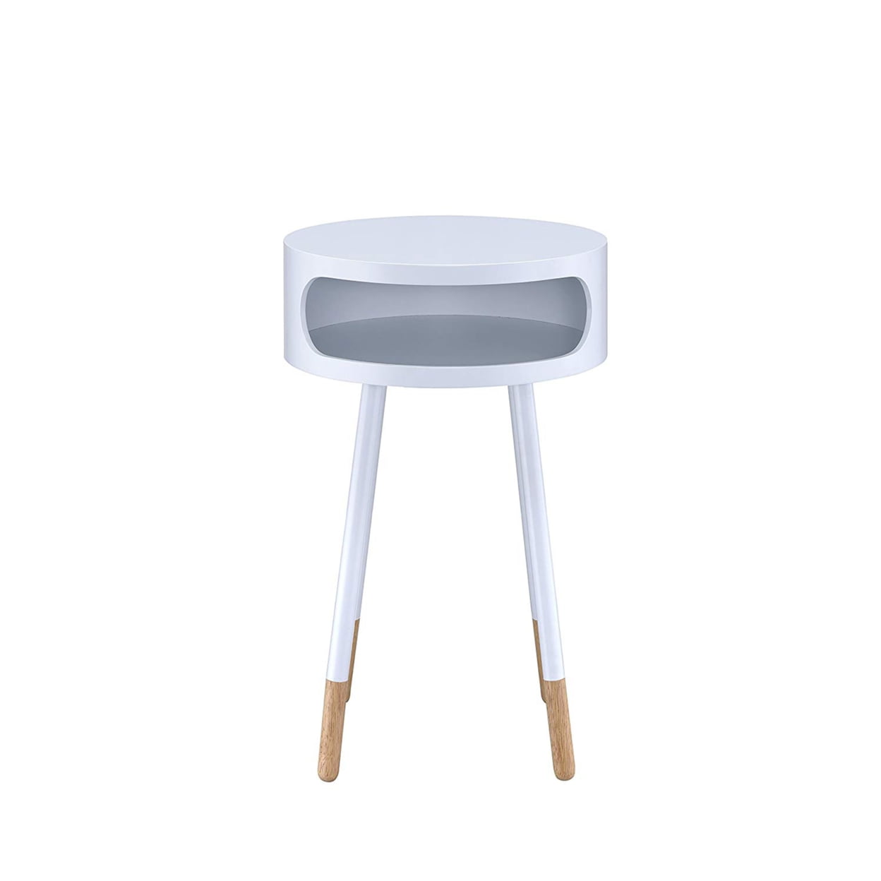ACME Sonria Round Wooden End Table with 1 Compartment in White and Natural