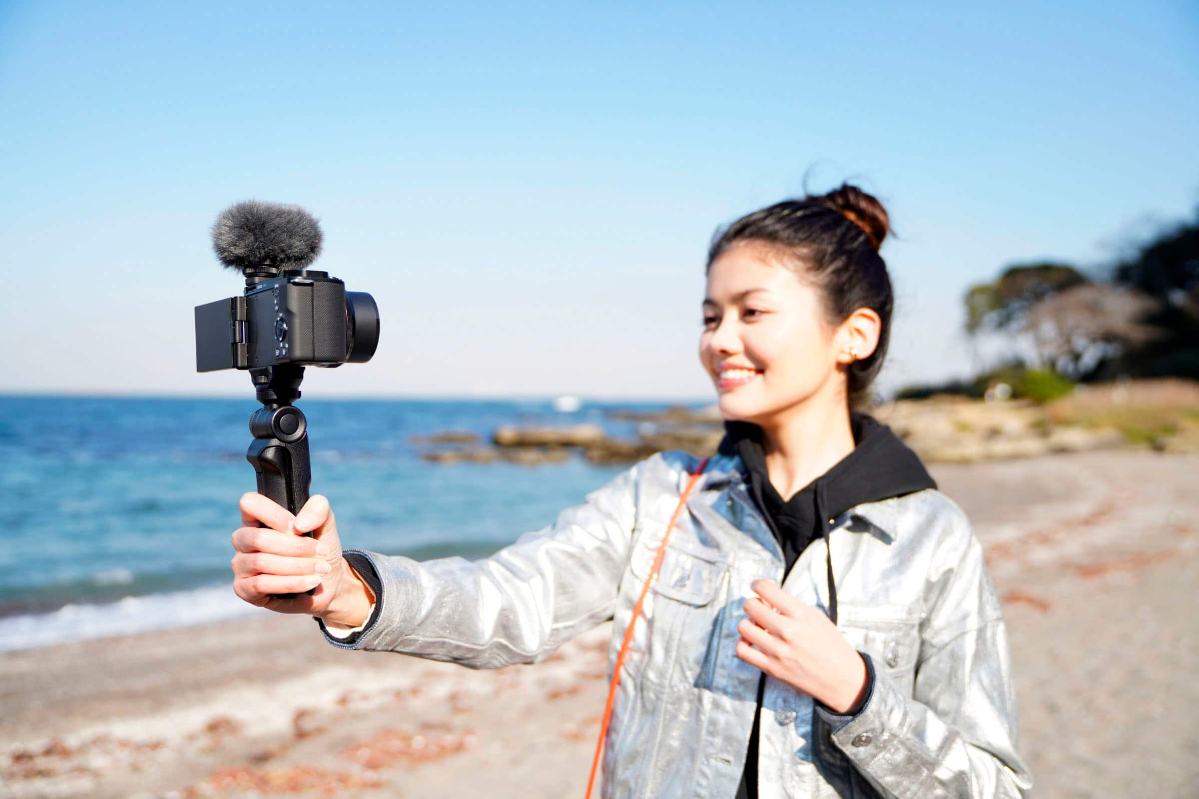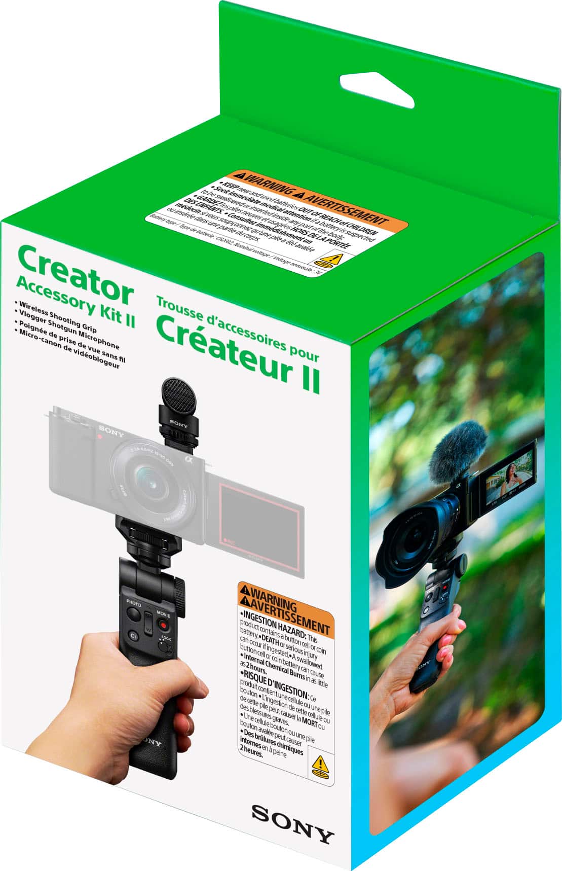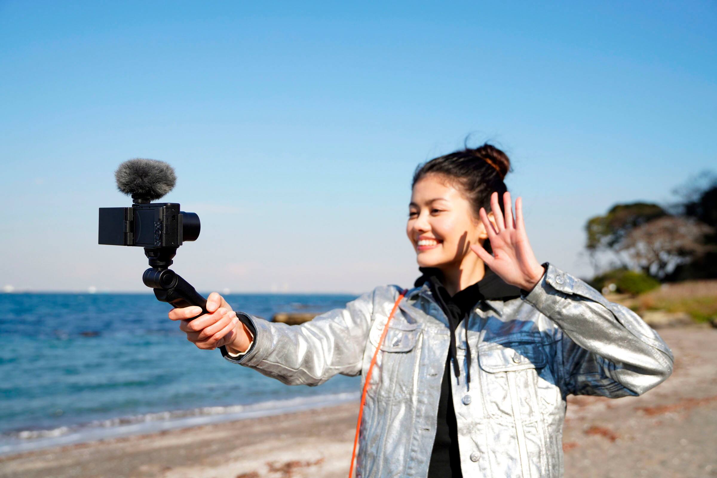 The ACCVC2 includes a GP-VPT2BT and an ECM-G1. It is ideal for creating content ranging from vlogs to travel to simple everyday use. A flexible angle tilt function easily switches from normal to self-shooting mode and can also be used as a mini tripod. Capture clear, crisp audio whenever and wherever you shoot.