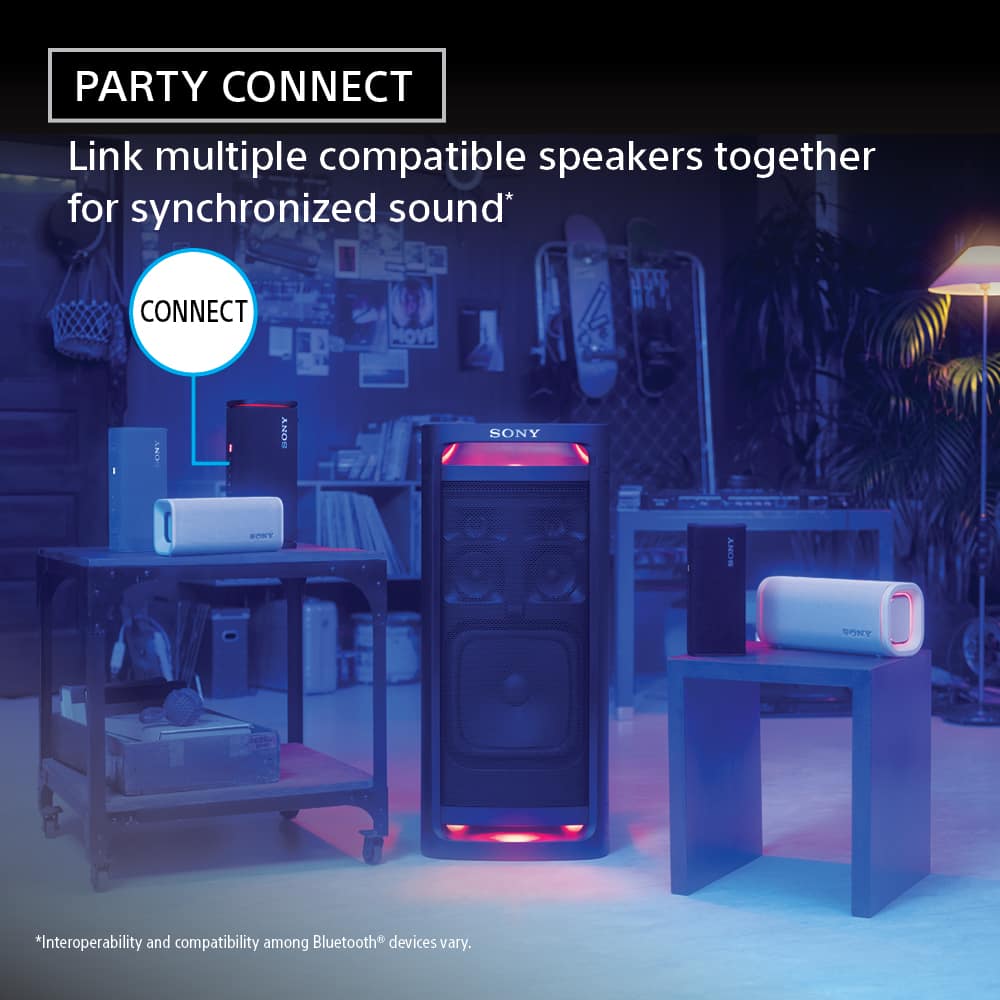 Link multiple compatible speakers together for synchronized sound and an epic party atmosphere.