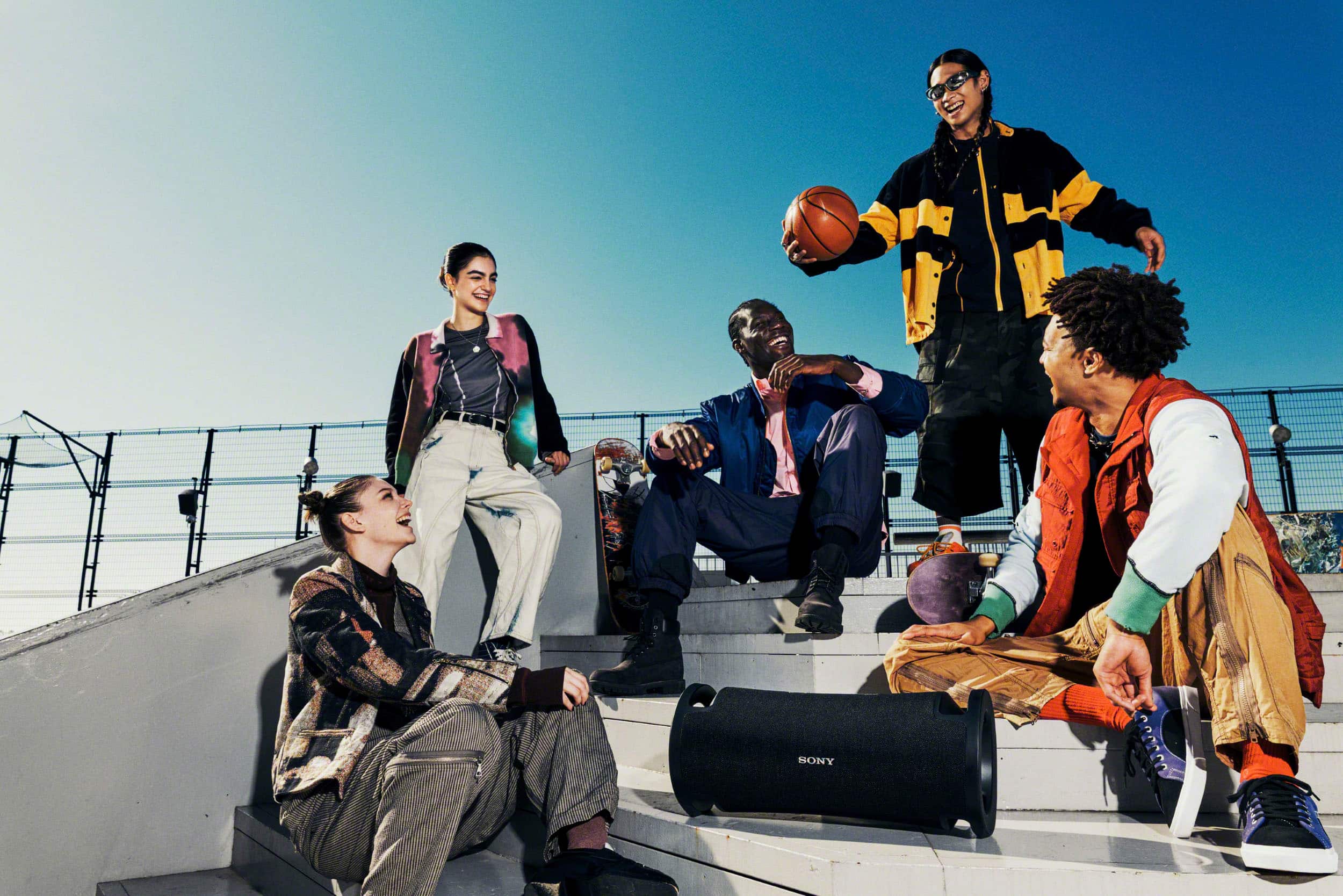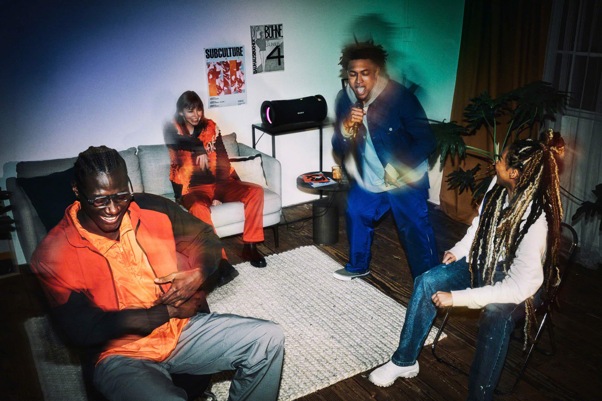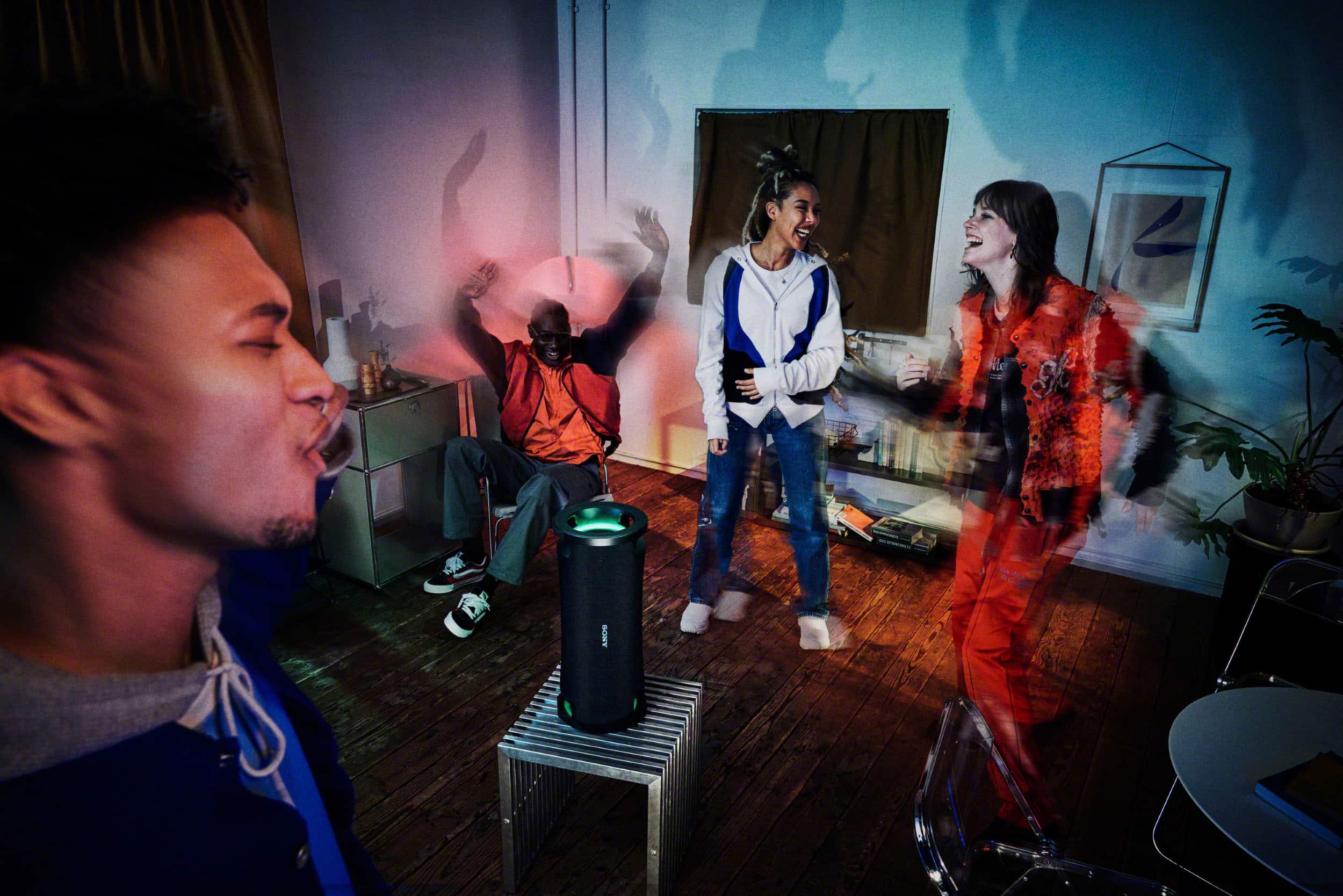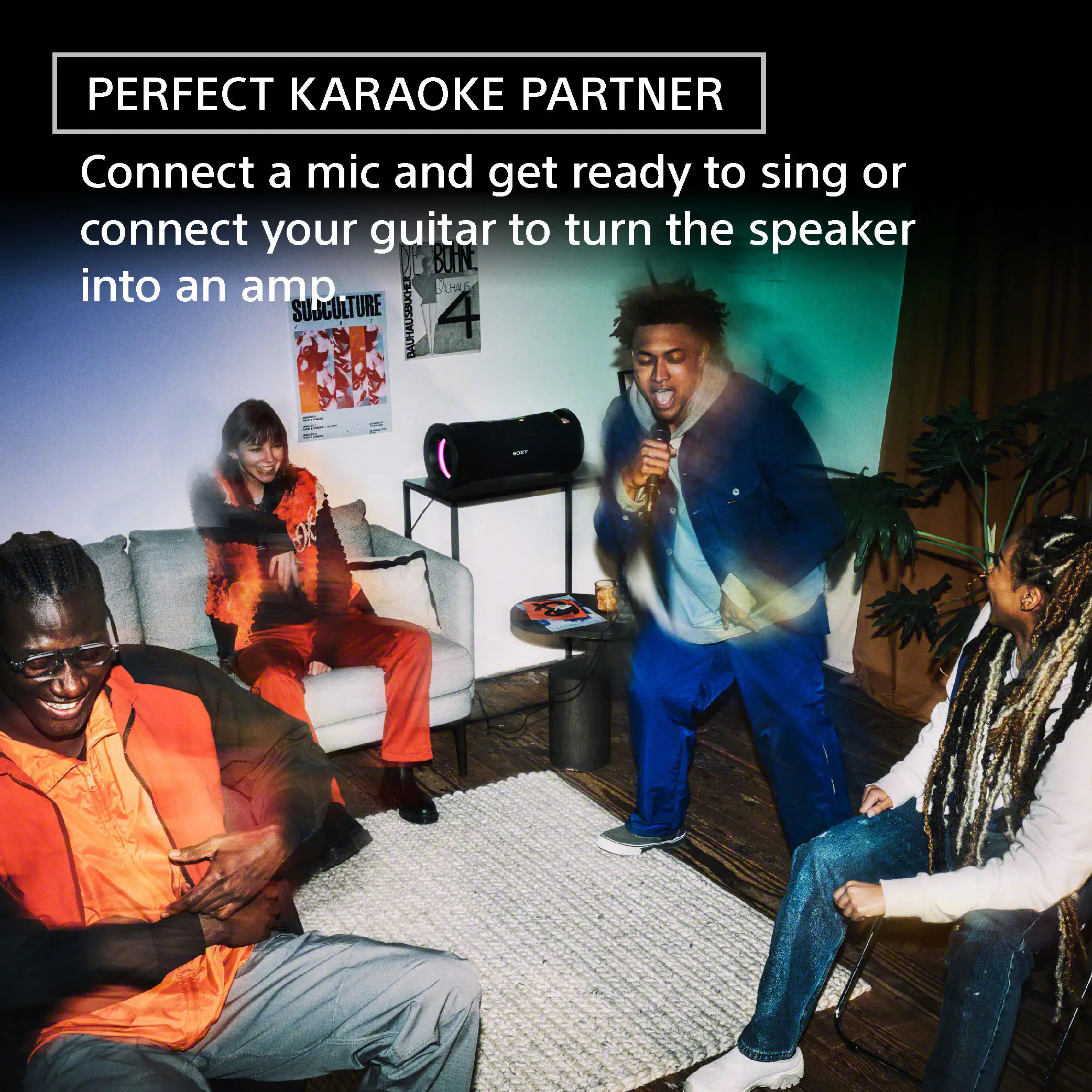Bring the ultimate vibe with colorful lighting that synchronizes with your music and is easily controlled via the Sony | Music Center app and Fiestable app.