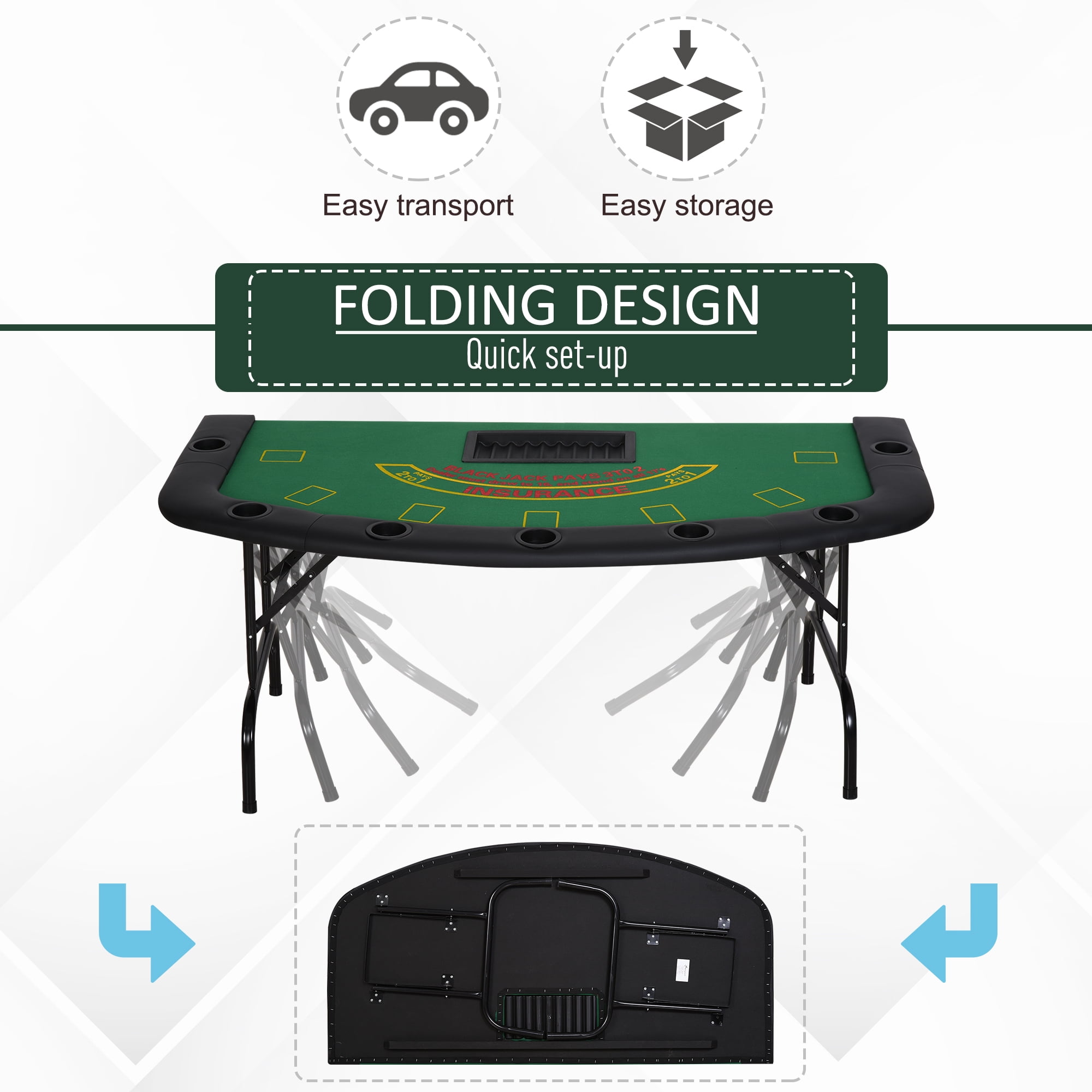 Soozier 72″ Foldable 7-Player Poker Blackjack Table with Chip & Cup Holder, Green Felt