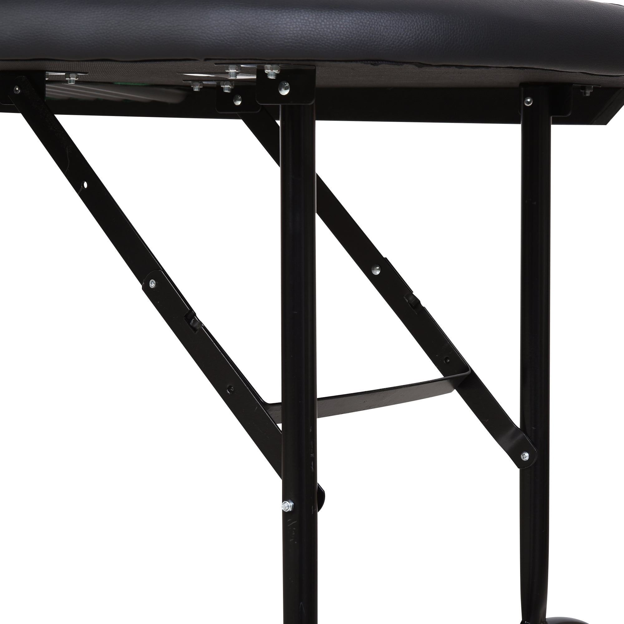 72″ extra-large 7 player half poker table 7 cup holders for holding drinks Card placement areas and a 9 line chip tray Casino-style felt with padding and padded armrest rails Constructed of sturdy MDF top and powder-coated steel legs Easy folding design for compact storage or travel options : Bring the casino home with this half foldable poker and casino table. Retro meets modern design for a unique table that’s excellent for any game room. : The design of our game table follows the professional blackjack poker layout and rules. This card table features card placement areas and a 9-row dealer chip tray. : Convenience without a mess, this folding poker table comes with seven plastic cup holders that provide players with a sturdy place to hold their drinks. : Casino-style padded armrests let players comfortably set their arms on our foldable poker table set during a game. : A simple folding design makes cleaning up and traveling a cinch. This felt table quickly folds flat for easy storage in the closet or trunk. Color: Green Materials: MDF, Felt, Steel Unfolded Dimensions: 71.75″ L x 35.75″ W x 29.5″ H Folded Dimensions: 71.75″ L x 35.75″ W x 2.25″ H Cup Holder Diameter: 3.25″ Dia Chip Tray Dimensions: 17″ L x 8.75″ W Net Weight: 47 lbs. Weight Capacity: 66 lbs.
