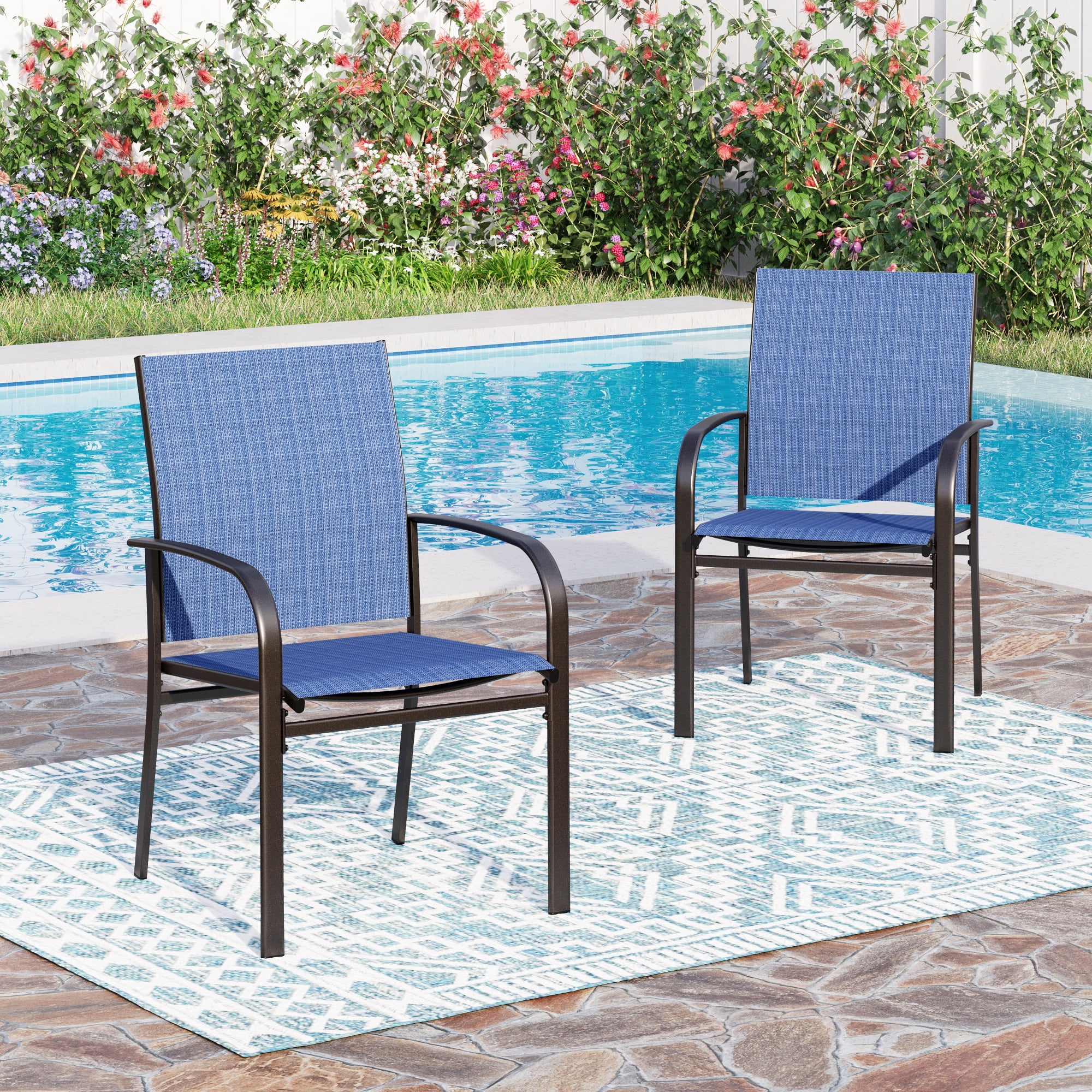 Sophia & William 6-Piece Outdoor Patio Dining Chairs Textilene Patio Chairs for Garden, Backyard, or Poolside, Blue