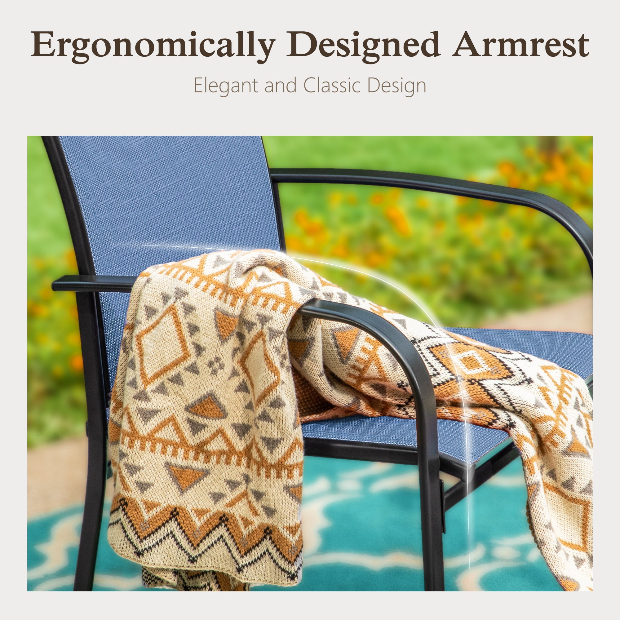 The outdoor dining chair is made of powder-coated metal frame, rust-resistant, weather-resistant, can be used for many years The seat is wide and deep enough to provide comfortable seating space for different body types The curved chair armrest combines comfort and aesthetic The seat is made of textilene, water-resistant, UV-resistant and breathable,stretch-resistant,allowing you to sit more comfortably Ergonomic curve smooth back design make you enjoyable Perfect for Indoor, outdoor garden, balcony, deck, park, patio, porch, poolside and yard The outdoor chairs come with clear instructions that shows illustrations and marked all the spare parts, and stain-resistant fabric is easy to clean and maintain