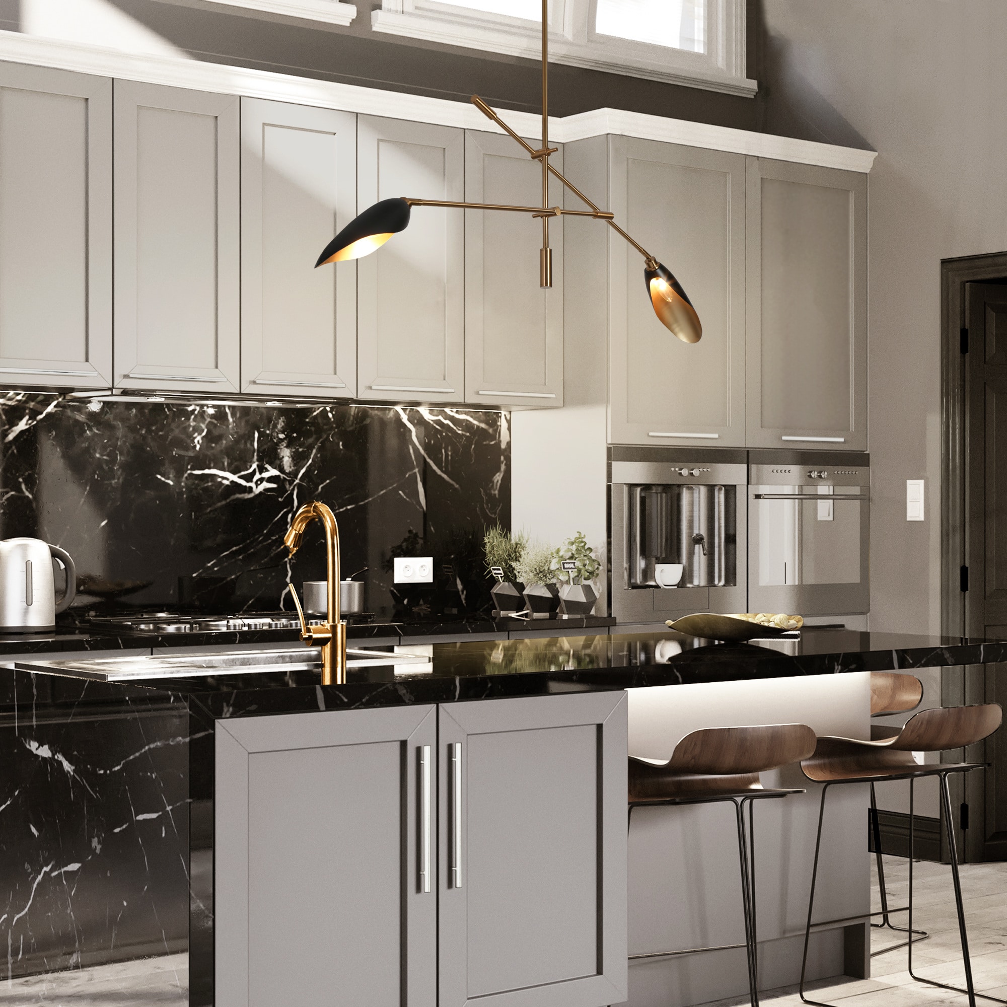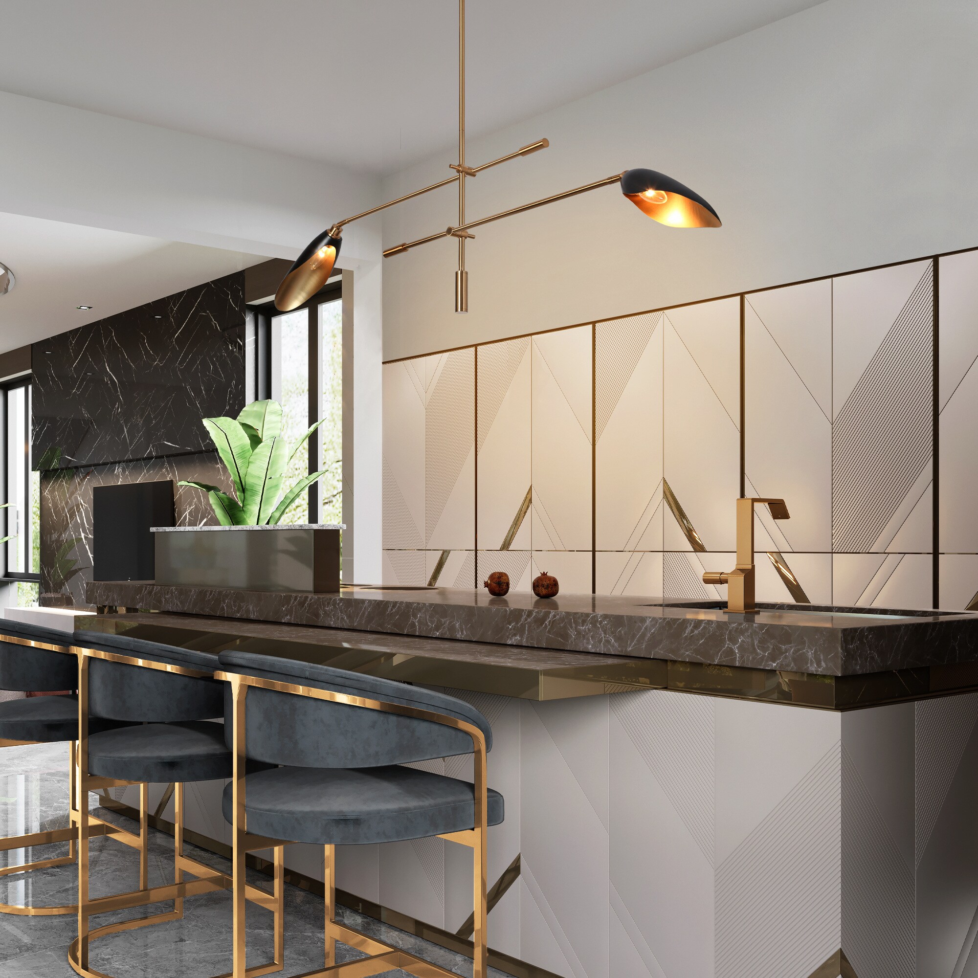 This pendant light perfectly complements a modern or industrial-style kitchen or dining room. Its sleek brass and black design adds a stylish contrast while providing bright, direct lighting for functional spaces like kitchen islands or dining areas. The adjustable height makes it versatile for various ceiling types, and the LED-compatible bulbs provide energy-efficient lighting. The minimalist aesthetic adds a contemporary touch without overwhelming the decor, ideal for modern homes.