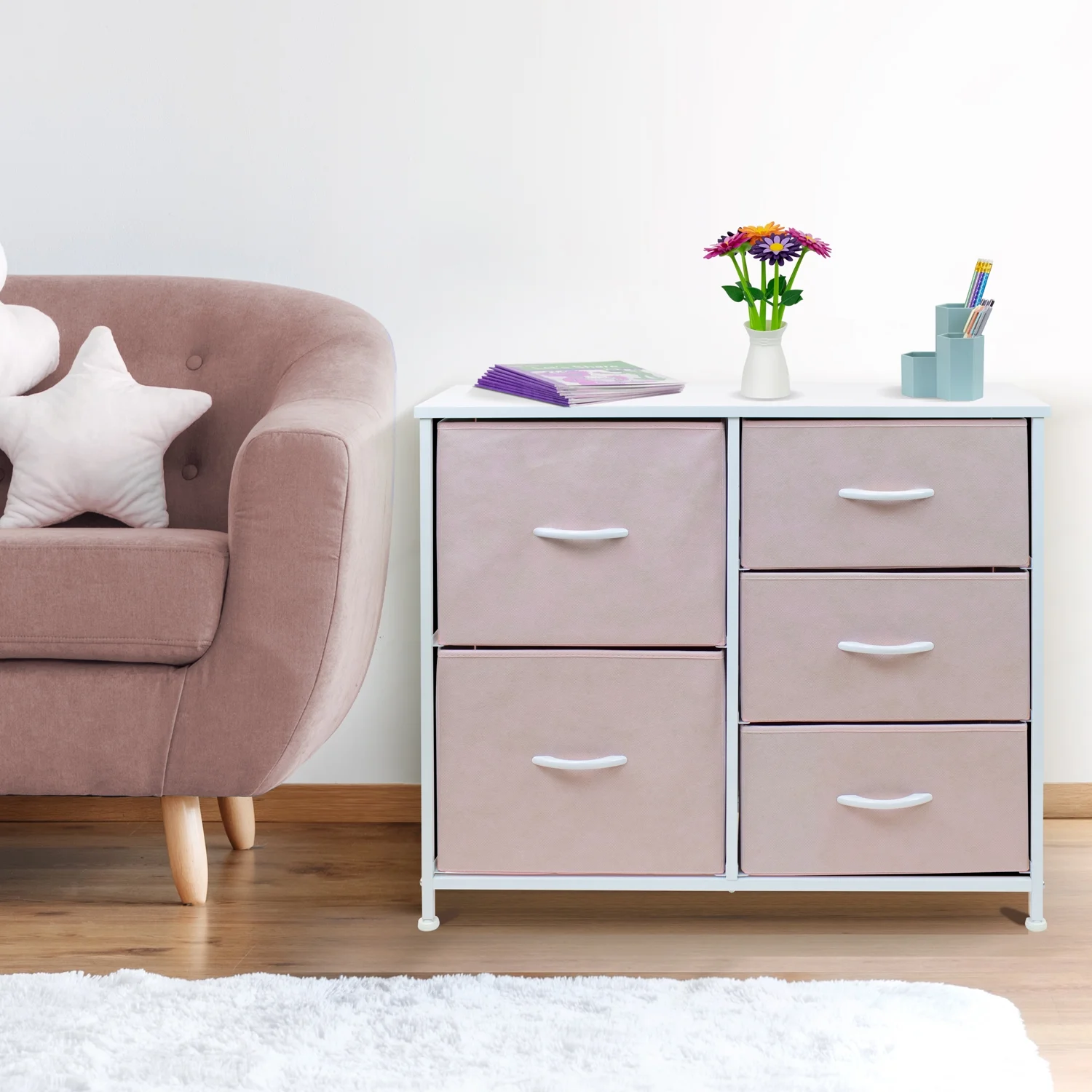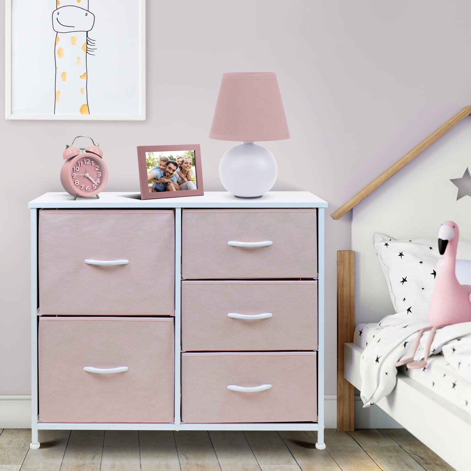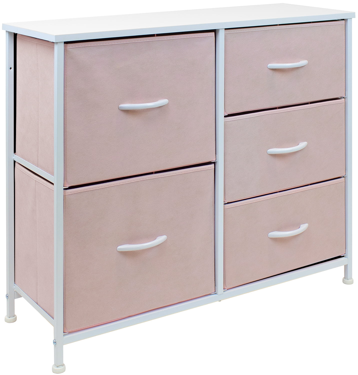 Update your child’s room with the Sorbus 5-Drawer Dresser, featuring a charming design and ample storage space. Utilize the pull-out drawers to neatly store your child’s folded clothing, blankets, toys, and other essentials. The tabletop surface provides a perfect display area for lamps, books, clocks, and decorative items. The playful pink color adds a charming touch to any nursery, playroom, or bedroom, enhancing the room’s aesthetic appeal. Lightweight and portable, this dresser is easy to transport and can be conveniently folded flat when not in use.