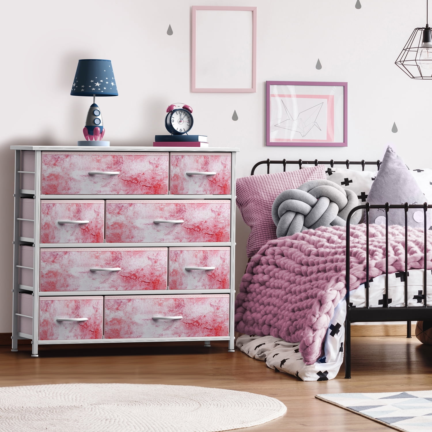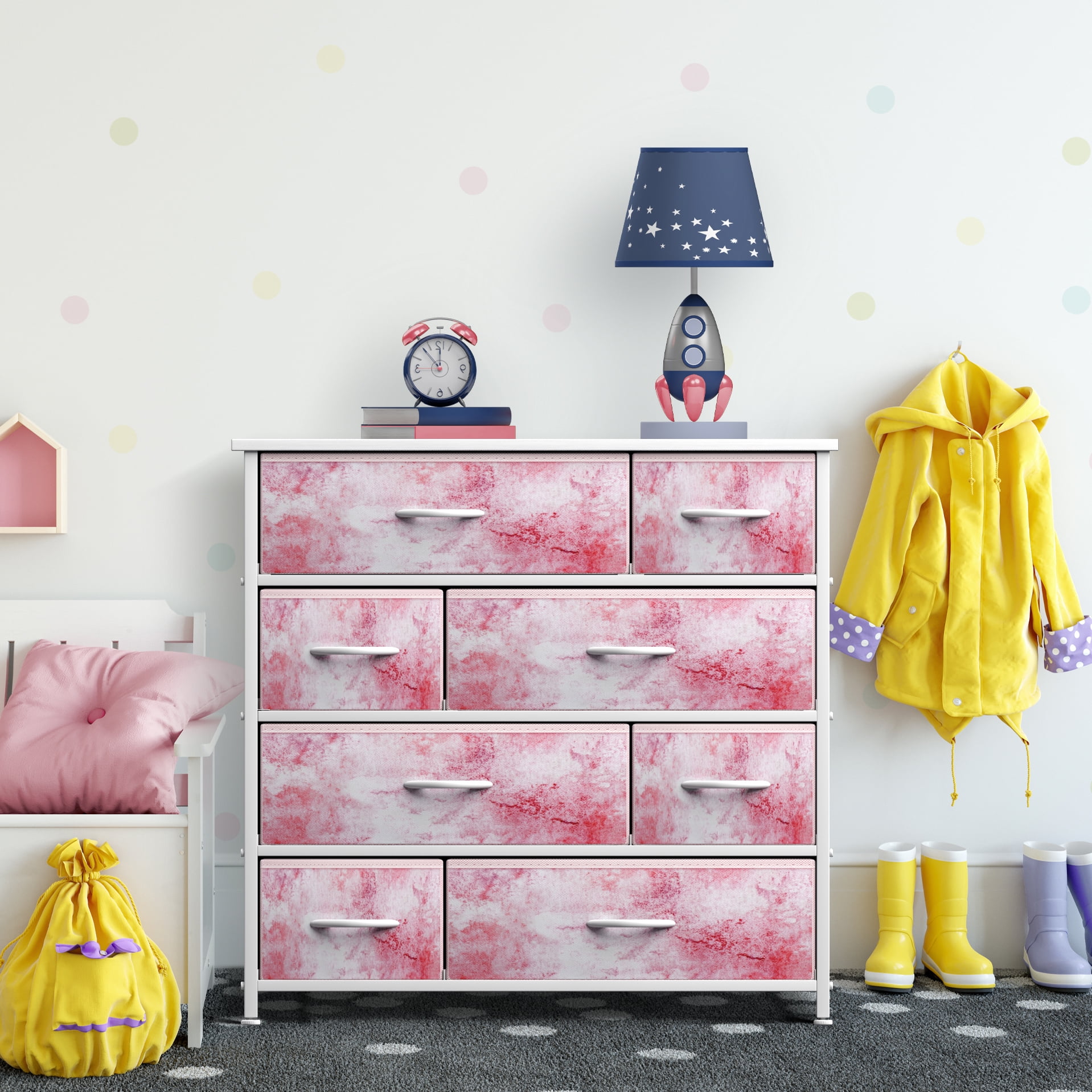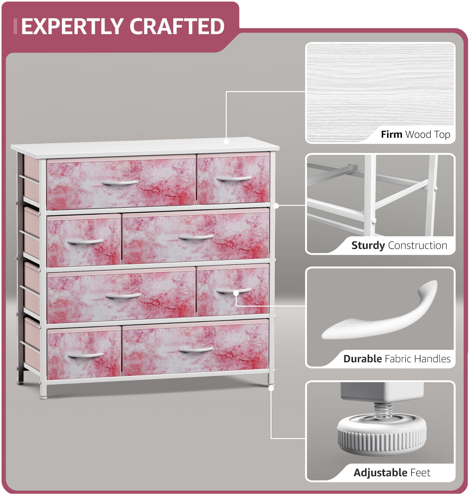 Sorbus Dresser for Kids Bedroom 8 Drawers – Storage Organizer Closet Furniture Chest for Girls & Boys, Nursery, Playroom, Clothes, Toys – Steel Frame, Wood Top, Fabric Bins (Tie-dye Pink)