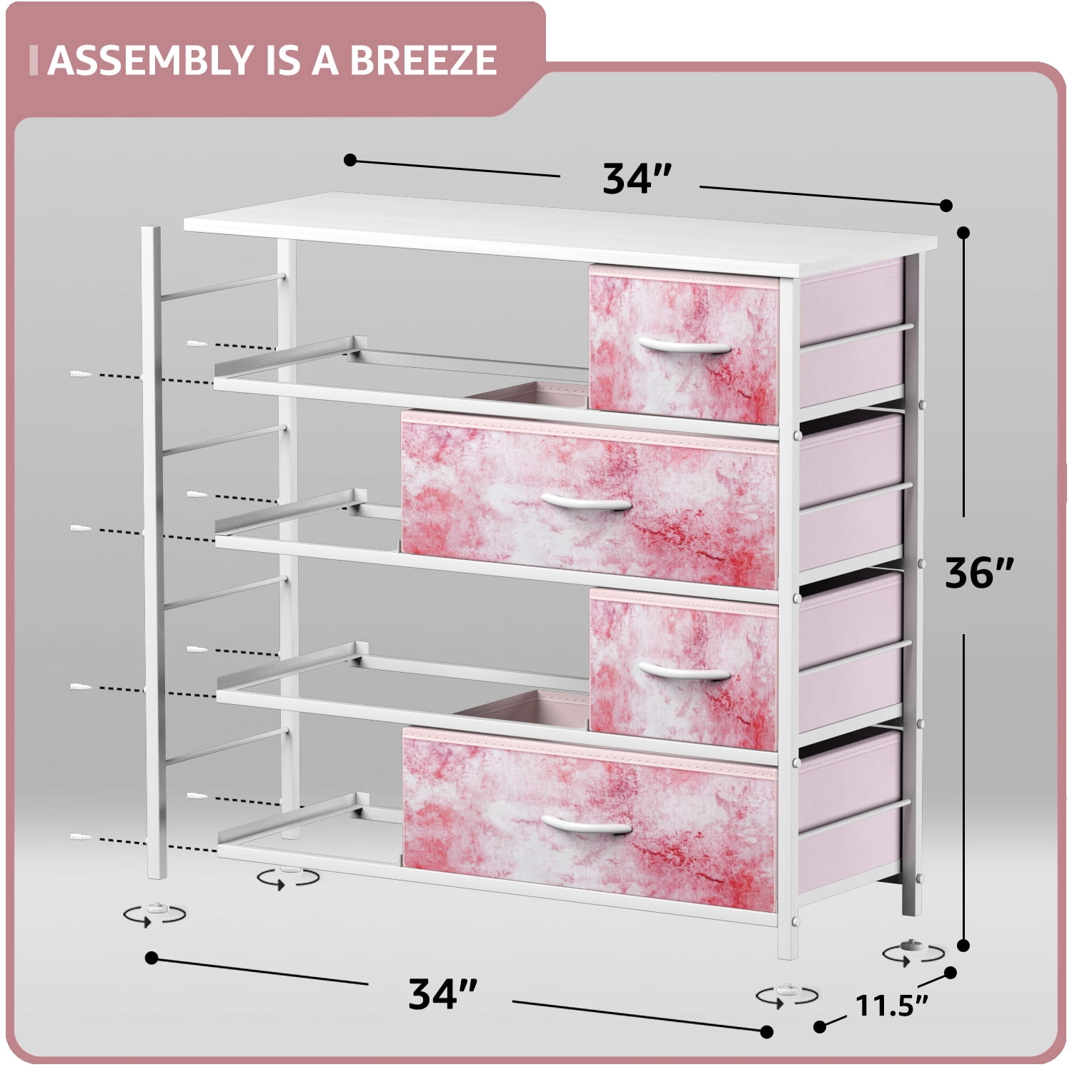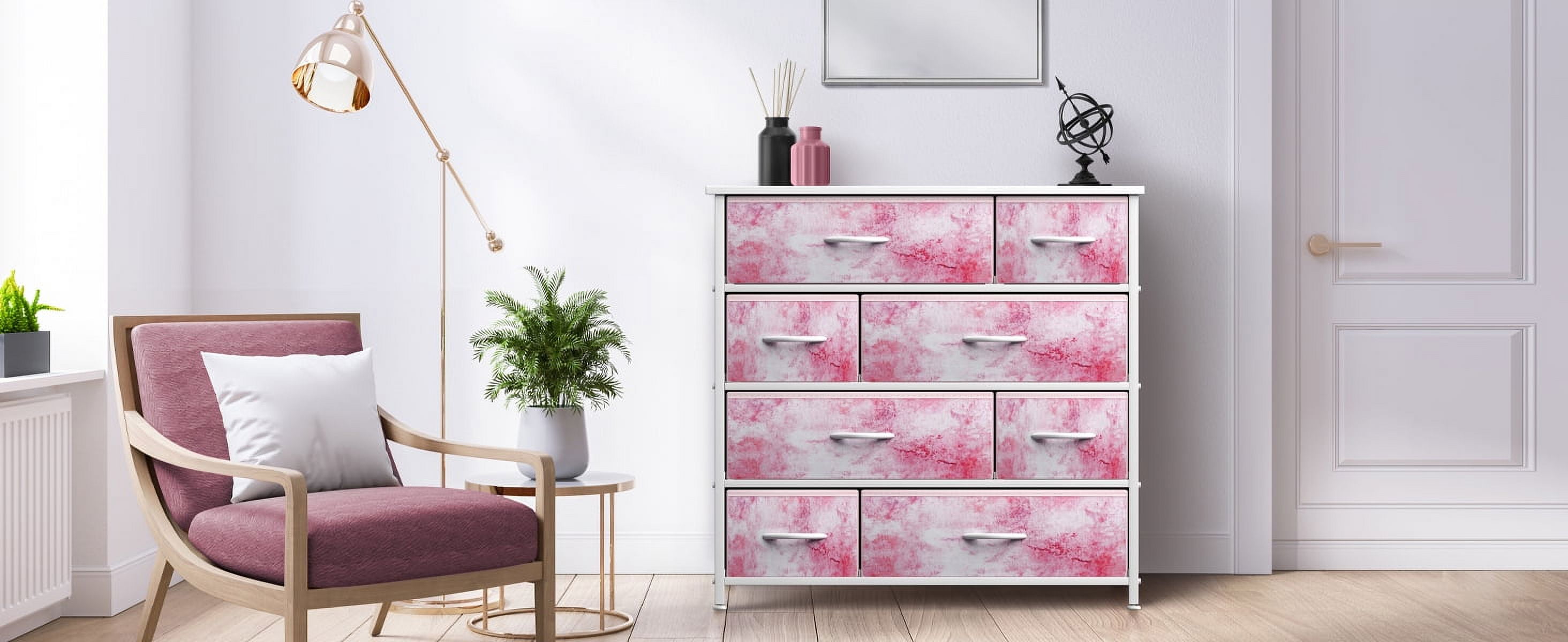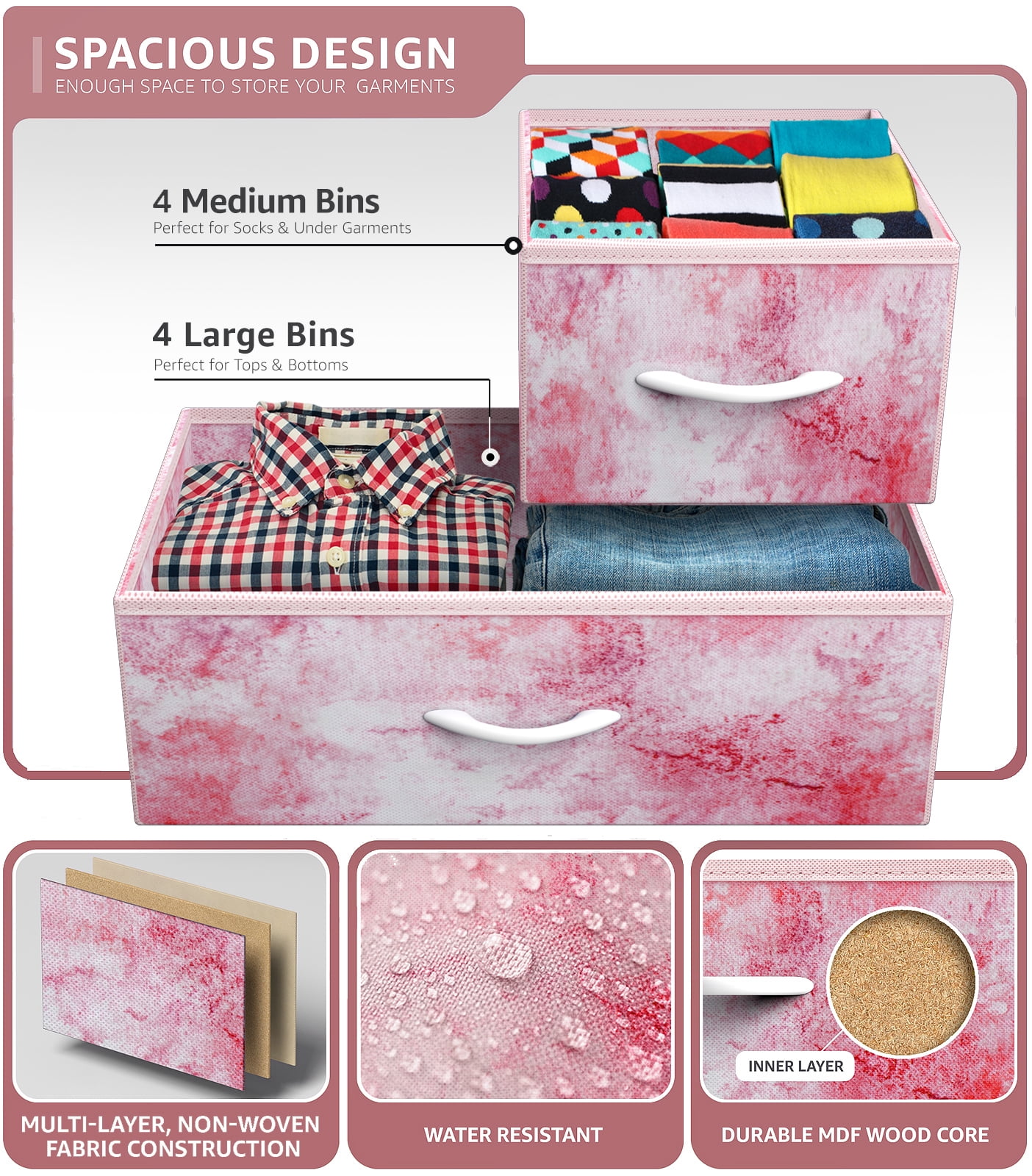 Sorbus Dresser for Kids Bedroom 8 Drawers – Storage Organizer Closet Furniture Chest for Girls & Boys, Nursery, Playroom, Clothes, Toys – Steel Frame, Wood Top, Fabric Bins (Tie-dye Pink)